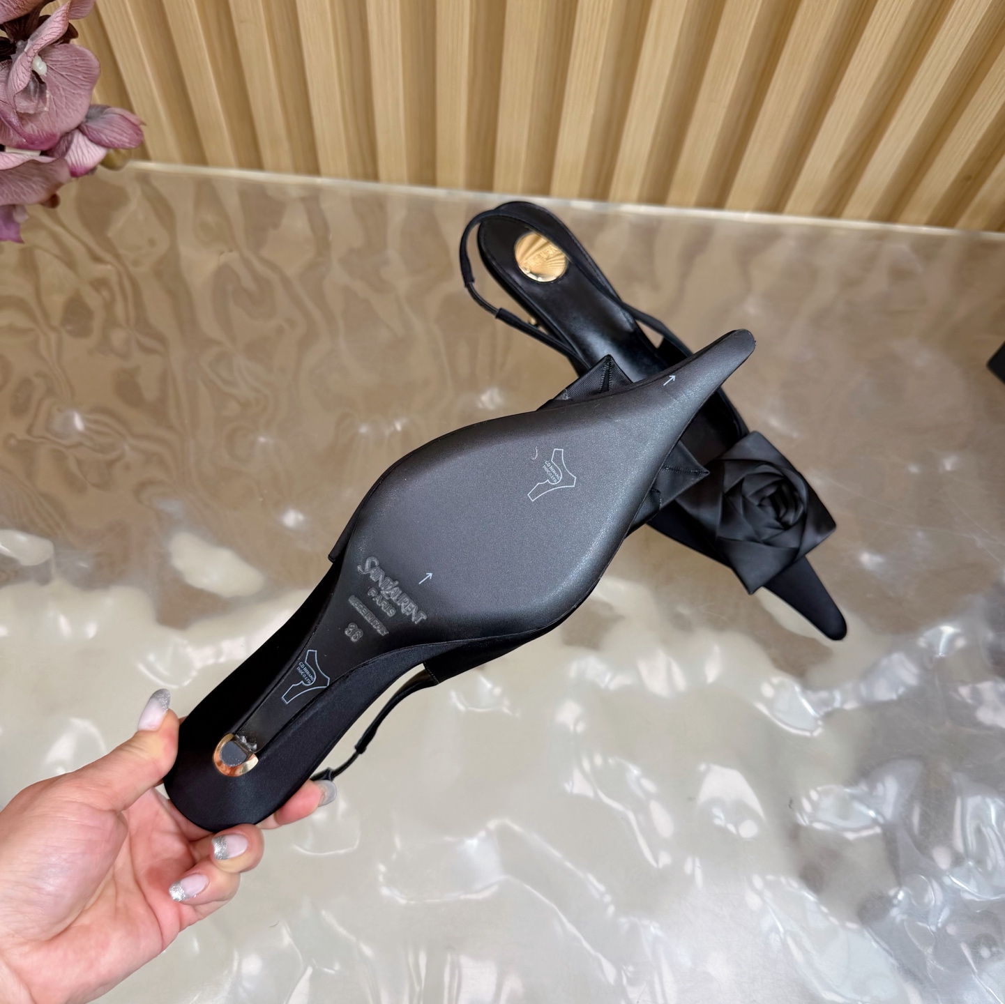 這款鞋子是AAAAA 1:1 質量(非常棒). 使用了和原版一模一樣的材料. 商標部分也保持了和聖羅蘭/Saint Laurent一樣. 圖片拍攝是實物鞋子拍攝, 您所收到的實物保證和我們圖片一模一樣.