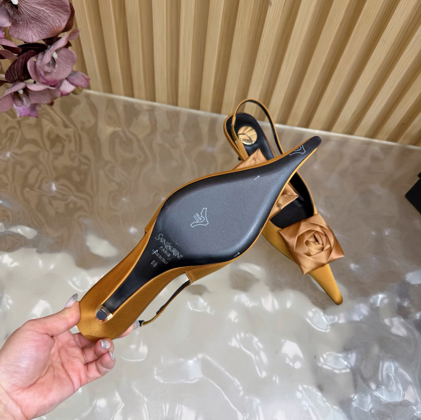這款鞋子是AAAAA 1:1 質量(非常棒). 使用了和原版一模一樣的材料. 商標部分也保持了和聖羅蘭/Saint Laurent一樣. 圖片拍攝是實物鞋子拍攝, 您所收到的實物保證和我們圖片一模一樣.