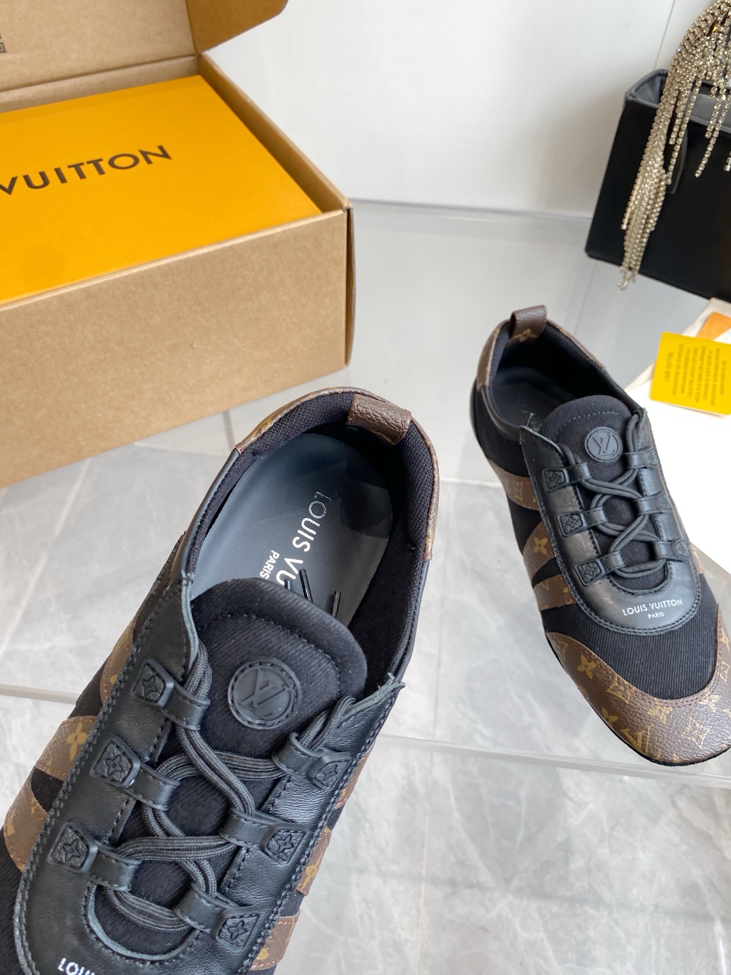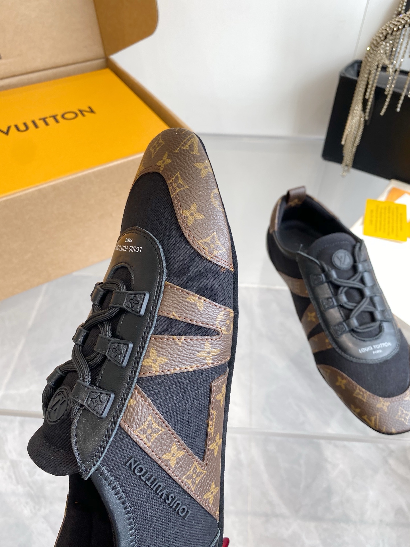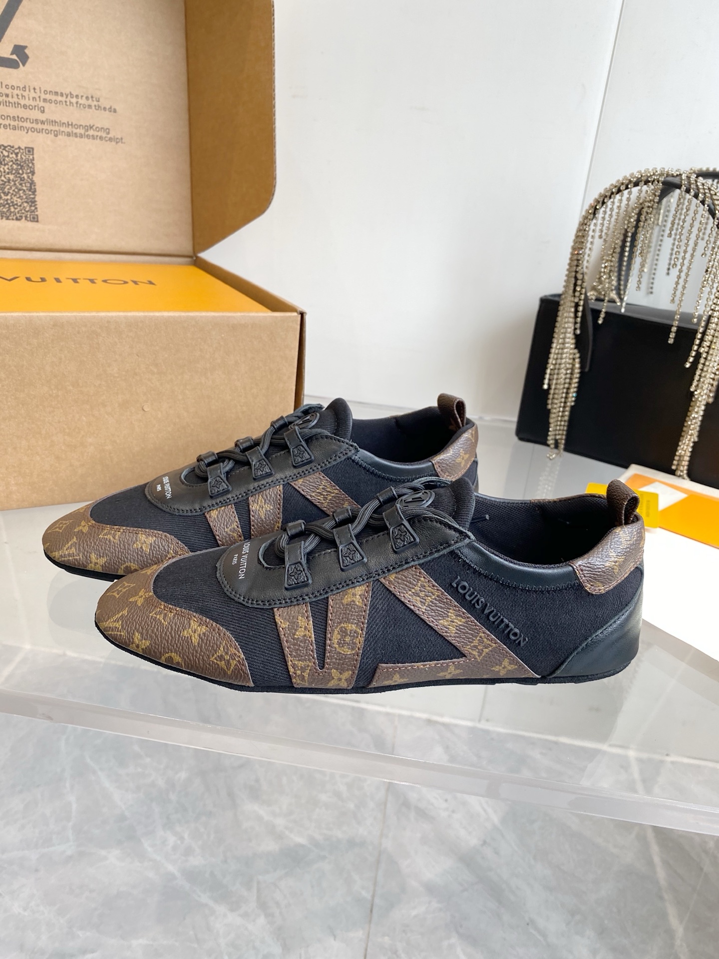 這款鞋子是AAAAA 1:1 質量(非常棒). 使用了和原版一模一樣的材料. 商標部分也保持了和路易威登/Louis Vuitton一樣. 圖片拍攝是實物鞋子拍攝, 您所收到的實物保證和我們圖片一模一樣.