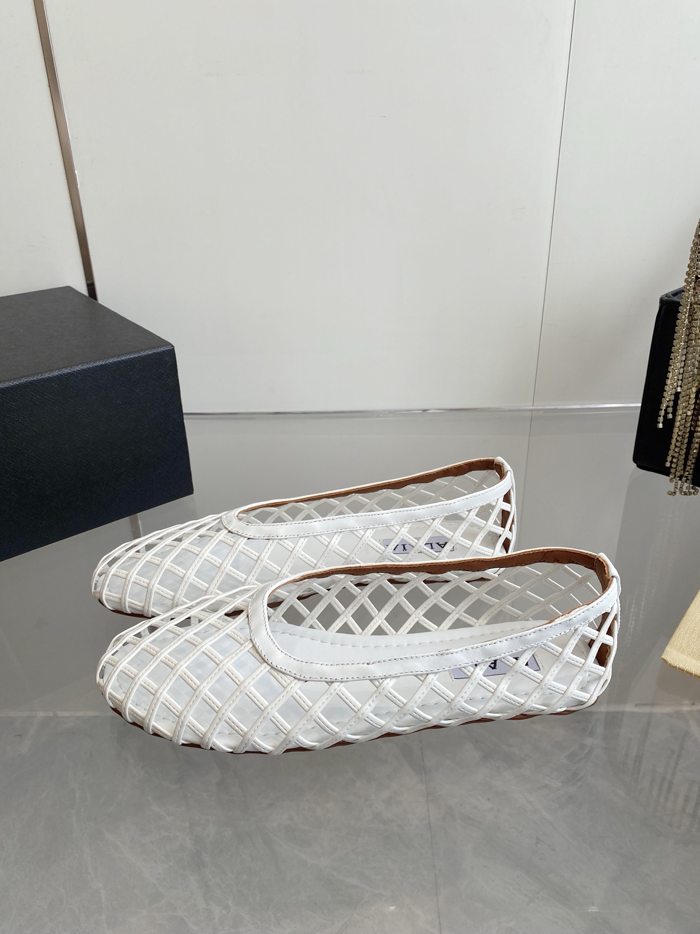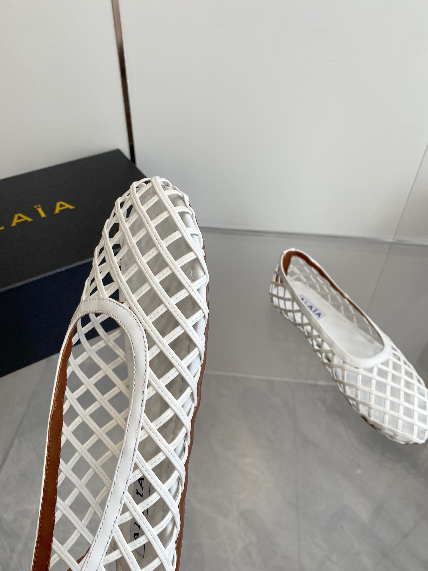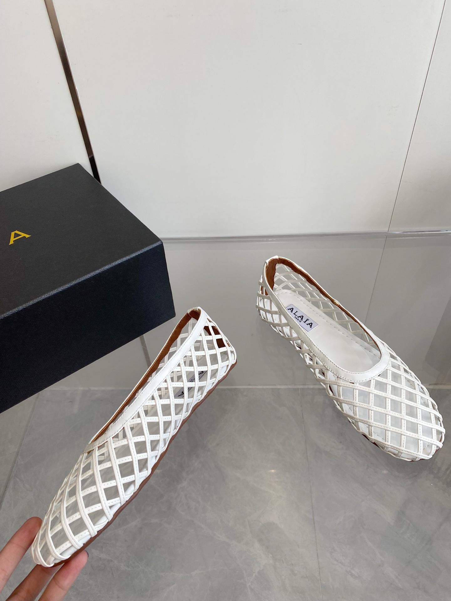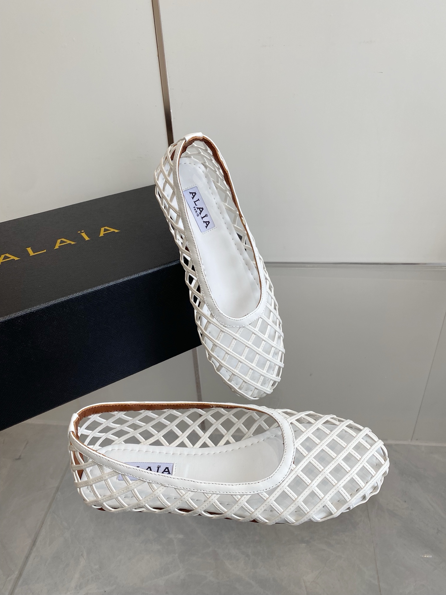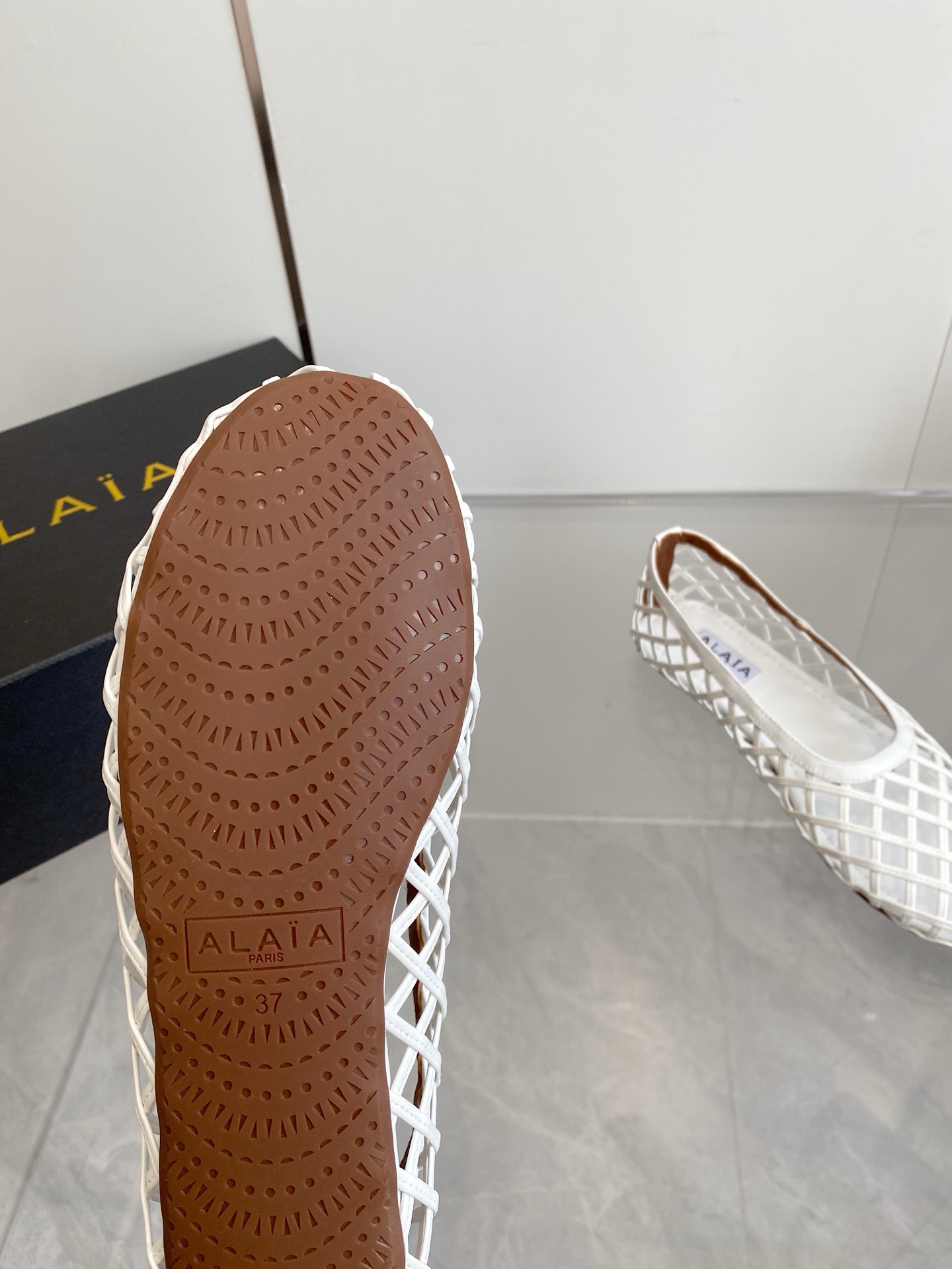 這款鞋子是AAAAA 1:1 質量(非常棒). 使用了和原版一模一樣的材料. 商標部分也保持了和Alaia一樣. 圖片拍攝是實物鞋子拍攝, 您所收到的實物保證和我們圖片一模一樣.
