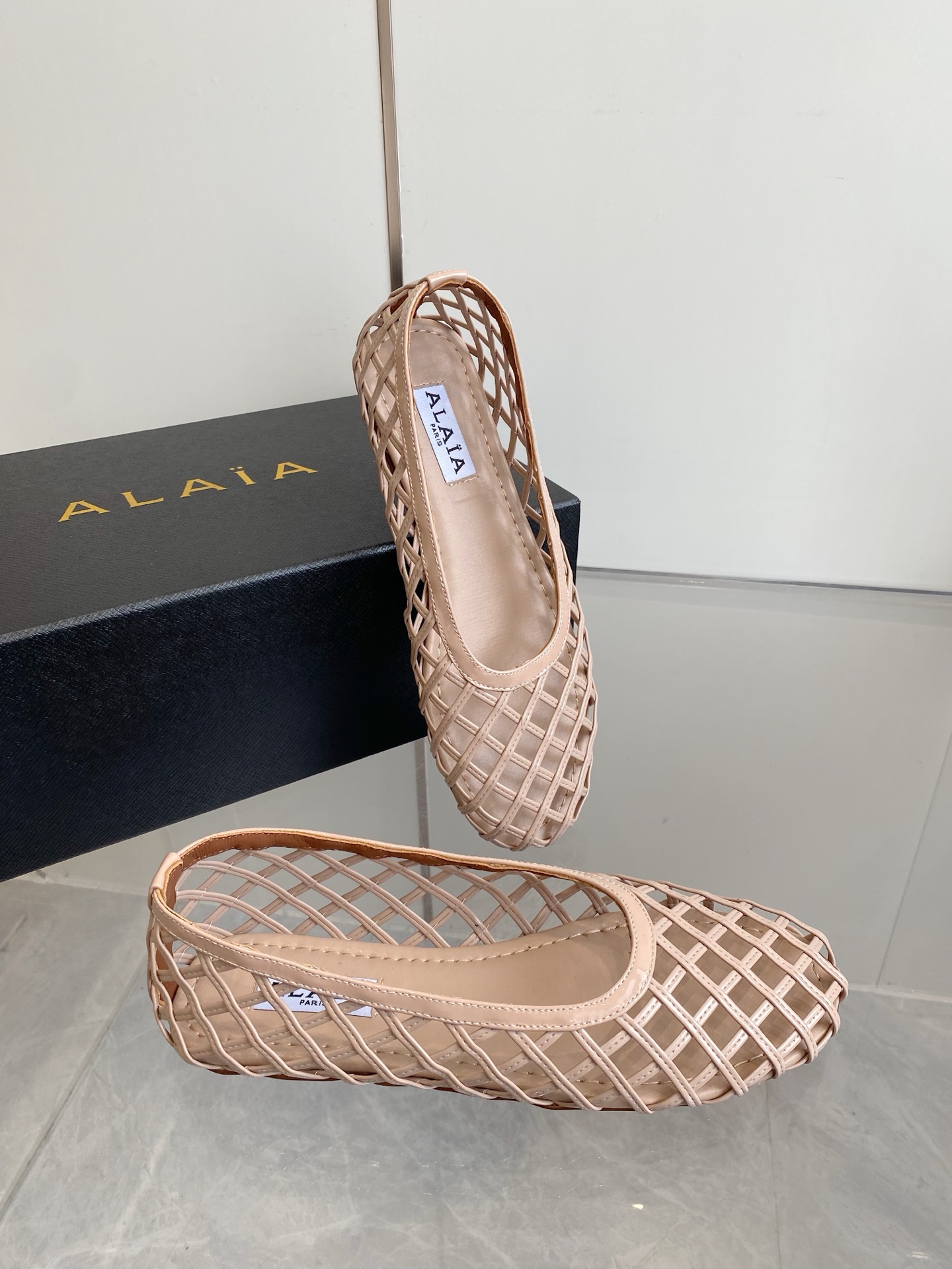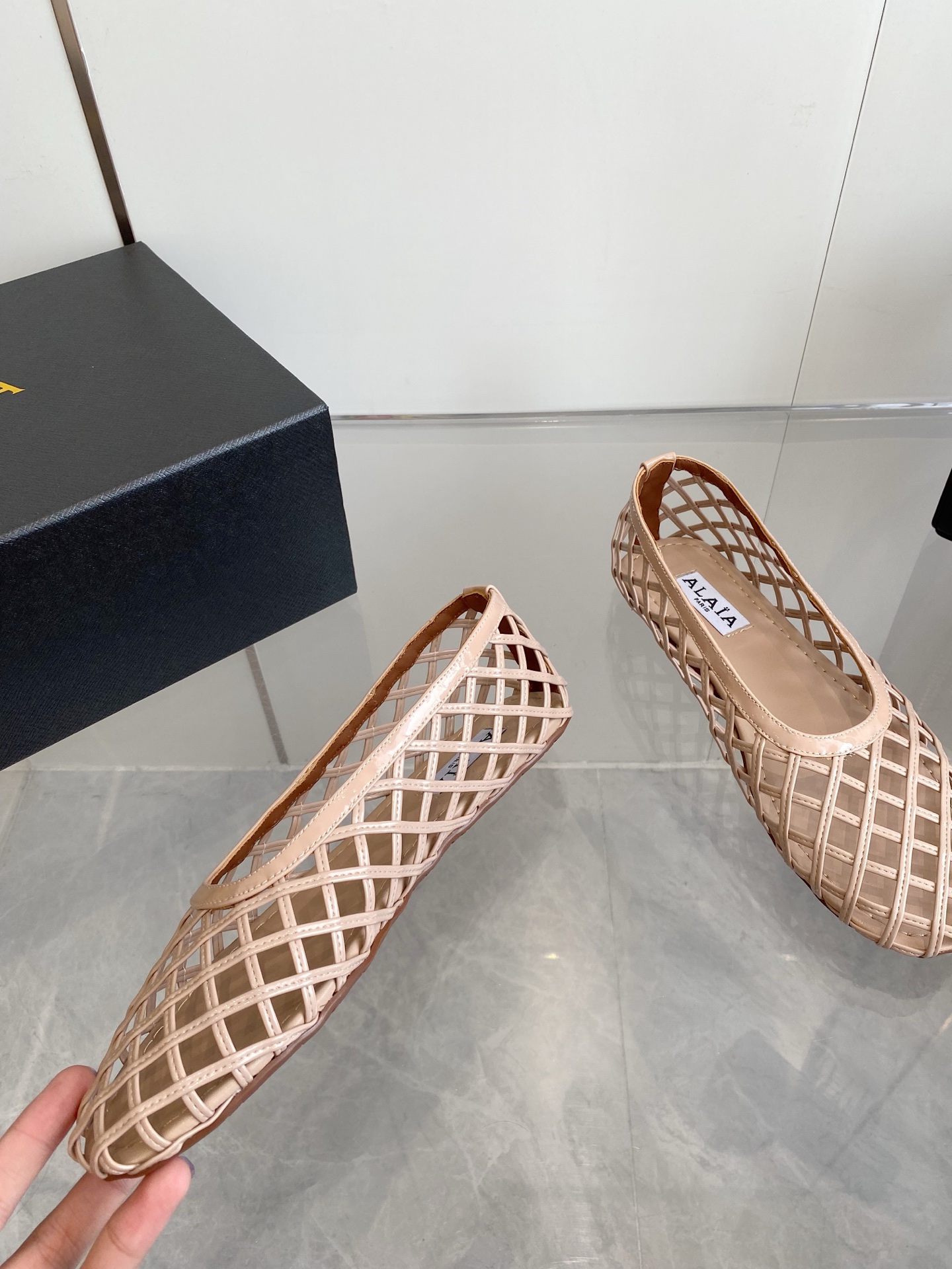 這款鞋子是AAAAA 1:1 質量(非常棒). 使用了和原版一模一樣的材料. 商標部分也保持了和Alaia一樣. 圖片拍攝是實物鞋子拍攝, 您所收到的實物保證和我們圖片一模一樣.