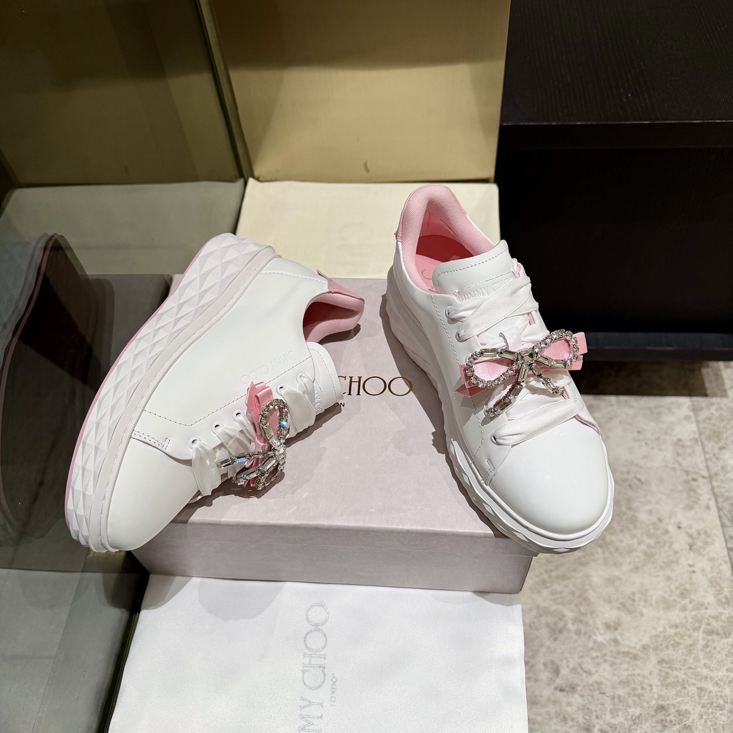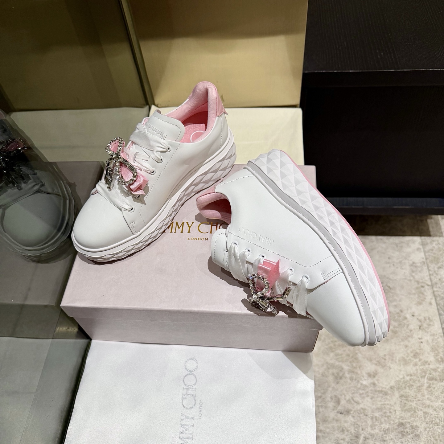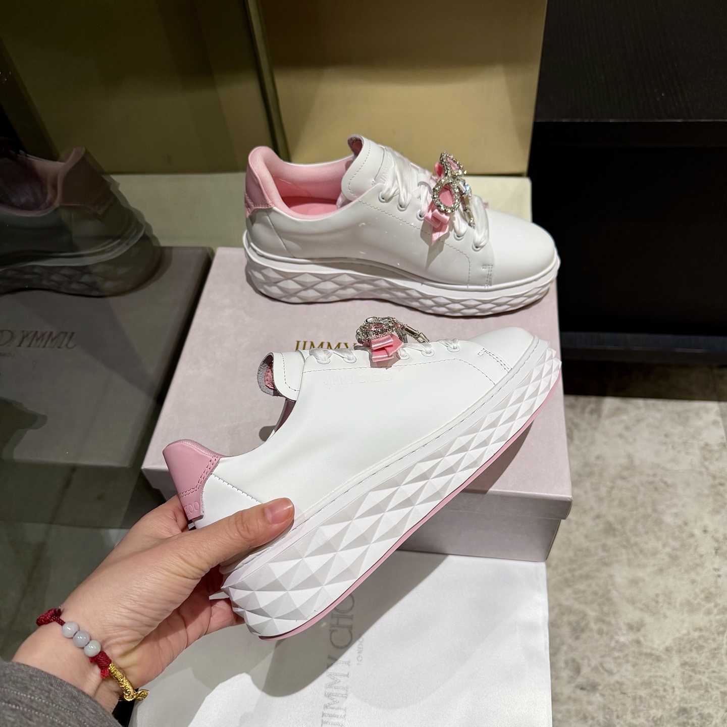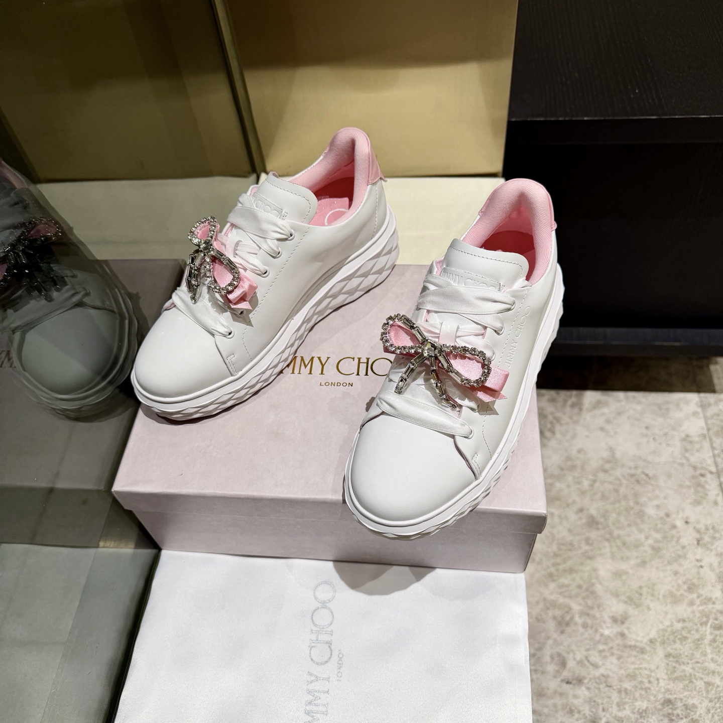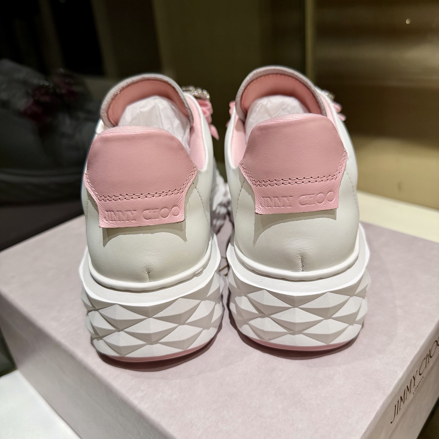 這款鞋子是AAAAA 1:1 質量(非常棒). 使用了和原版一模一樣的材料. 商標部分也保持了和吉米喬/JIMMY CHOO一樣. 圖片拍攝是實物鞋子拍攝, 您所收到的實物保證和我們圖片一模一樣.