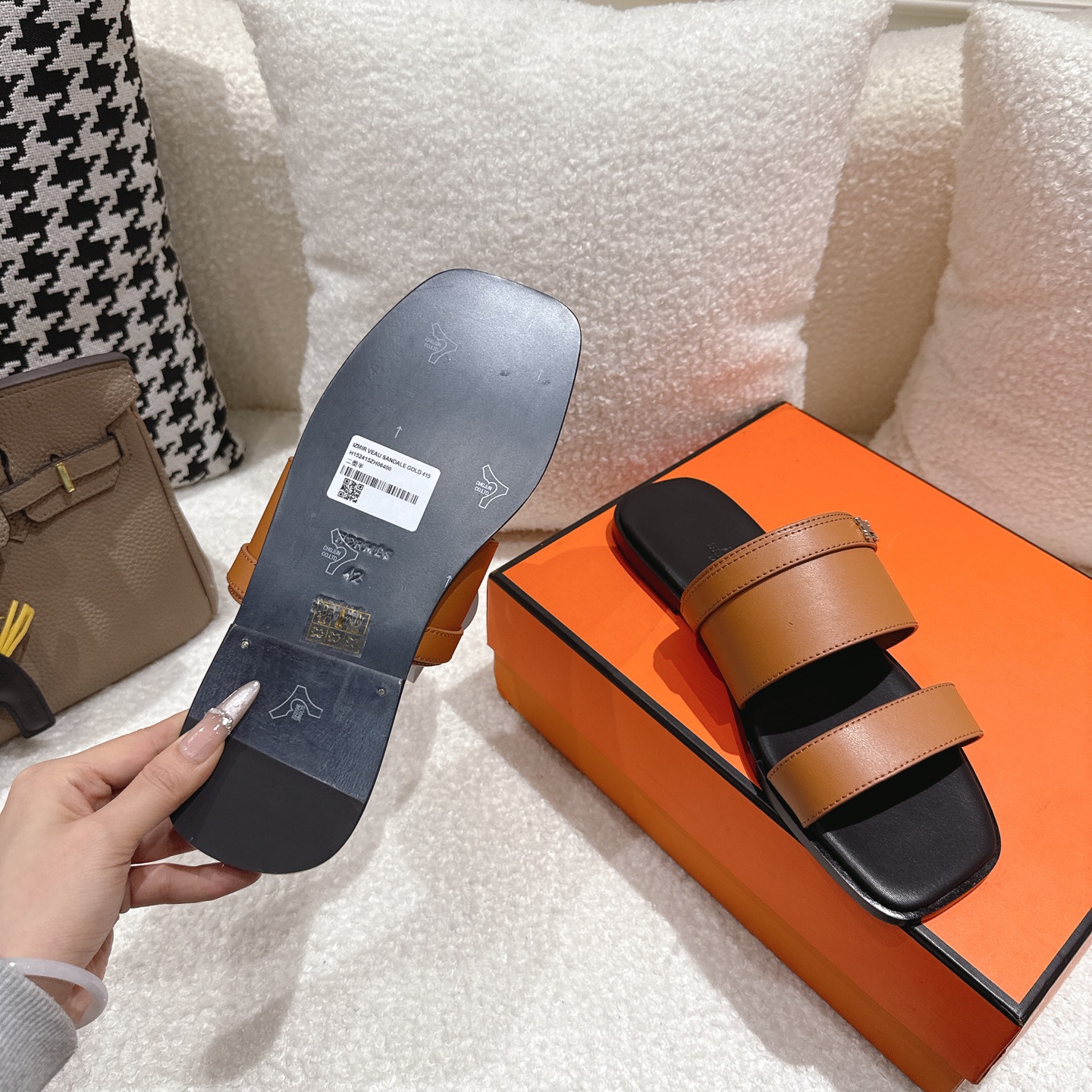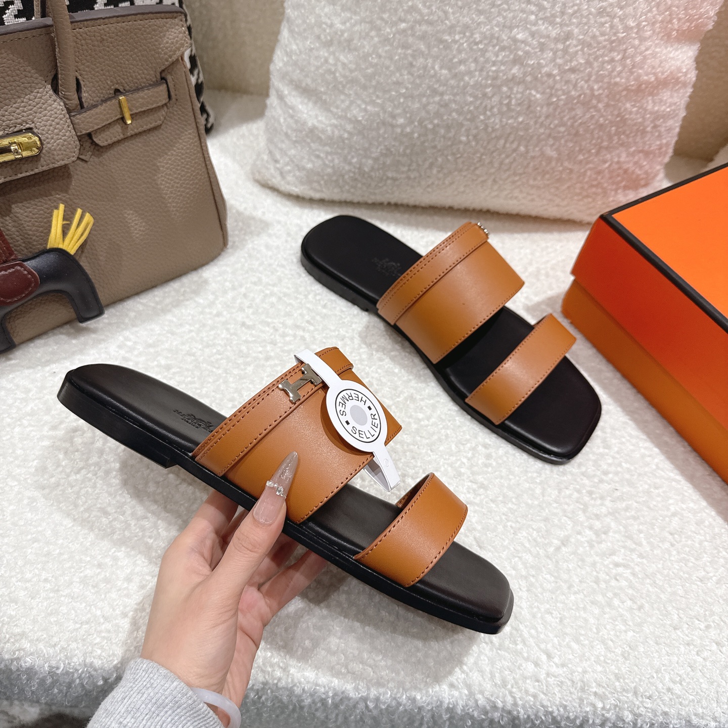 這款鞋子是AAAAA 1:1 質量(非常棒). 使用了和原版一模一樣的材料. 商標部分也保持了和愛馬仕/Hermes一樣. 圖片拍攝是實物鞋子拍攝, 您所收到的實物保證和我們圖片一模一樣.