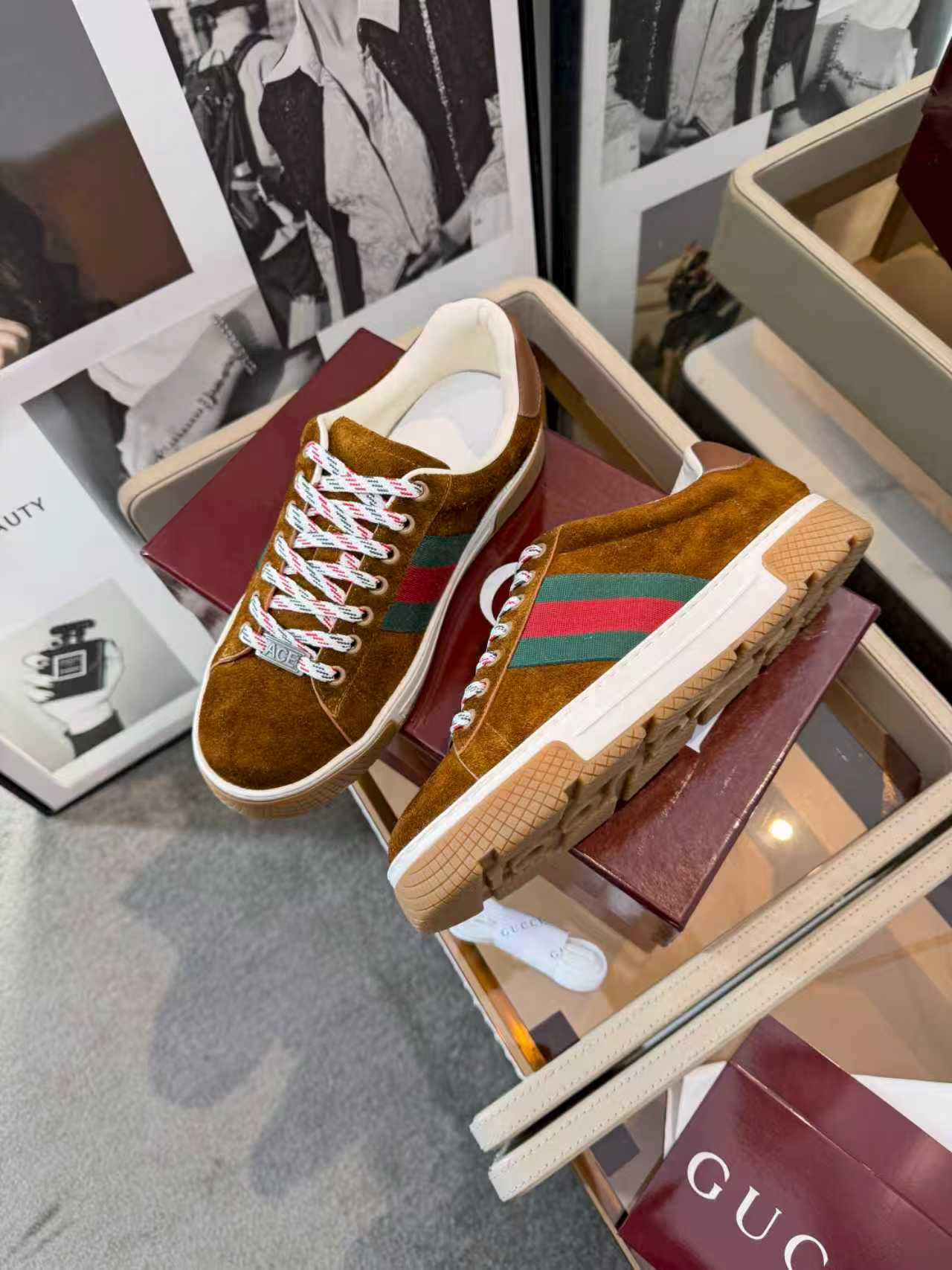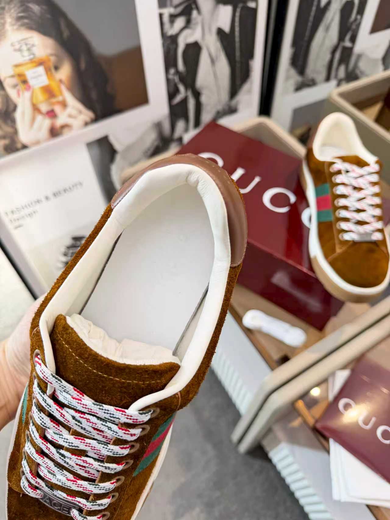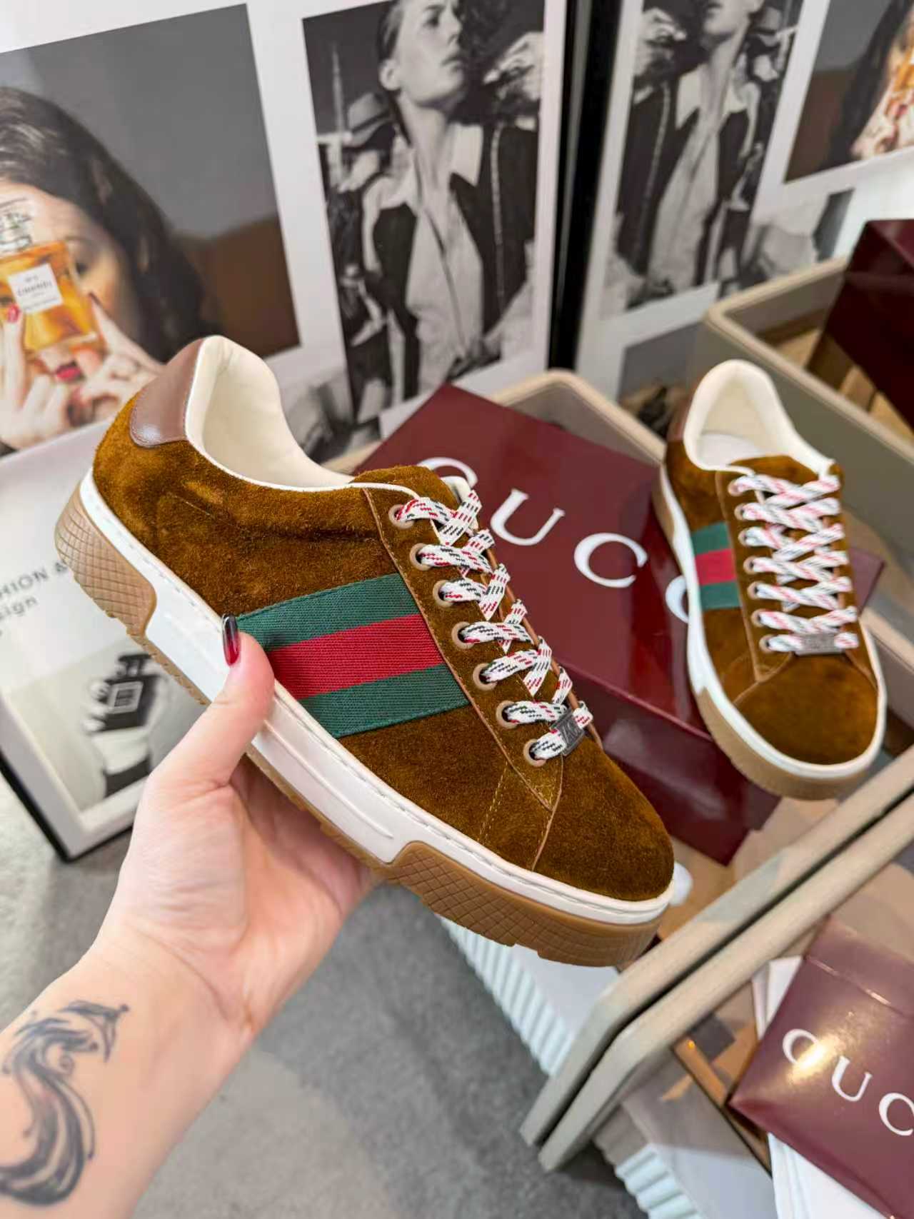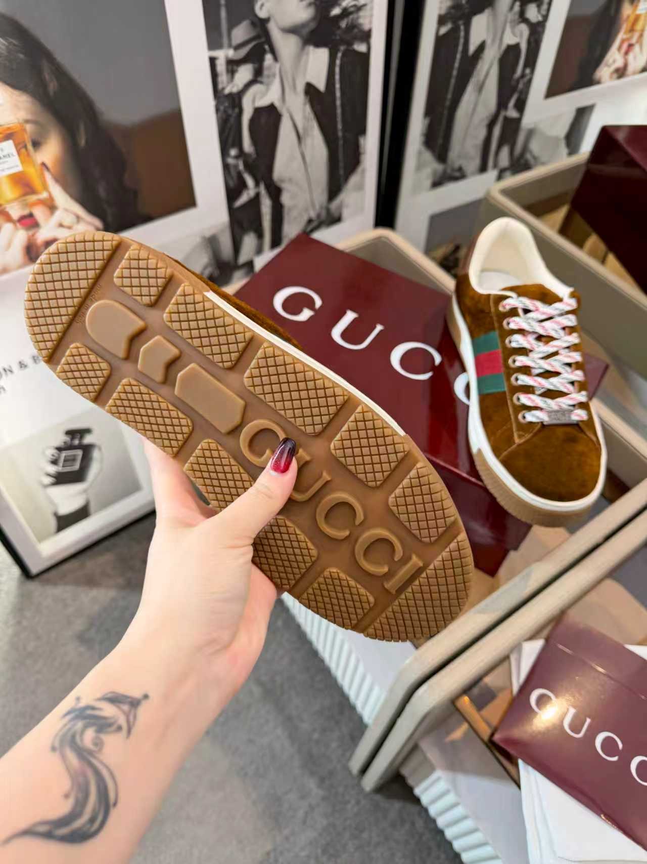 這款鞋子是AAAAA 1:1 質量(非常棒). 使用了和原版一模一樣的材料. 商標部分也保持了和古奇/Gucci一樣. 圖片拍攝是實物鞋子拍攝, 您所收到的實物保證和我們圖片一模一樣.
