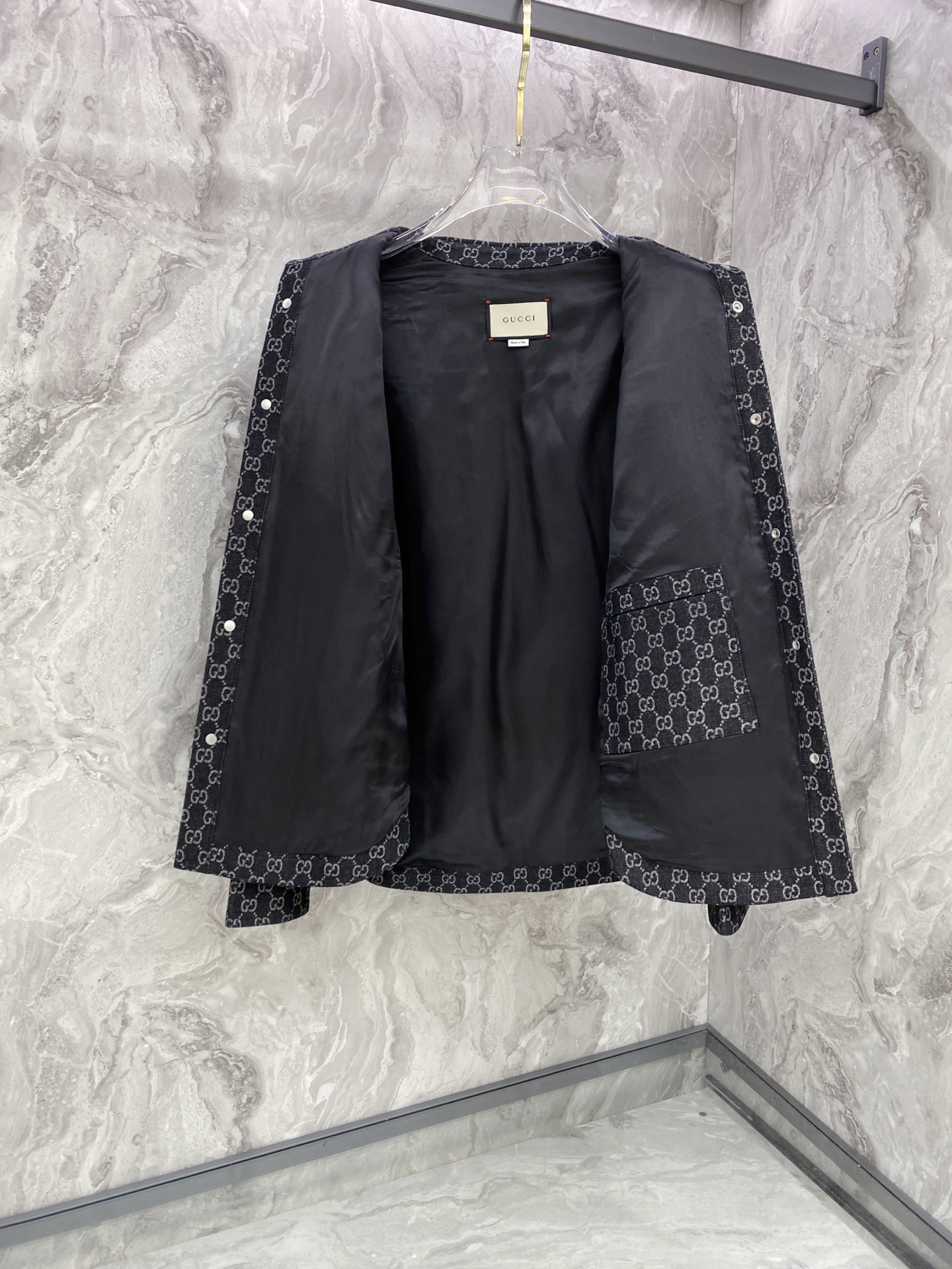 這款衣服是AAAAA 1:1 質量(非常棒). 使用了和原版一模一樣的材料. 商標部分也保持了和古奇/Gucci一樣. 圖片拍攝是實物衣服拍攝, 您所收到的實物保證和我們圖片一模一樣.