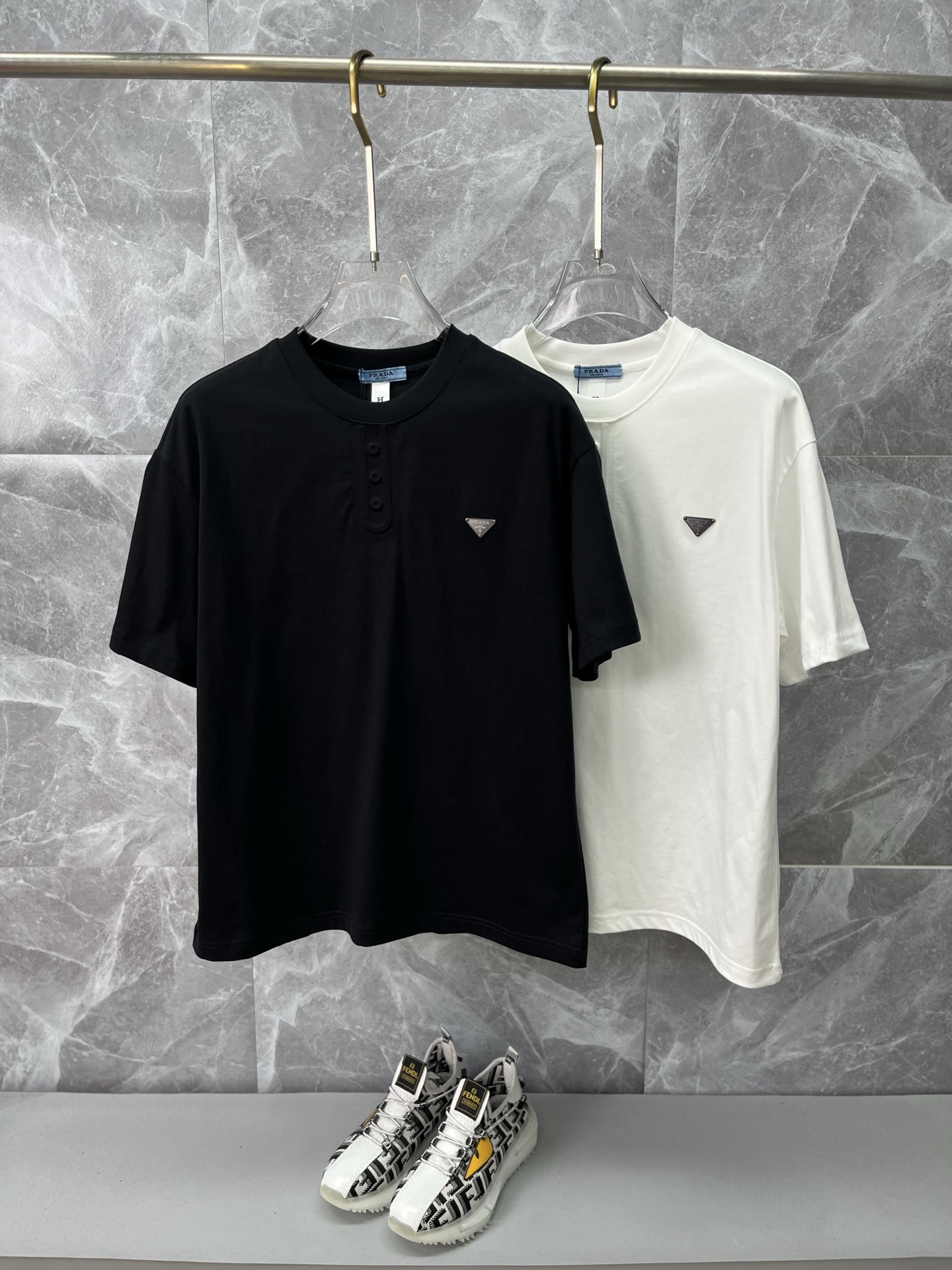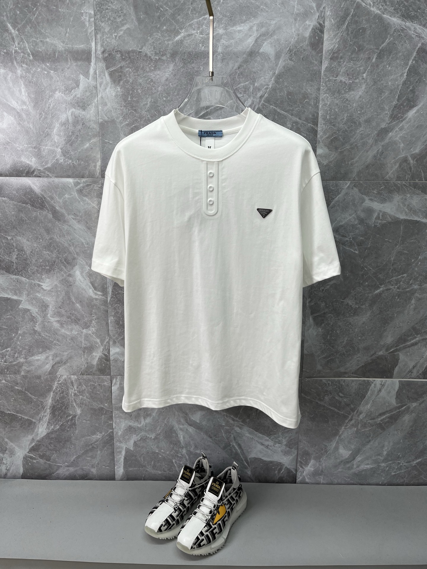 這款衣服是AAAAA 1:1 質量(非常棒). 使用了和原版一模一樣的材料. 商標部分也保持了和普拉達/Prada一樣. 圖片拍攝是實物衣服拍攝, 您所收到的實物保證和我們圖片一模一樣.