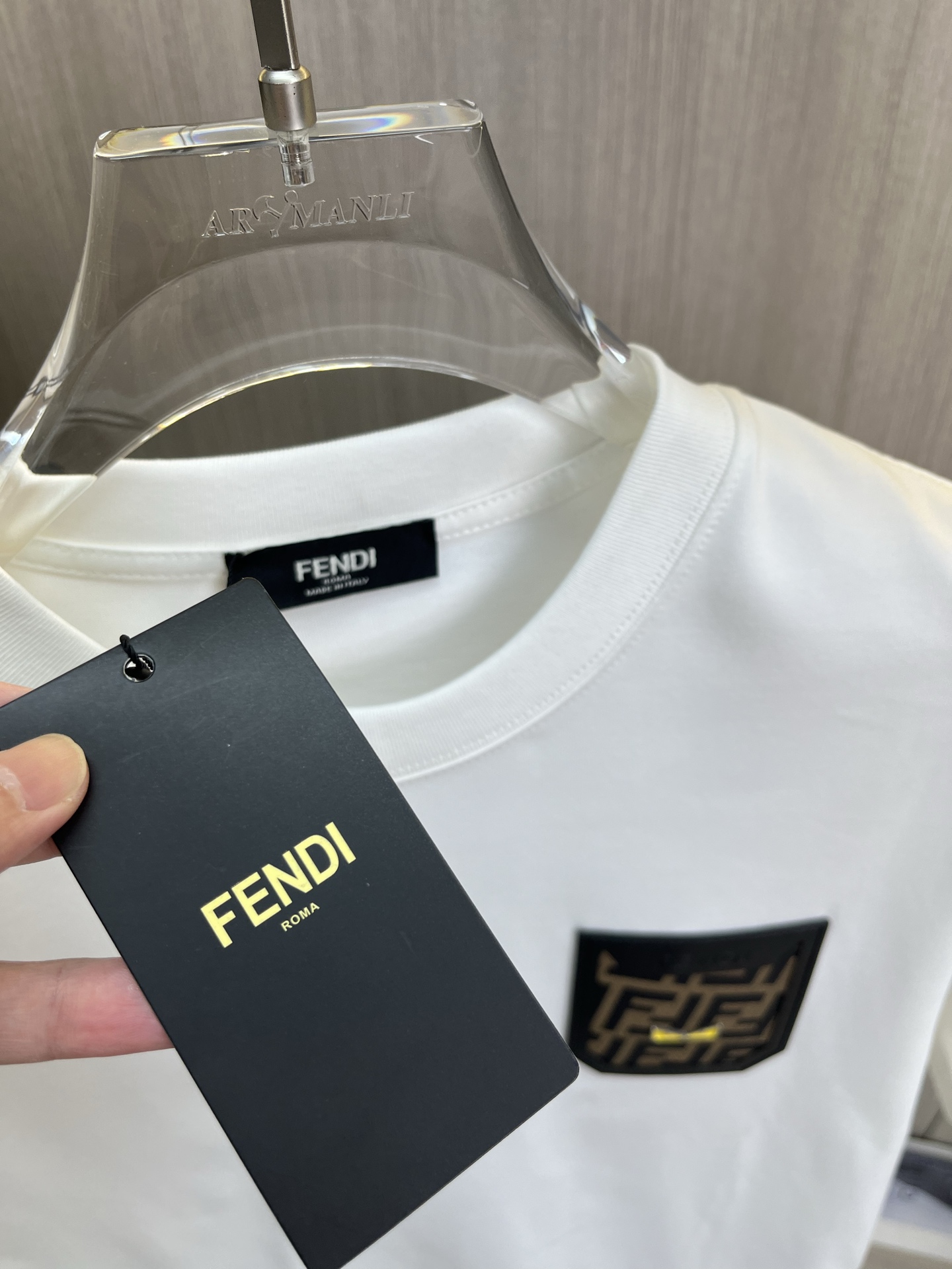 這款衣服是AAAAA 1:1 質量(非常棒). 使用了和原版一模一樣的材料. 商標部分也保持了和芬迪/Fendi一樣. 圖片拍攝是實物衣服拍攝, 您所收到的實物保證和我們圖片一模一樣.