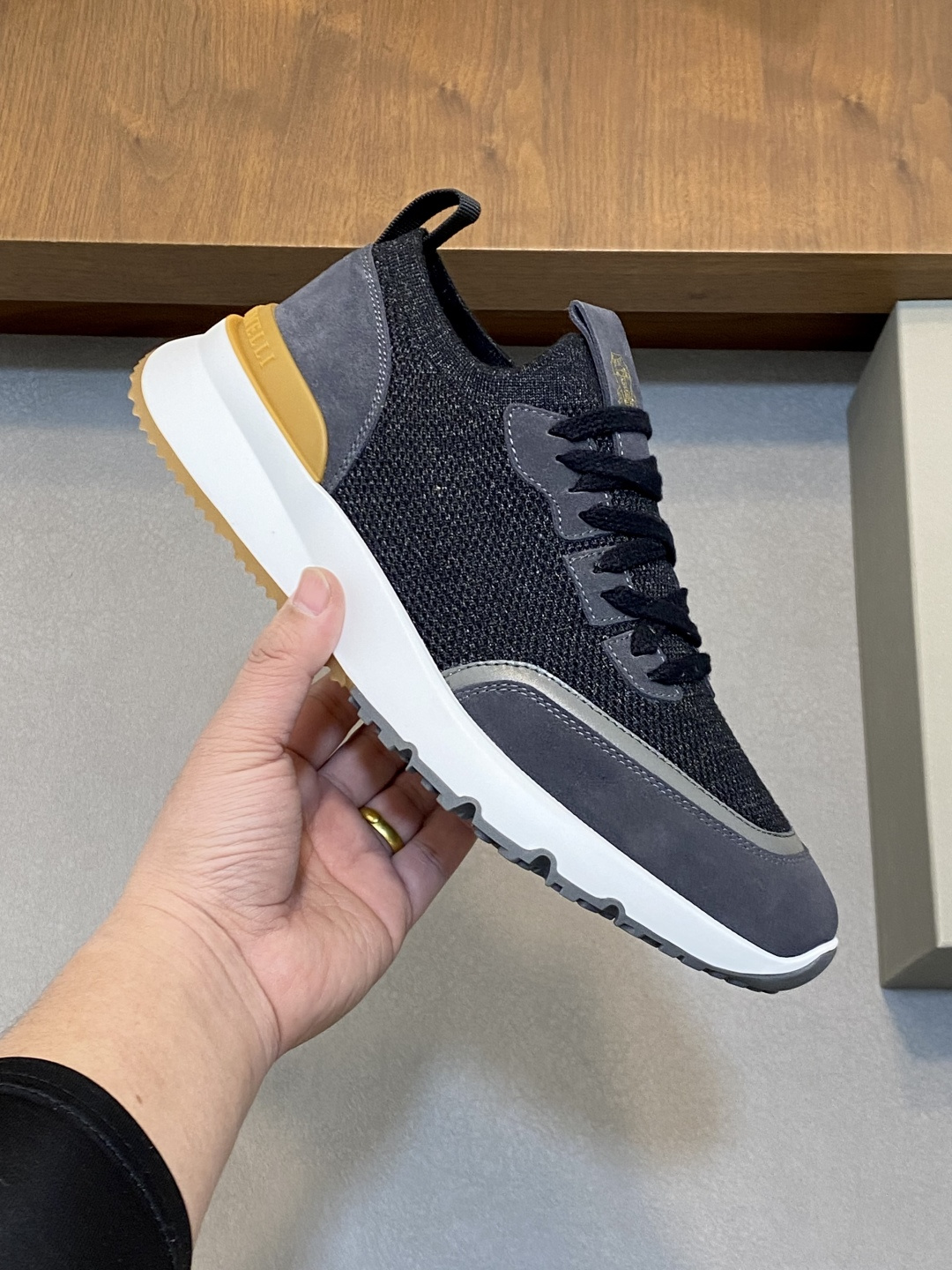 這款鞋子是AAAAA 1:1 質量(非常棒). 使用了和原版一模一樣的材料. 商標部分也保持了和Brunello Cucinelli一樣. 圖片拍攝是實物鞋子拍攝, 您所收到的實物保證和我們圖片一模一樣.