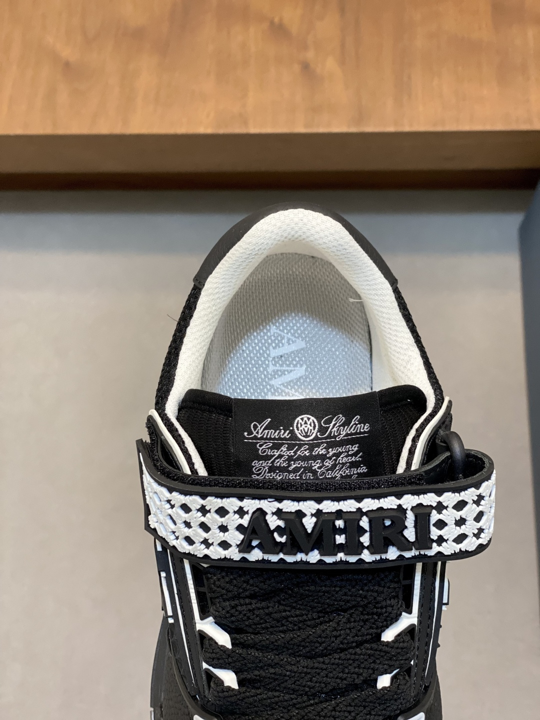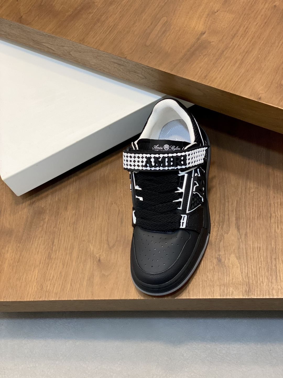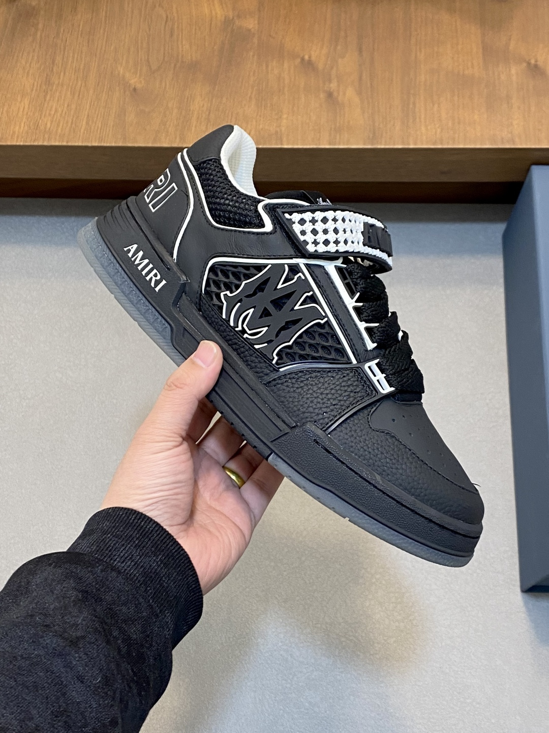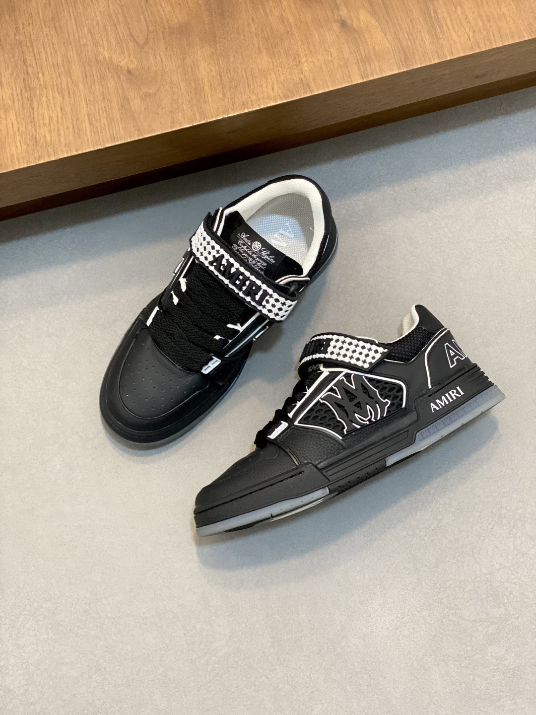 這款鞋子是AAAAA 1:1 質量(非常棒). 使用了和原版一模一樣的材料. 商標部分也保持了和AMIRI一樣. 圖片拍攝是實物鞋子拍攝, 您所收到的實物保證和我們圖片一模一樣.