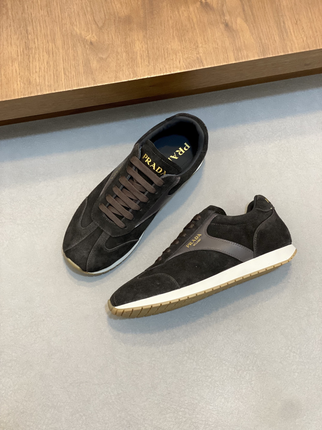 這款鞋子是AAAAA 1:1 質量(非常棒). 使用了和原版一模一樣的材料. 商標部分也保持了和普拉達/Prada一樣. 圖片拍攝是實物鞋子拍攝, 您所收到的實物保證和我們圖片一模一樣.