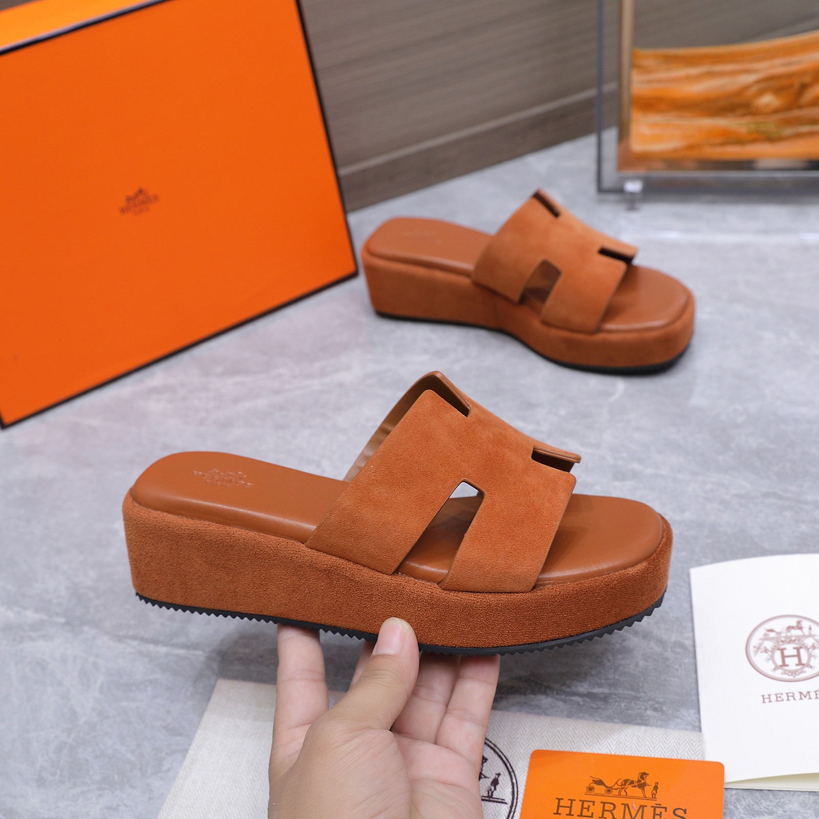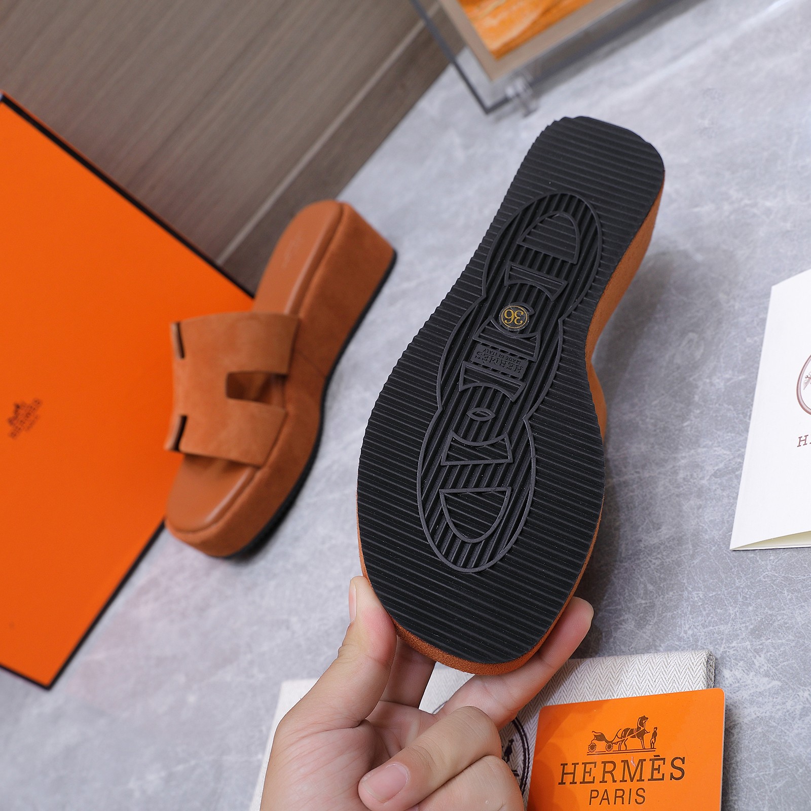 這款鞋子是AAAAA 1:1 質量(非常棒). 使用了和原版一模一樣的材料. 商標部分也保持了和愛馬仕/Hermes一樣. 圖片拍攝是實物鞋子拍攝, 您所收到的實物保證和我們圖片一模一樣.