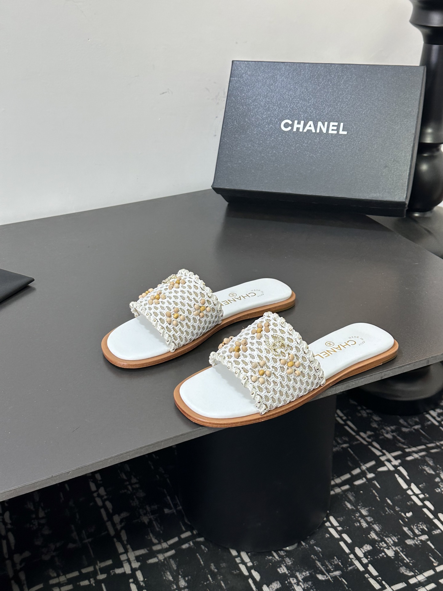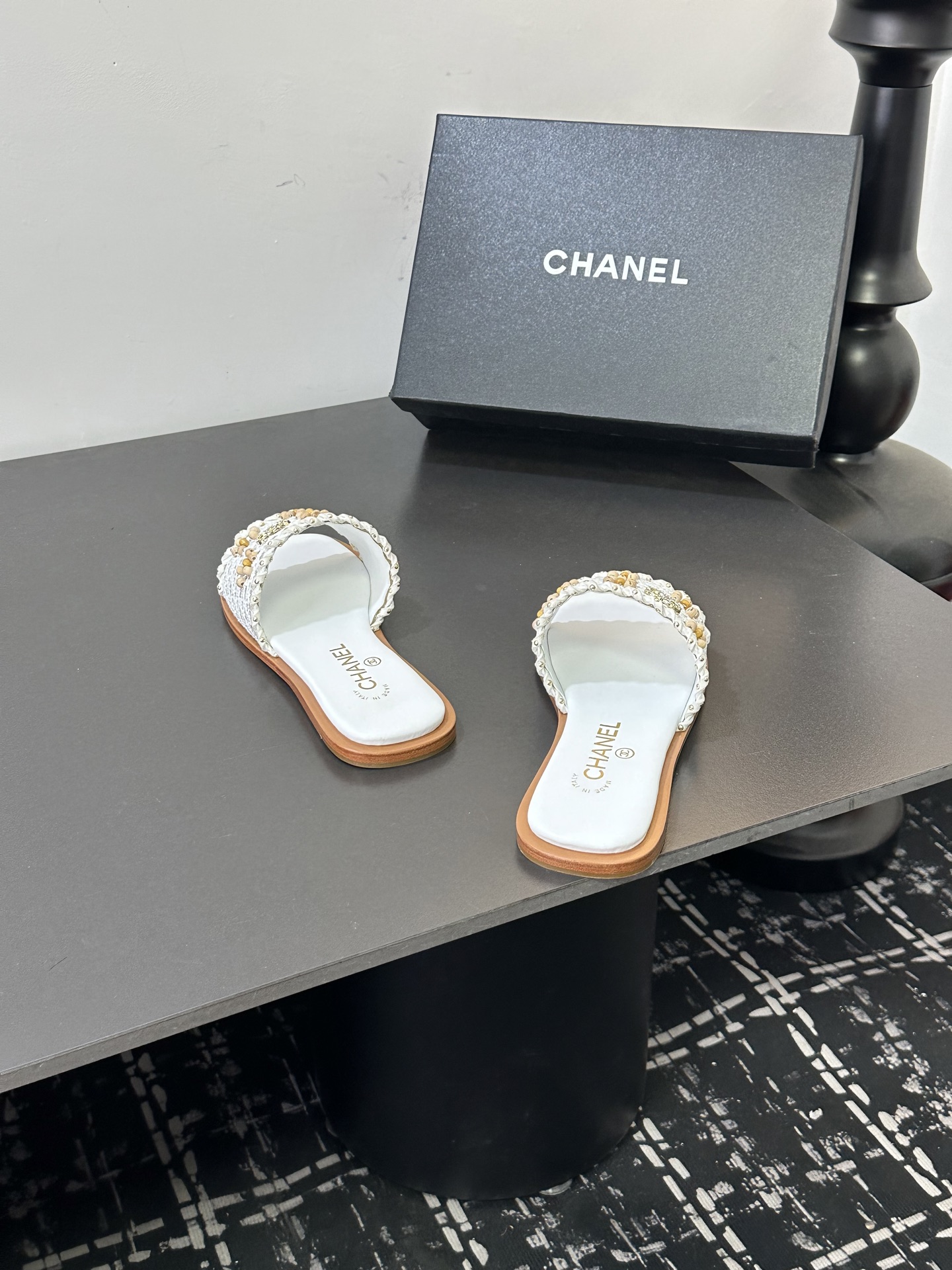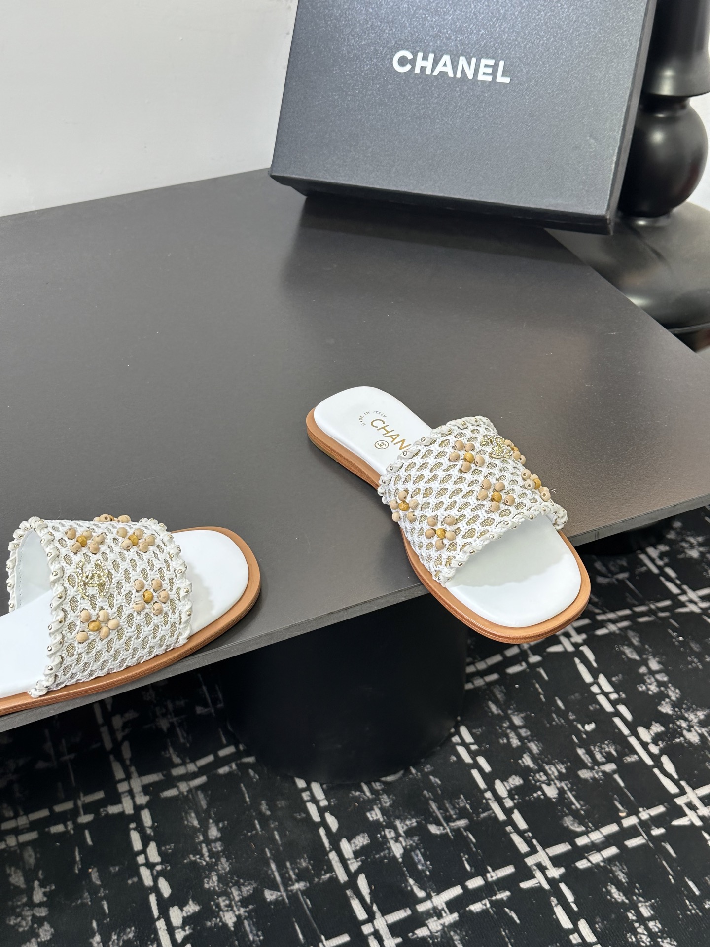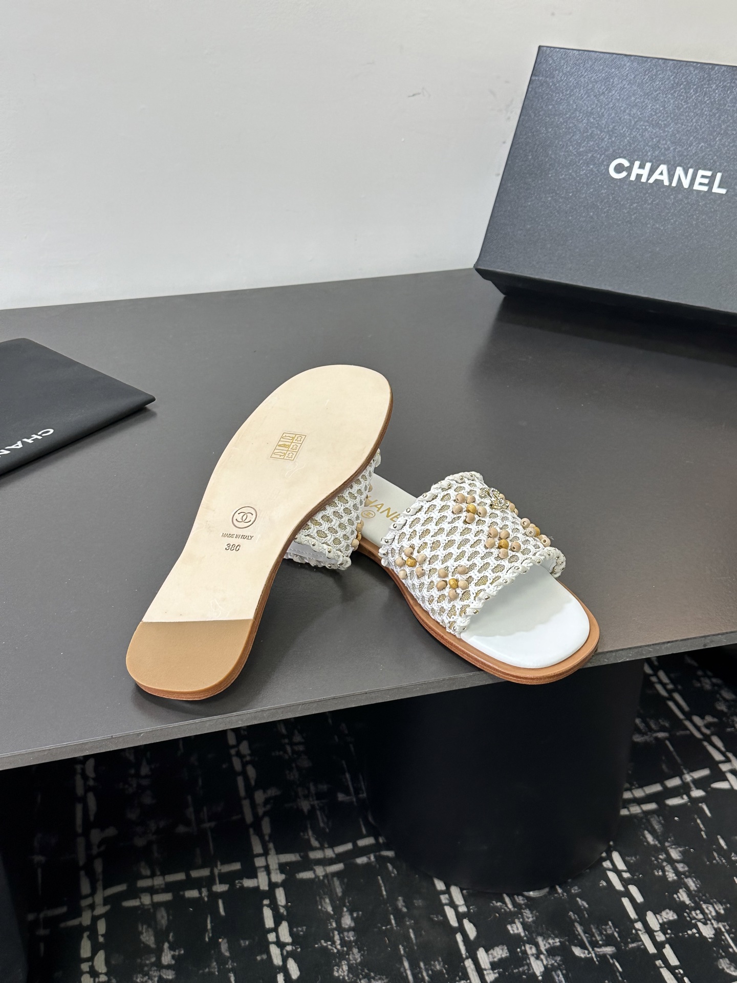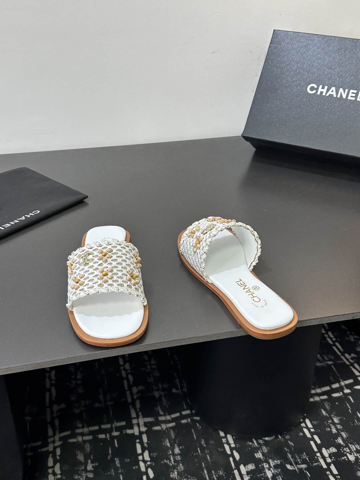 這款鞋子是AAAAA 1:1 質量(非常棒). 使用了和原版一模一樣的材料. 商標部分也保持了和香奈兒/Chanel一樣. 圖片拍攝是實物鞋子拍攝, 您所收到的實物保證和我們圖片一模一樣.