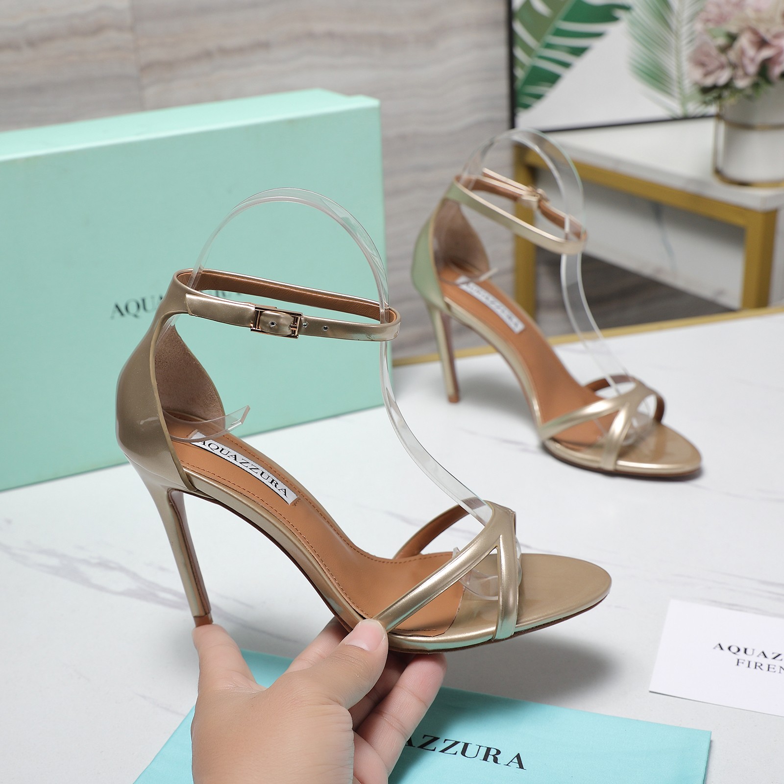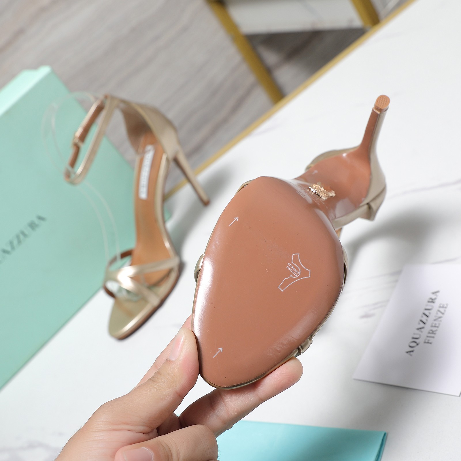 這款鞋子是AAAAA 1:1 質量(非常棒). 使用了和原版一模一樣的材料. 商標部分也保持了和Aquazzura一樣. 圖片拍攝是實物鞋子拍攝, 您所收到的實物保證和我們圖片一模一樣.