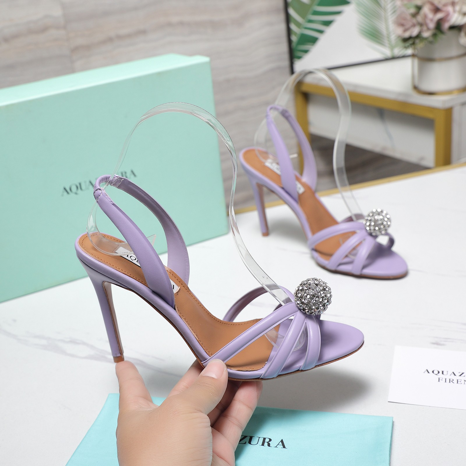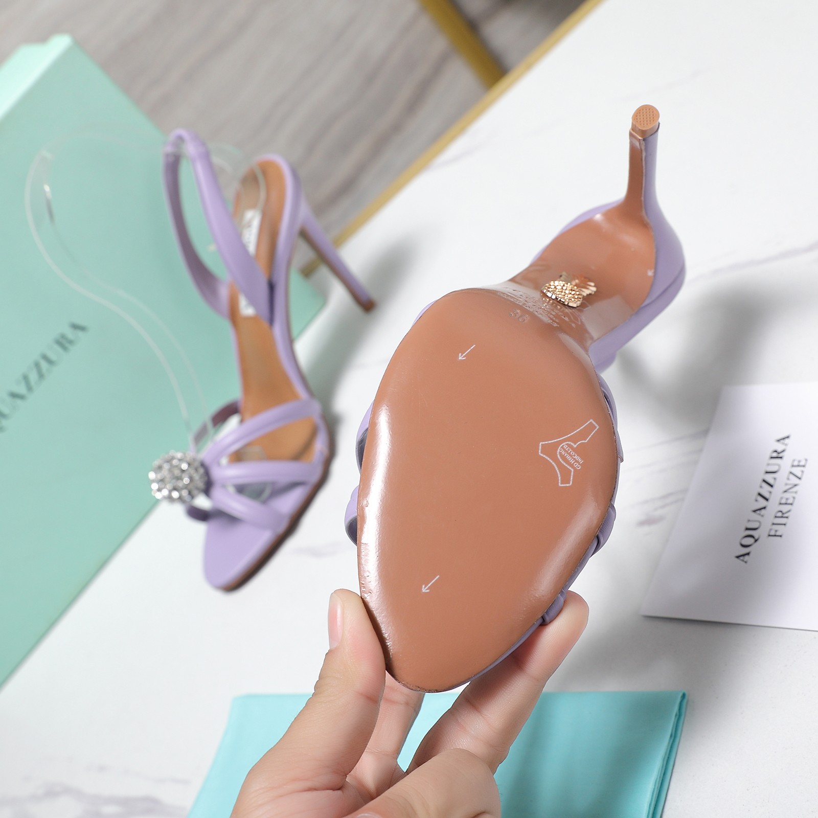 這款鞋子是AAAAA 1:1 質量(非常棒). 使用了和原版一模一樣的材料. 商標部分也保持了和Aquazzura一樣. 圖片拍攝是實物鞋子拍攝, 您所收到的實物保證和我們圖片一模一樣.