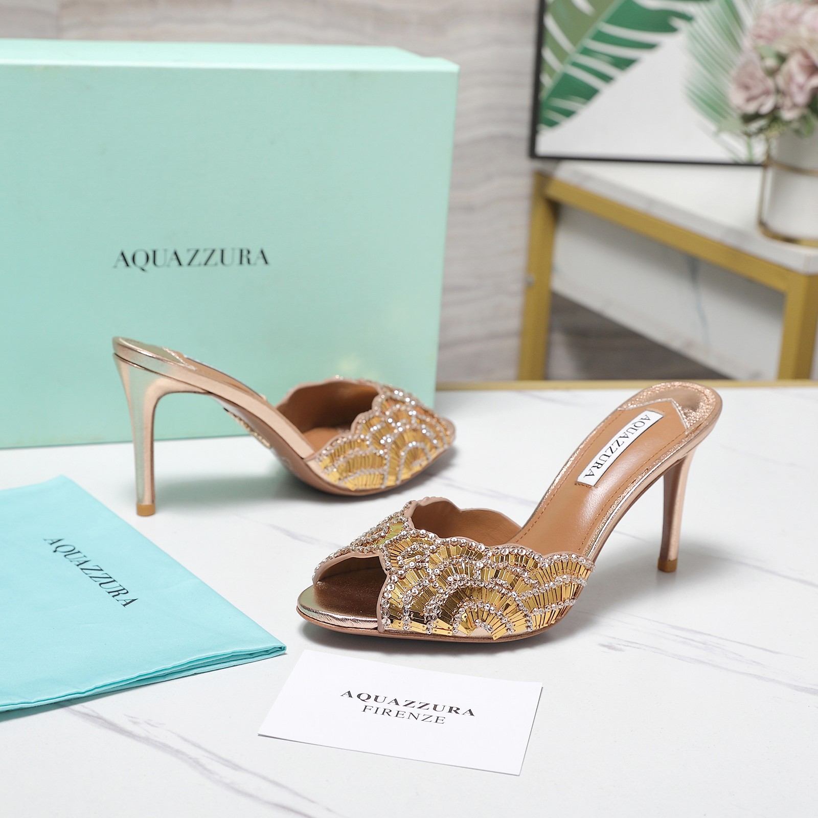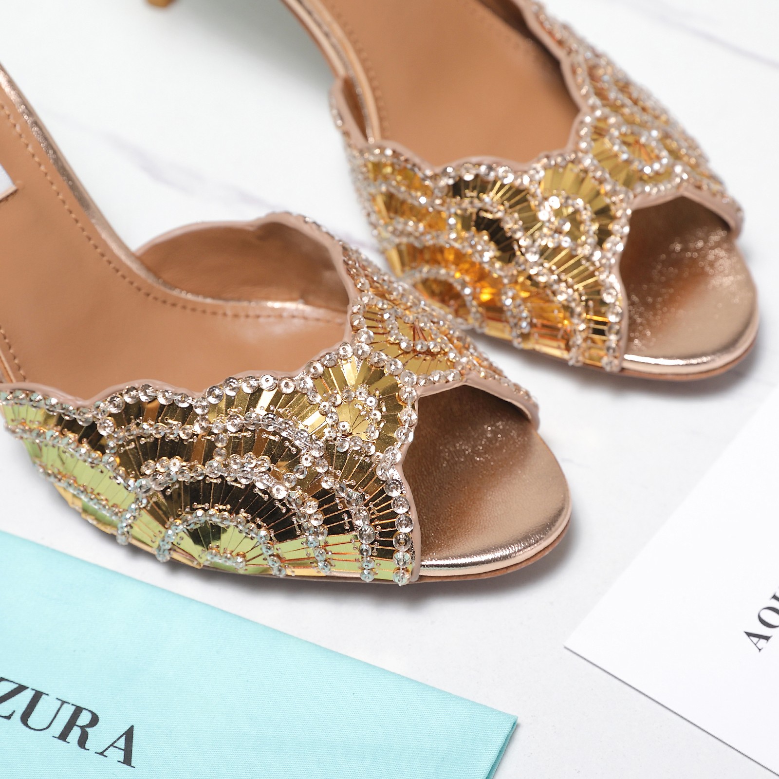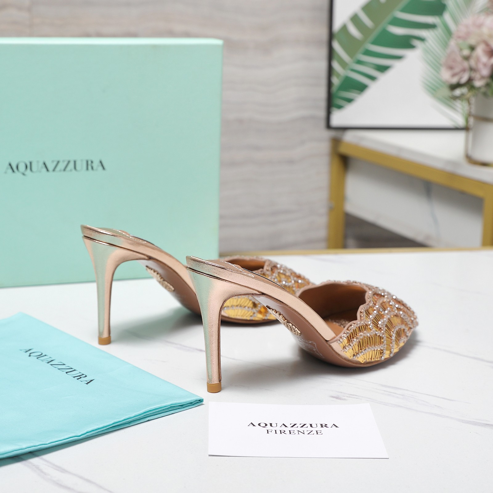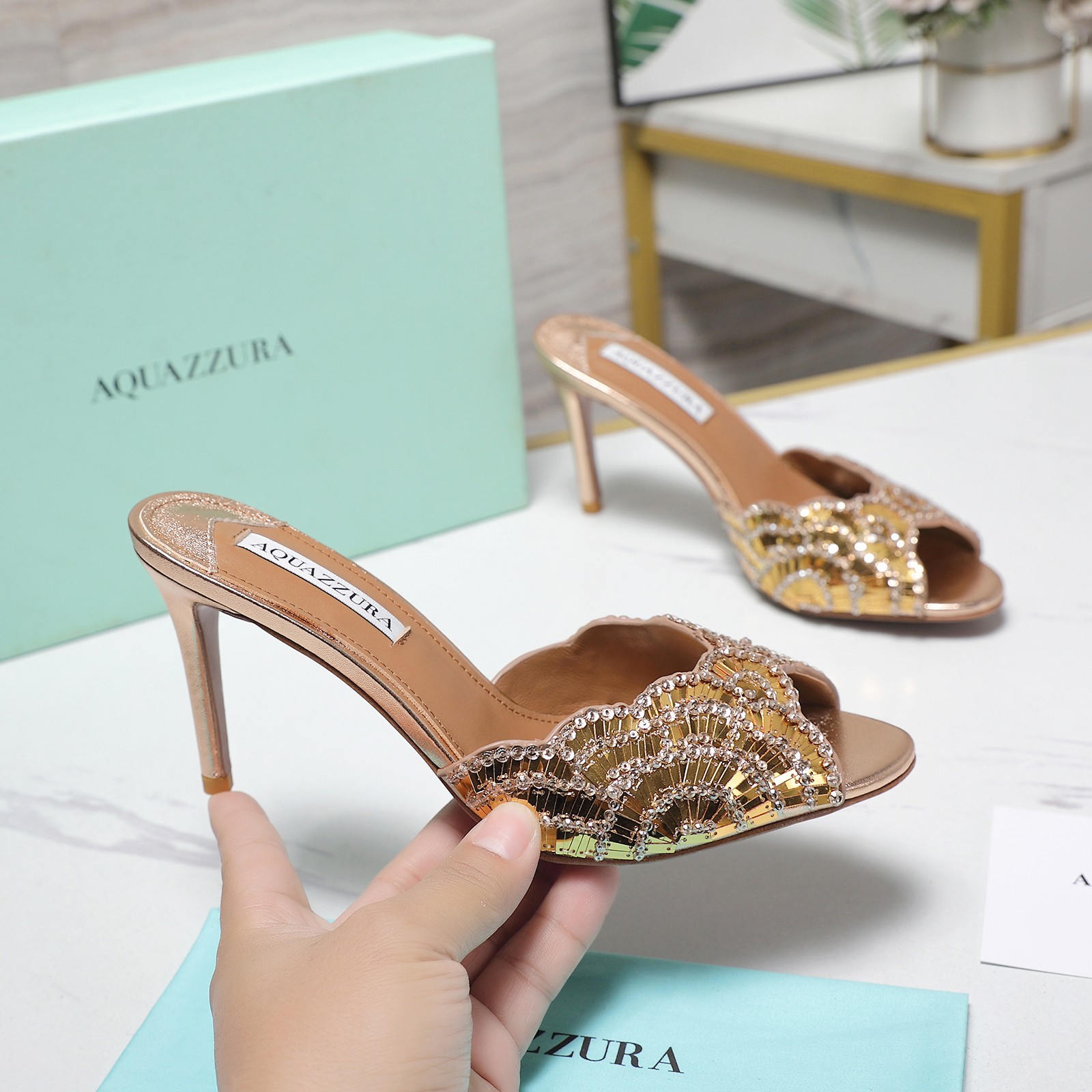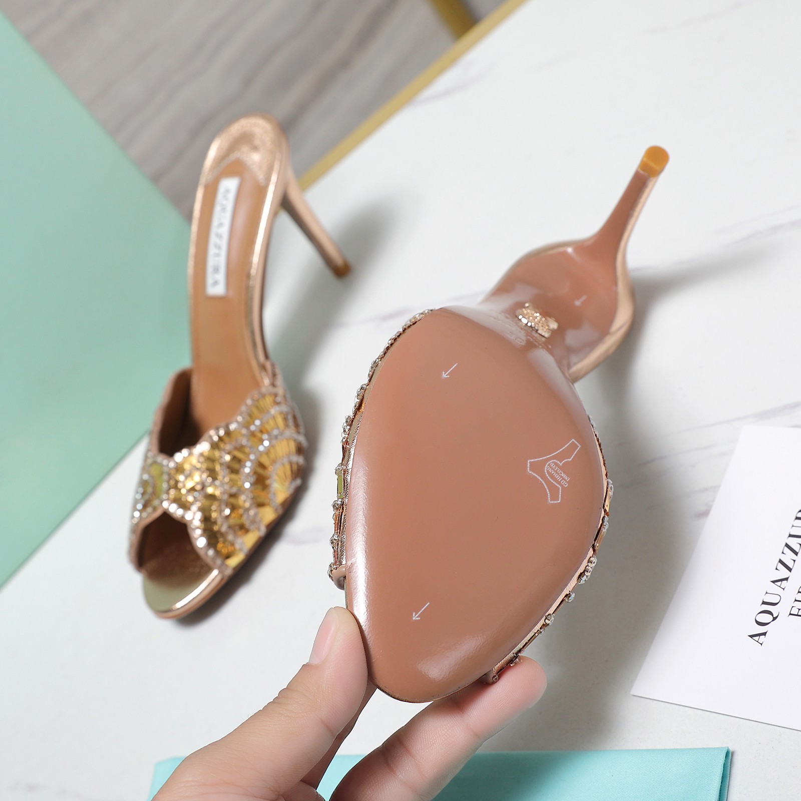 這款鞋子是AAAAA 1:1 質量(非常棒). 使用了和原版一模一樣的材料. 商標部分也保持了和Aquazzura一樣. 圖片拍攝是實物鞋子拍攝, 您所收到的實物保證和我們圖片一模一樣.