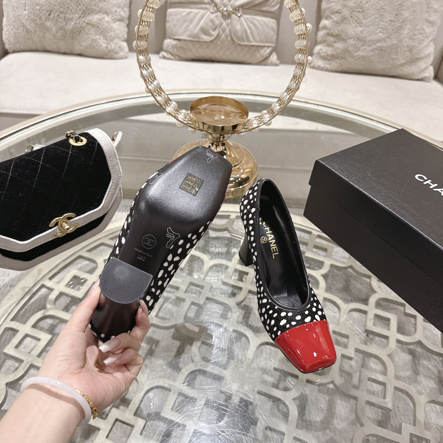 這款鞋子是AAAAA 1:1 質量(非常棒). 使用了和原版一模一樣的材料. 商標部分也保持了和香奈兒/Chanel一樣. 圖片拍攝是實物鞋子拍攝, 您所收到的實物保證和我們圖片一模一樣.