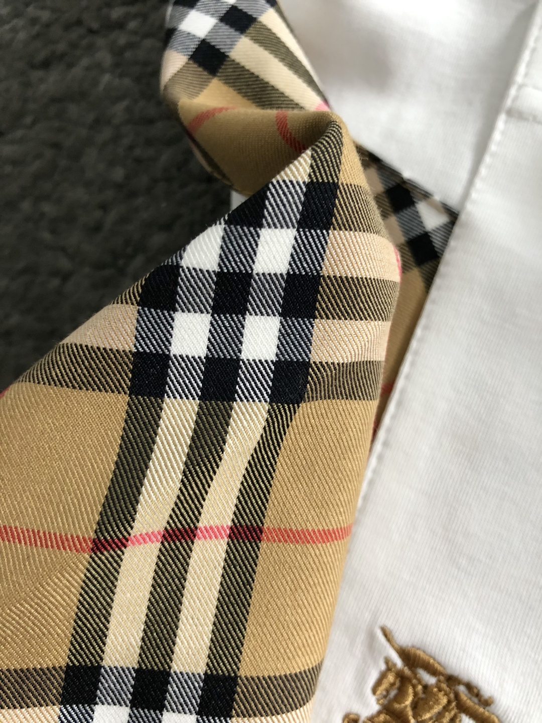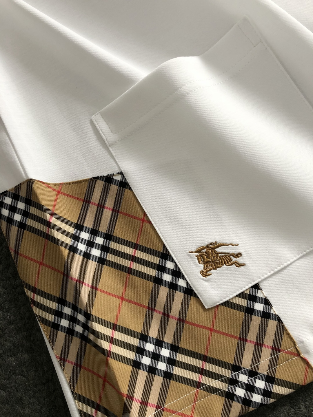 這款衣服是AAAAA 1:1 質量(非常棒). 使用了和原版一模一樣的材料. 商標部分也保持了和巴寶莉/Burberry一樣. 圖片拍攝是實物衣服拍攝, 您所收到的實物保證和我們圖片一模一樣.