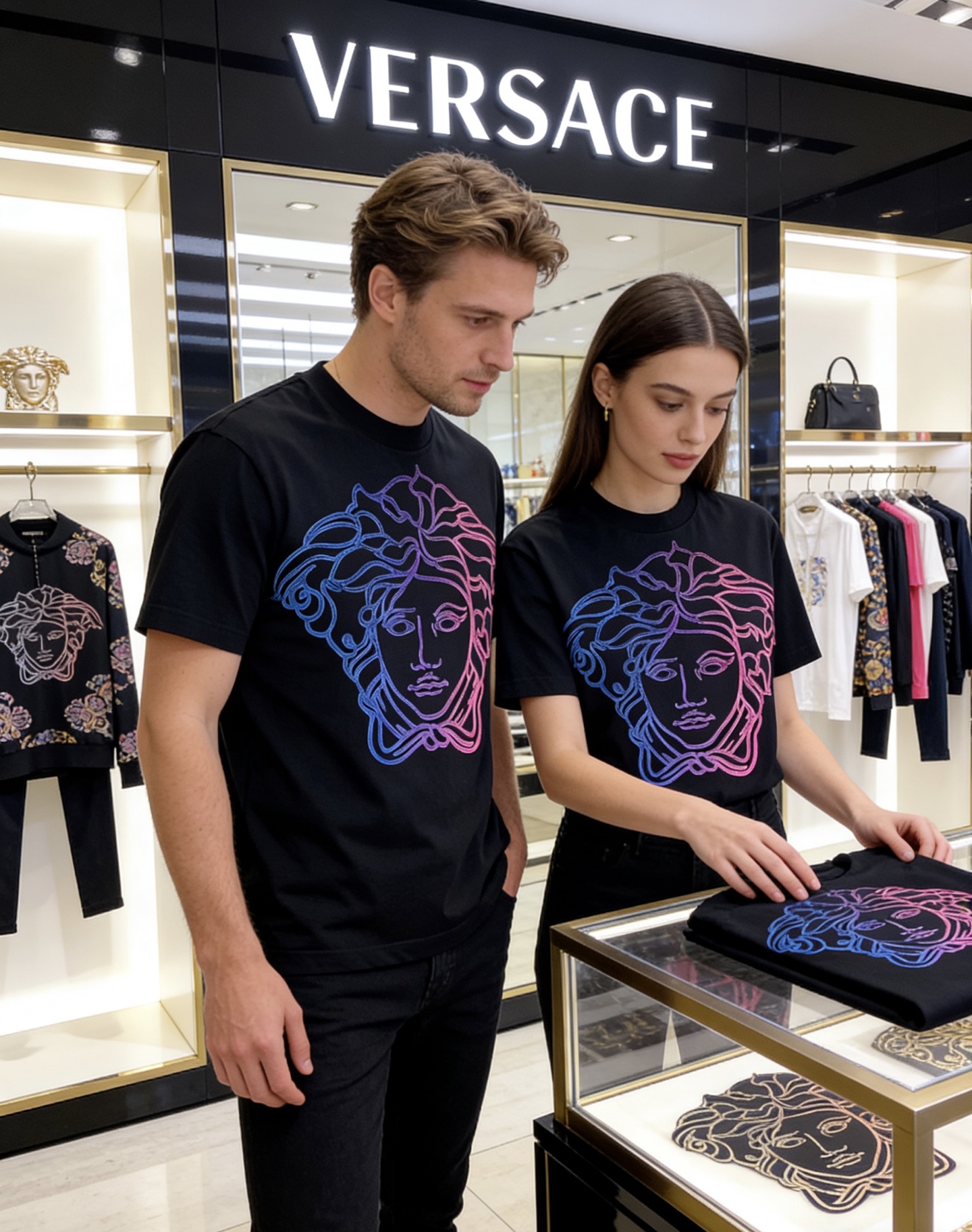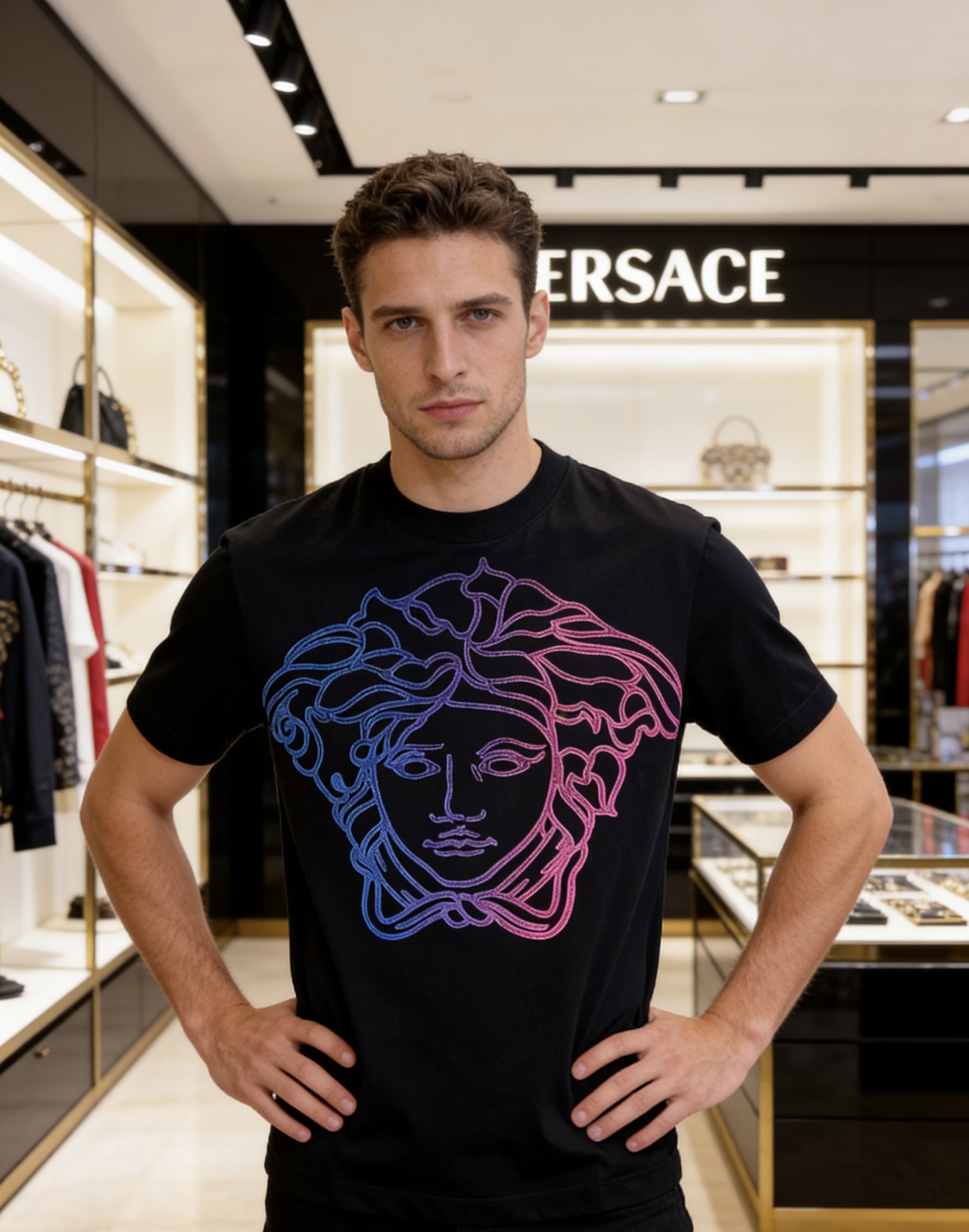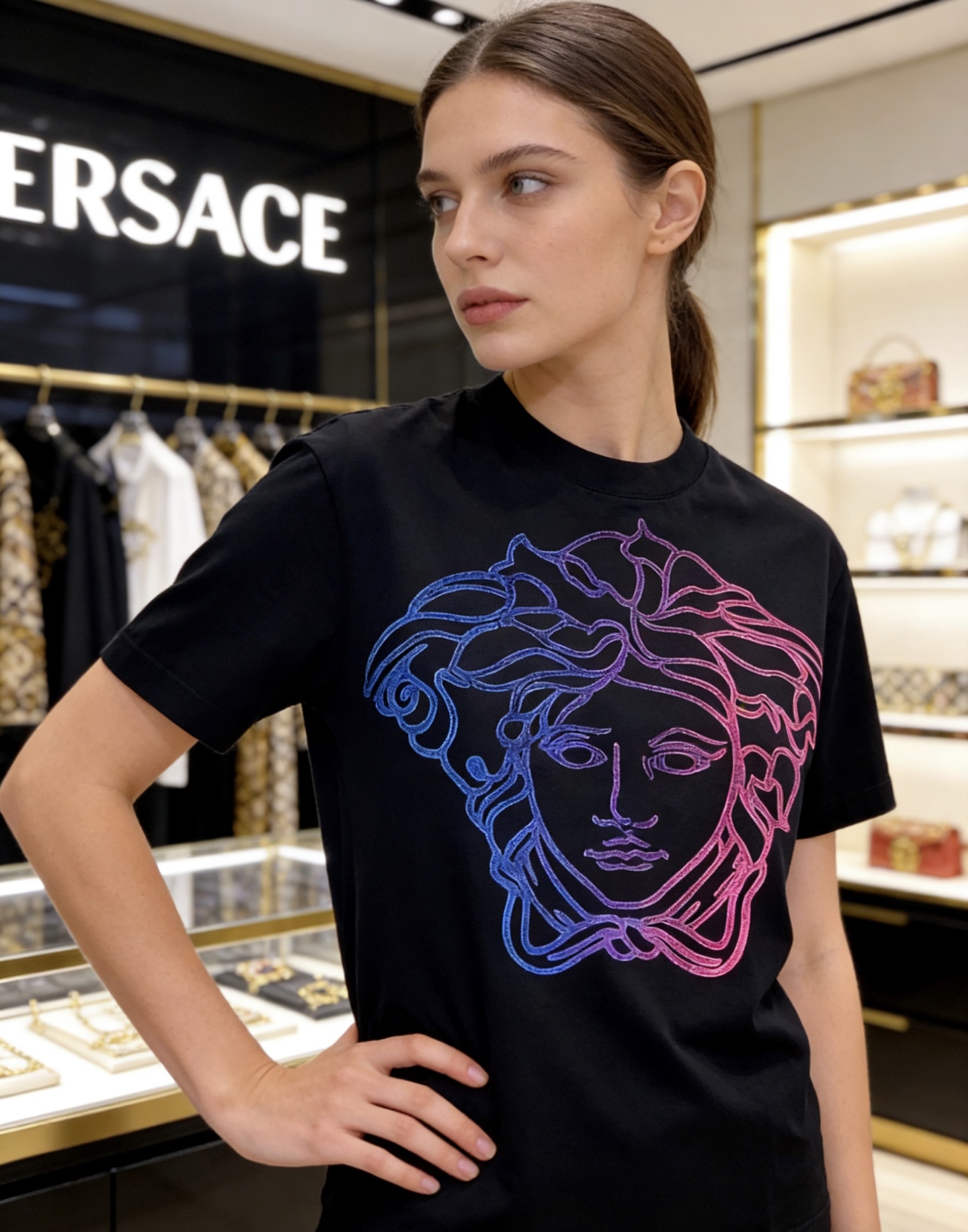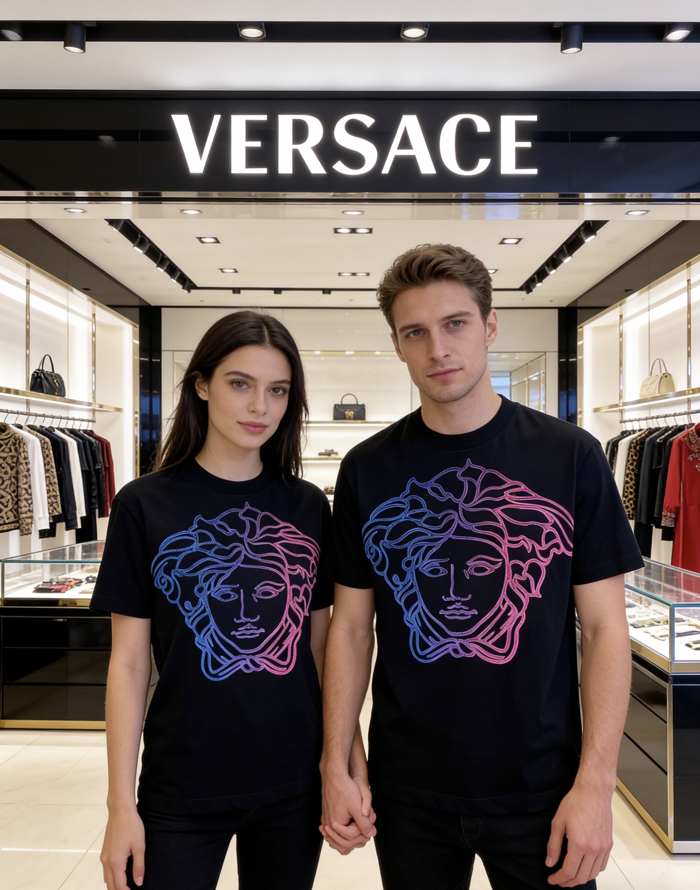 這款衣服是AAAAA 1:1 質量(非常棒). 使用了和原版一模一樣的材料. 商標部分也保持了和范思哲/Versace一樣. 圖片拍攝是實物衣服拍攝, 您所收到的實物保證和我們圖片一模一樣.