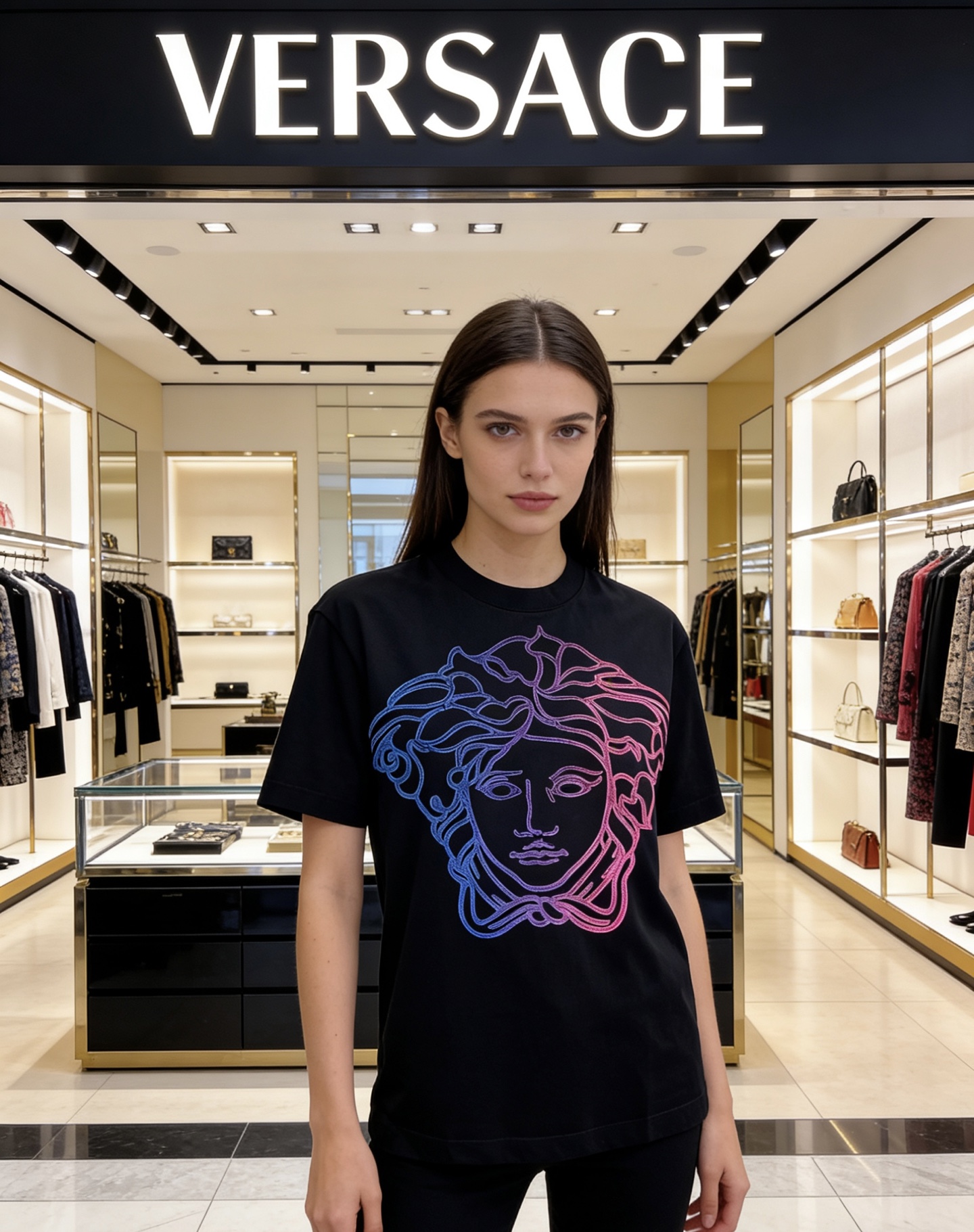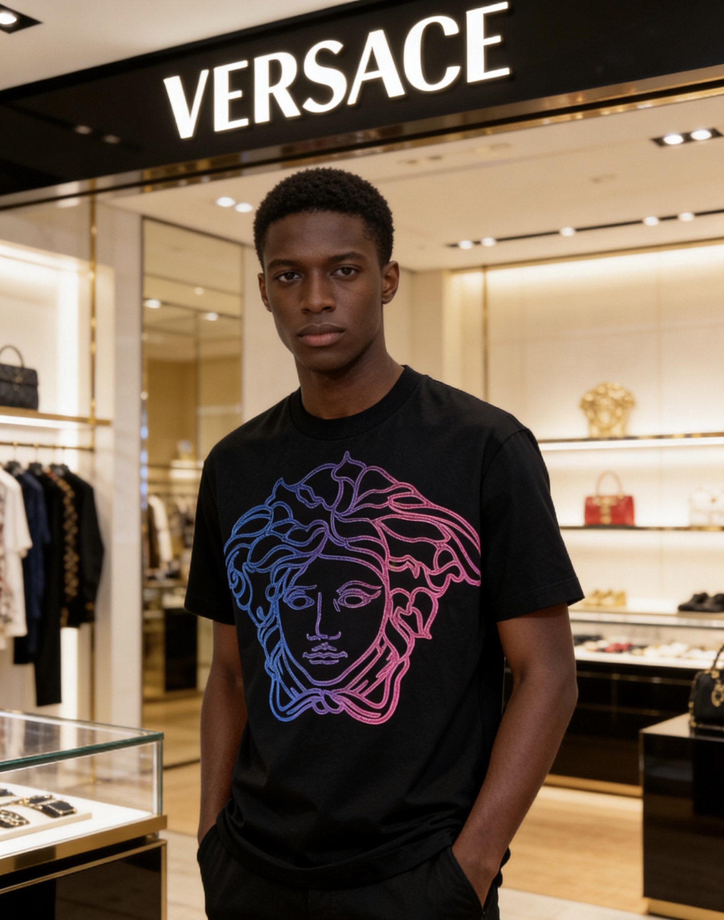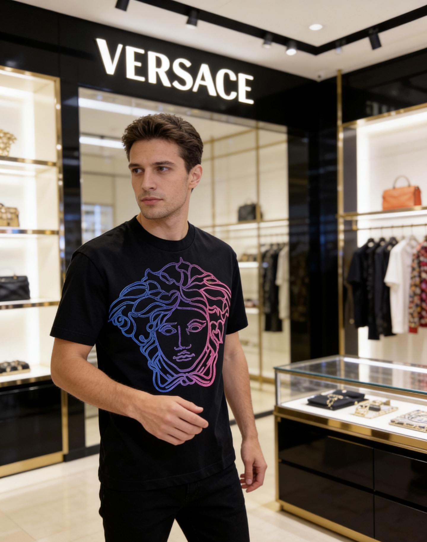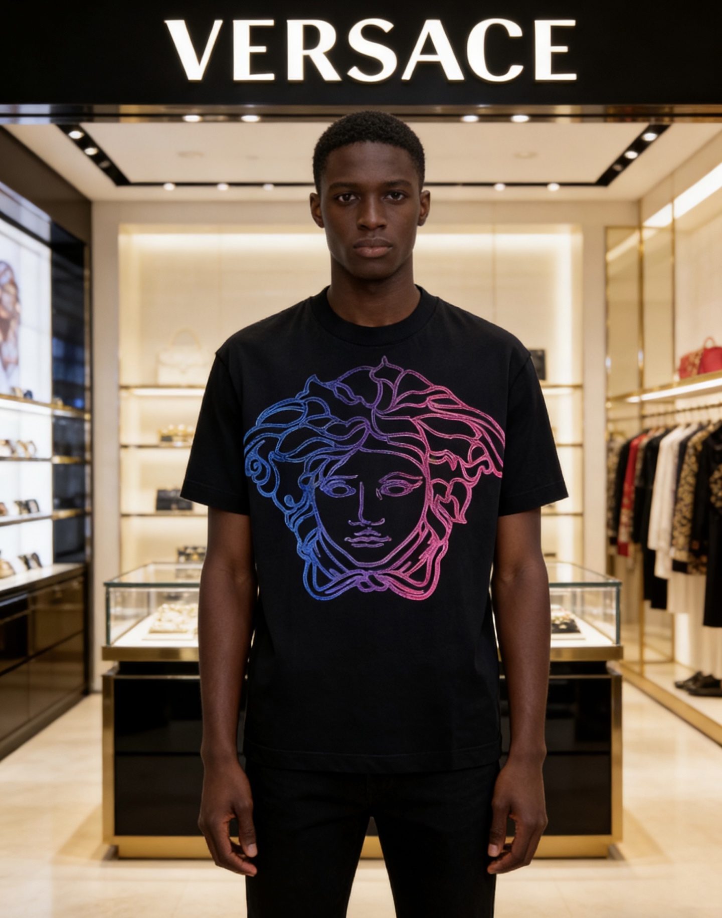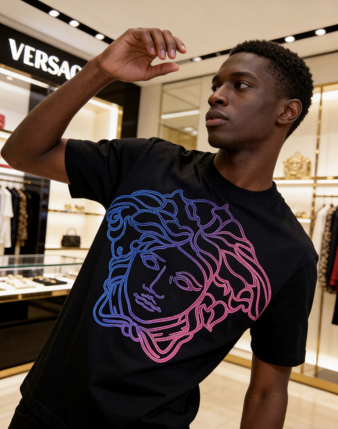 這款衣服是AAAAA 1:1 質量(非常棒). 使用了和原版一模一樣的材料. 商標部分也保持了和范思哲/Versace一樣. 圖片拍攝是實物衣服拍攝, 您所收到的實物保證和我們圖片一模一樣.