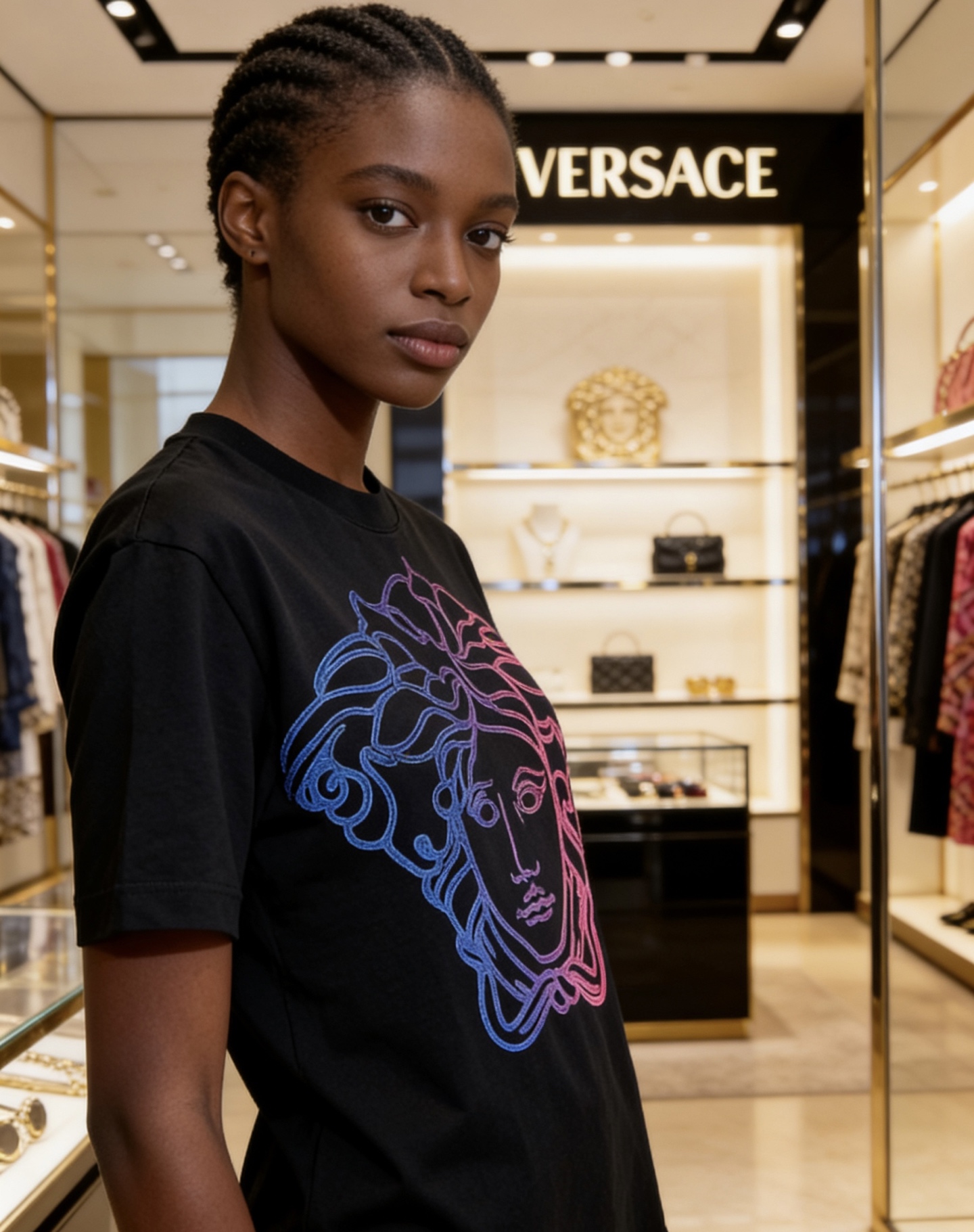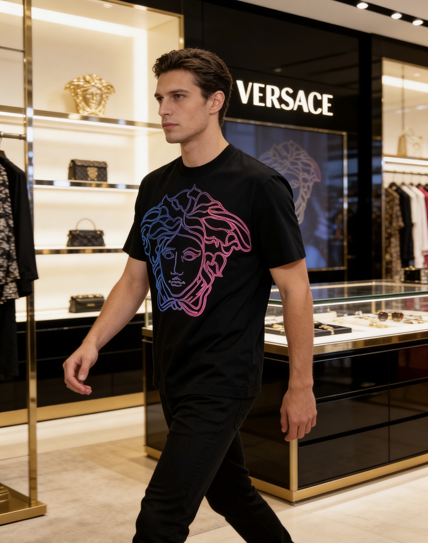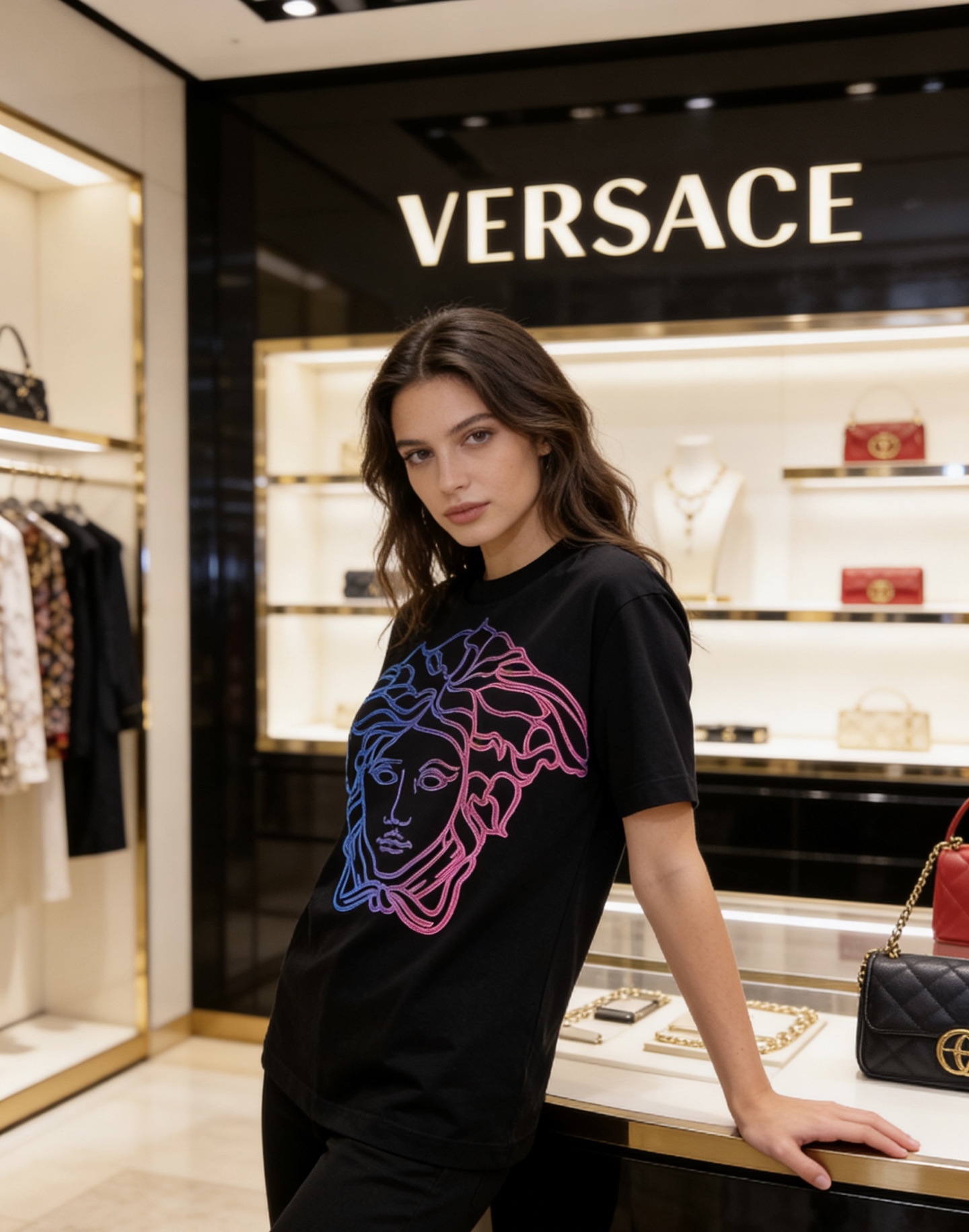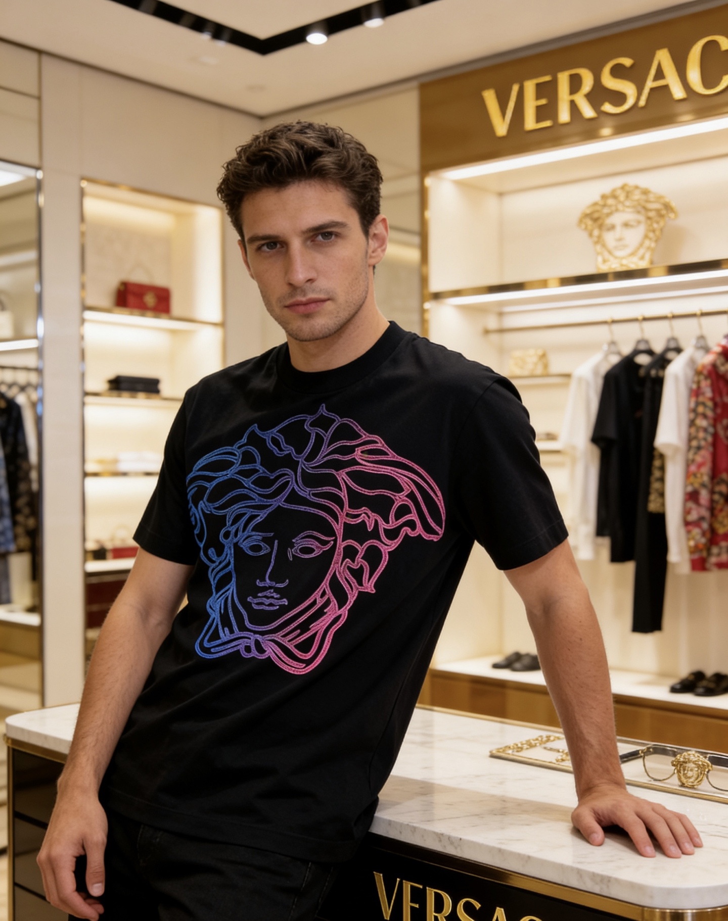 這款衣服是AAAAA 1:1 質量(非常棒). 使用了和原版一模一樣的材料. 商標部分也保持了和范思哲/Versace一樣. 圖片拍攝是實物衣服拍攝, 您所收到的實物保證和我們圖片一模一樣.
