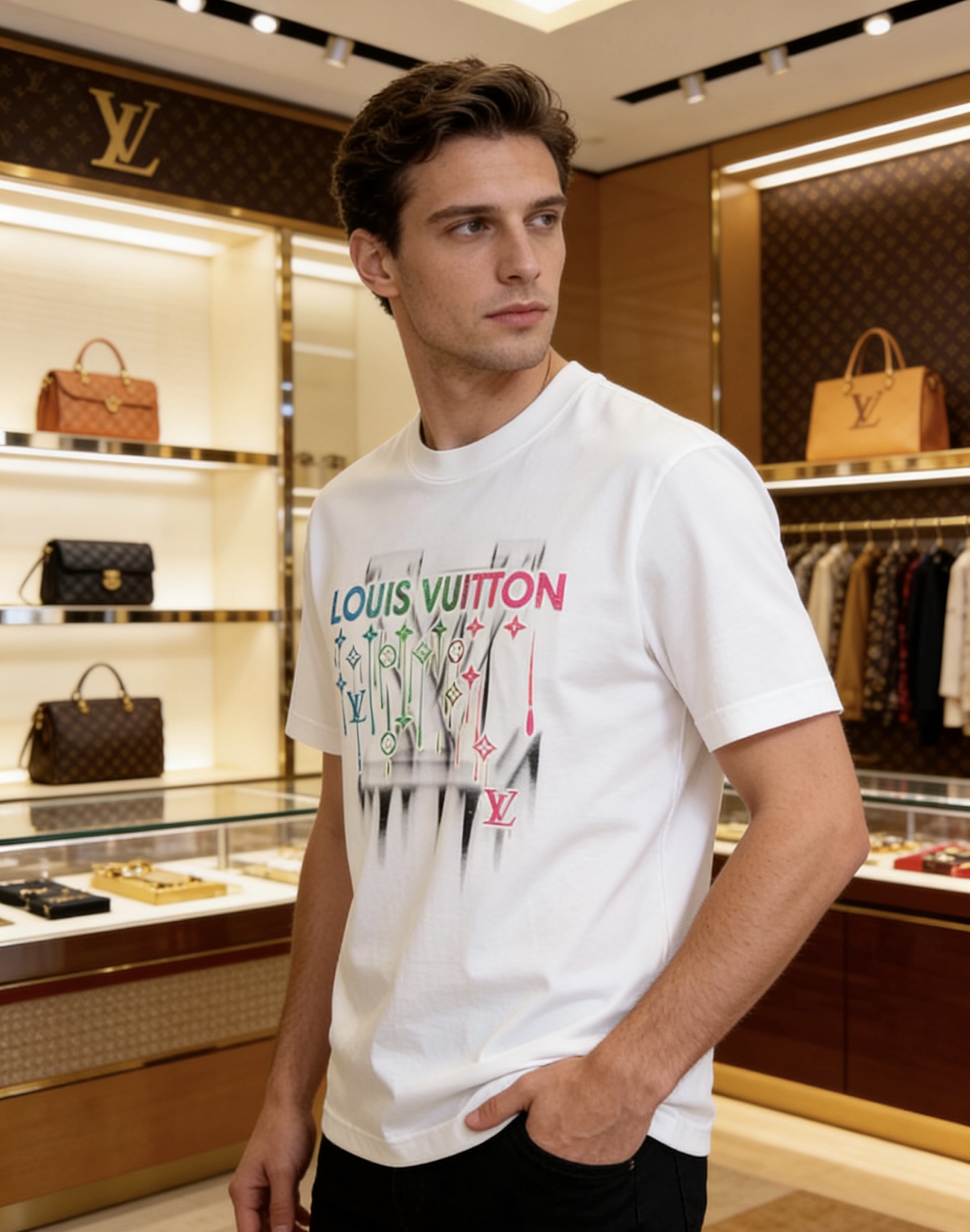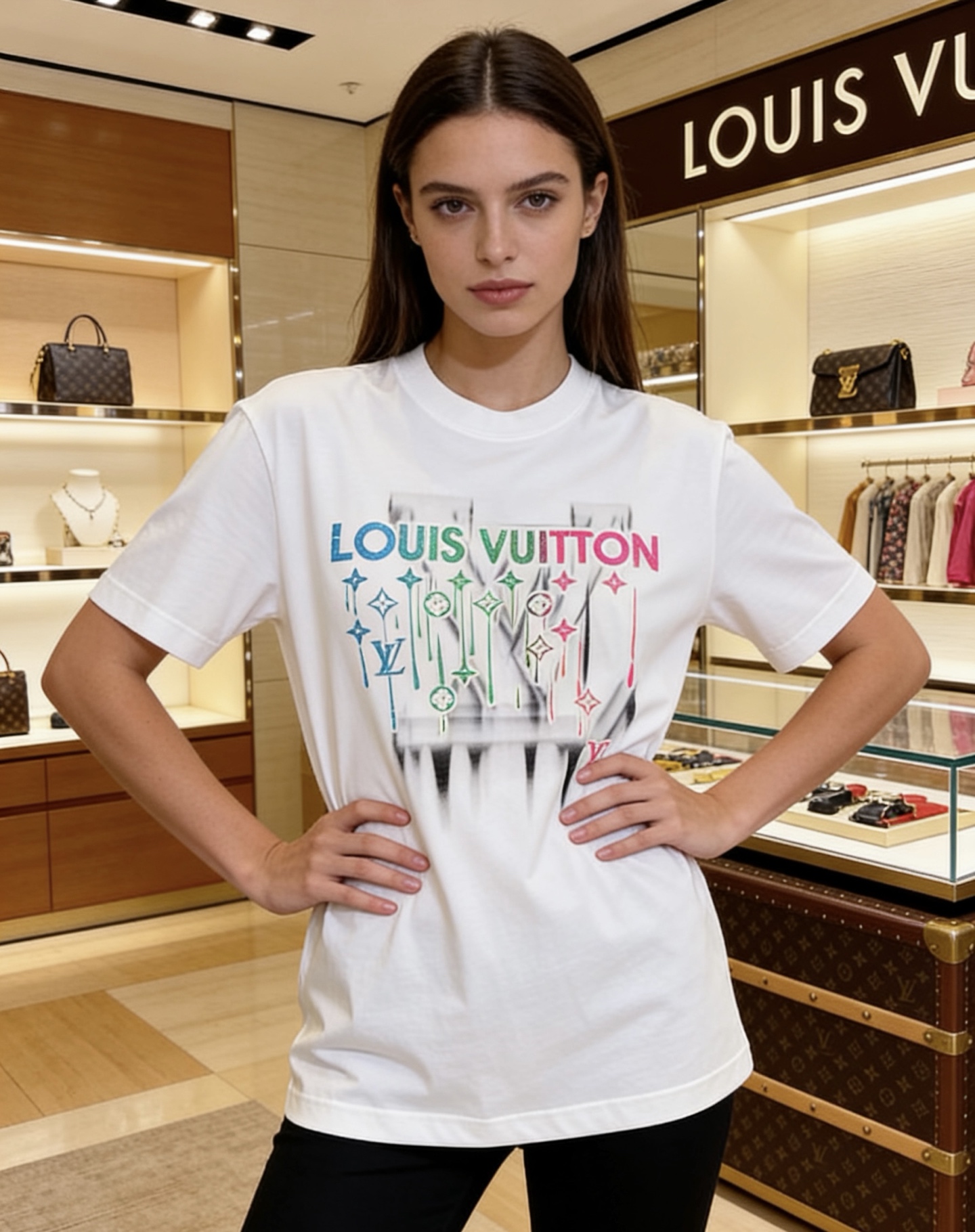 這款衣服是AAAAA 1:1 質量(非常棒). 使用了和原版一模一樣的材料. 商標部分也保持了和路易威登/Louis Vuitton一樣. 圖片拍攝是實物衣服拍攝, 您所收到的實物保證和我們圖片一模一樣.