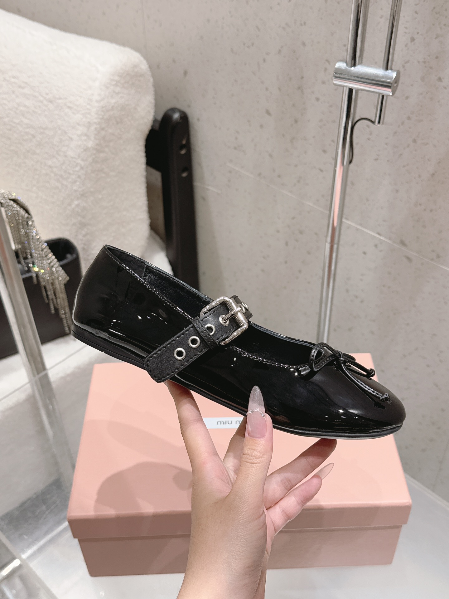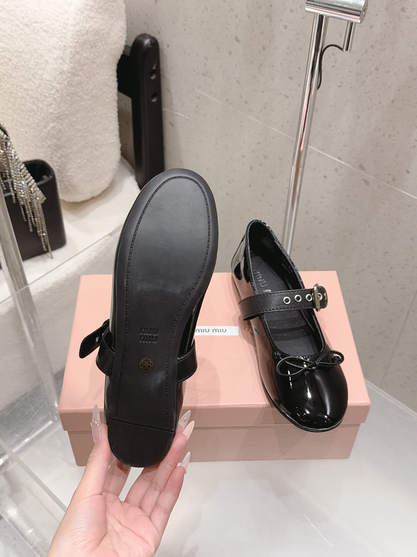 這款鞋子是AAAAA 1:1 質量(非常棒). 使用了和原版一模一樣的材料. 商標部分也保持了和繆繆/Miu Miu一樣. 圖片拍攝是實物鞋子拍攝, 您所收到的實物保證和我們圖片一模一樣.