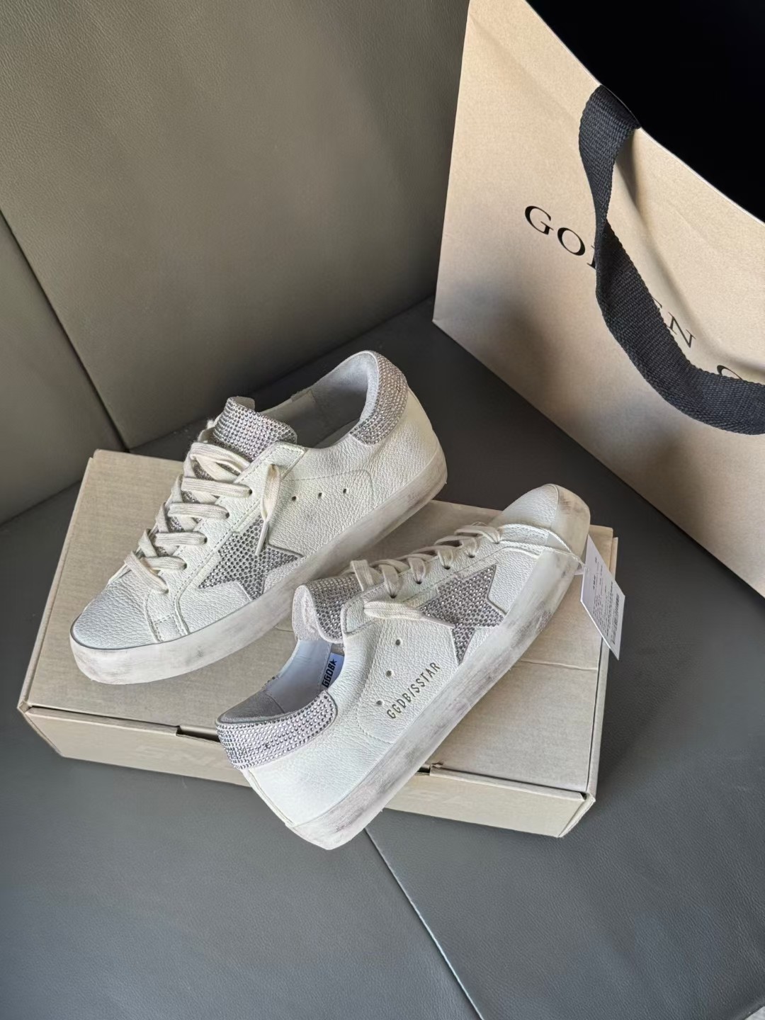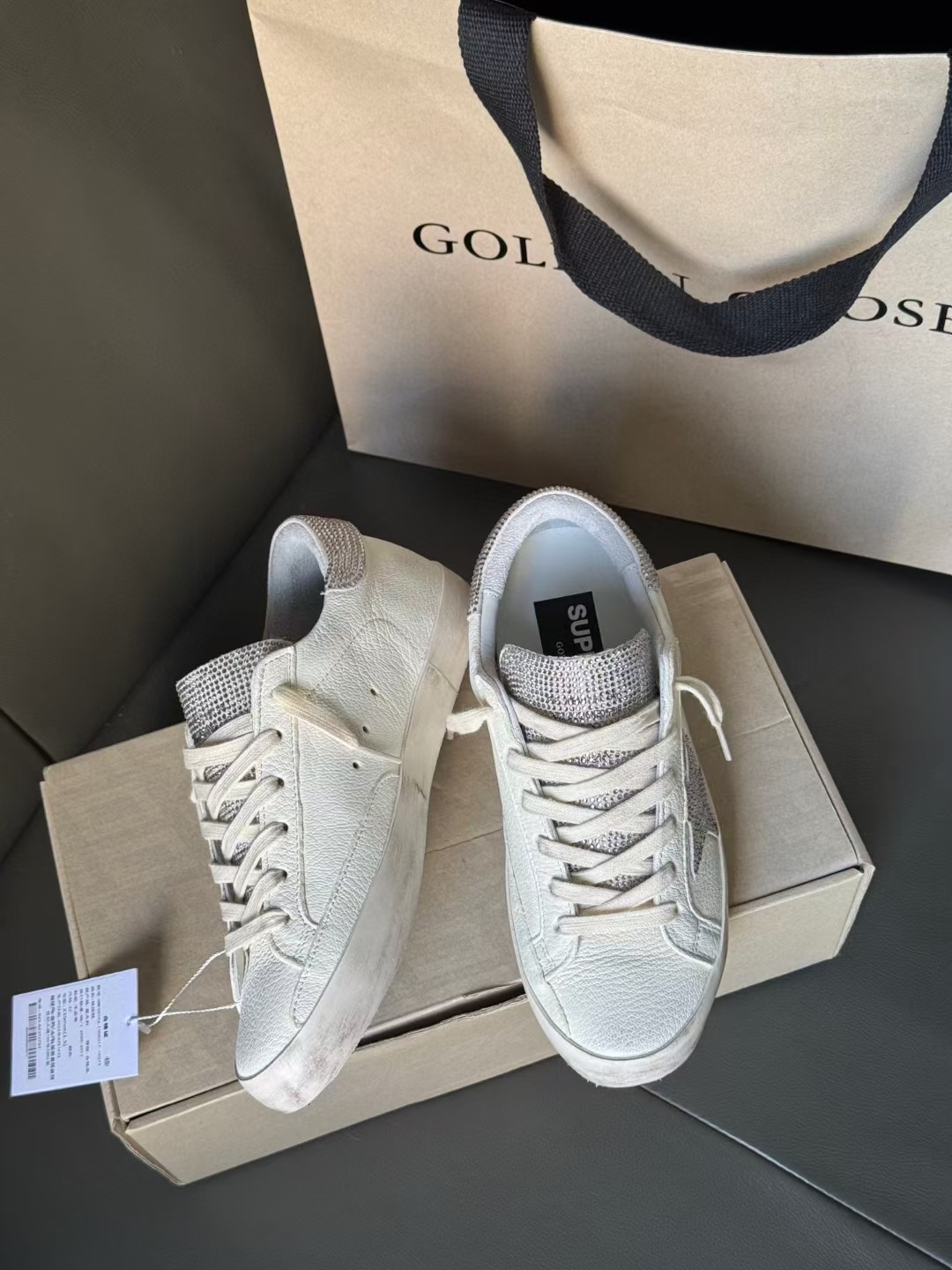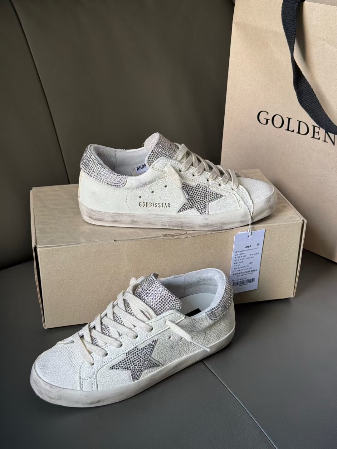 這款鞋子是AAAAA 1:1 質量(非常棒). 使用了和原版一模一樣的材料. 商標部分也保持了和Golden Goose一樣. 圖片拍攝是實物鞋子拍攝, 您所收到的實物保證和我們圖片一模一樣.