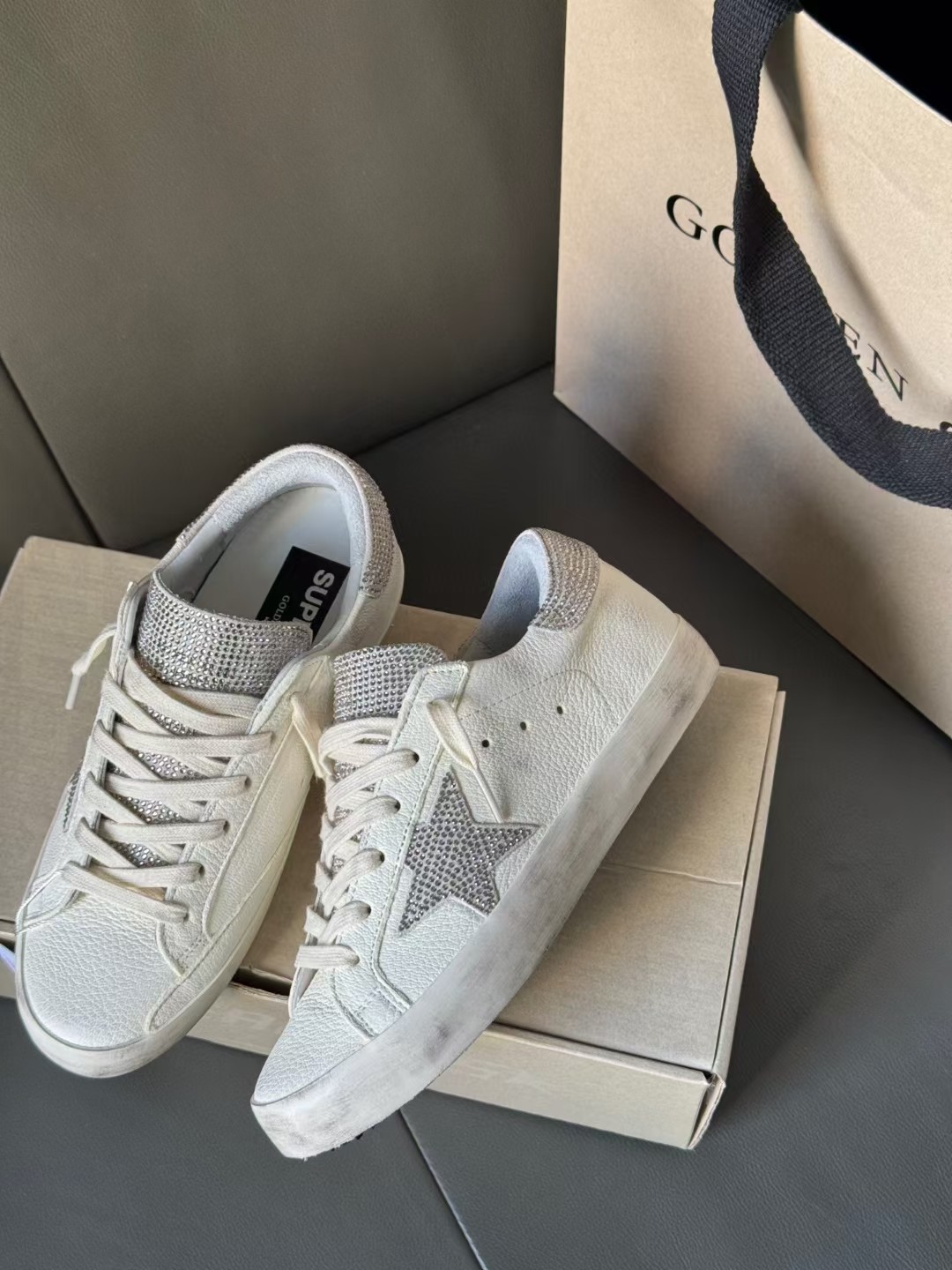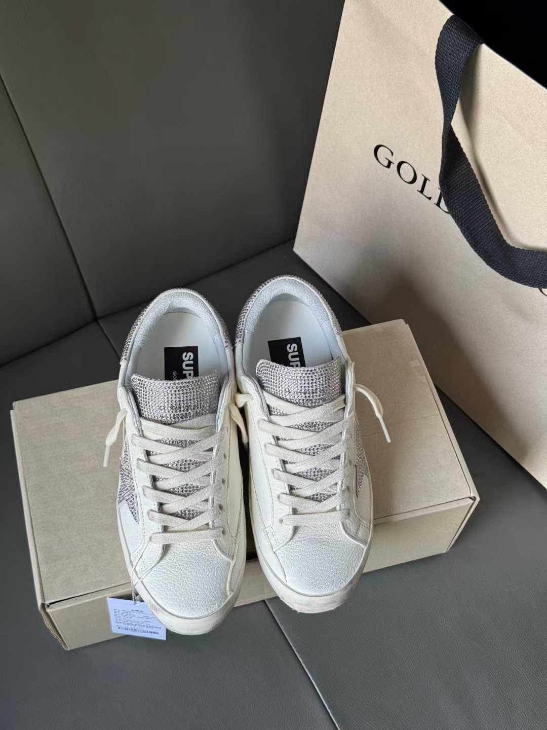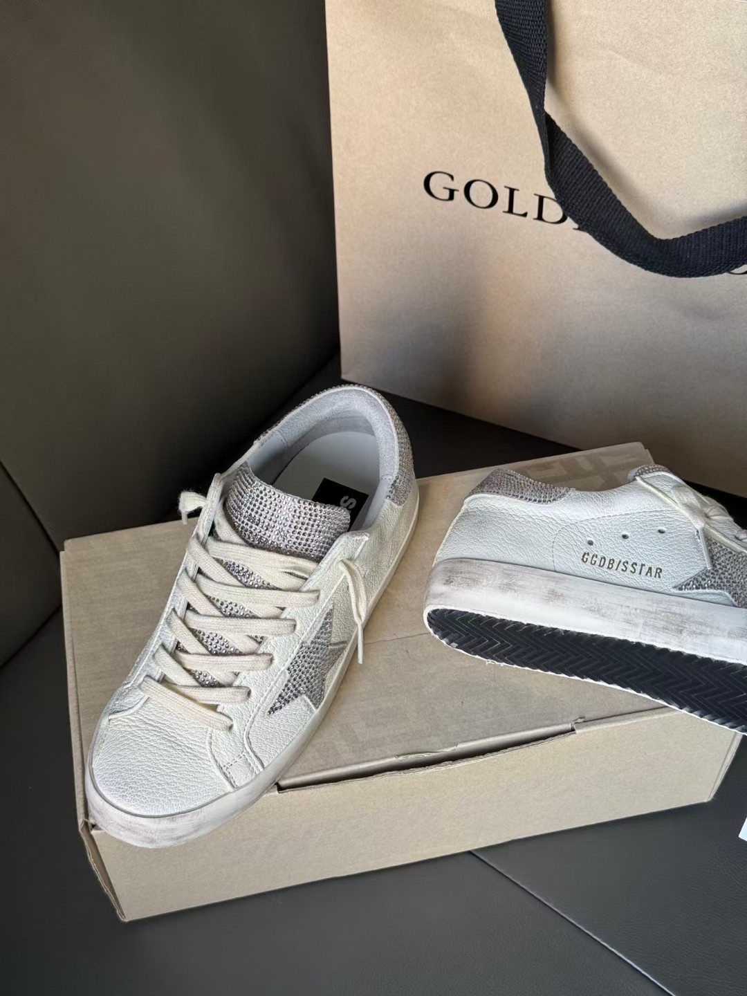 這款鞋子是AAAAA 1:1 質量(非常棒). 使用了和原版一模一樣的材料. 商標部分也保持了和Golden Goose一樣. 圖片拍攝是實物鞋子拍攝, 您所收到的實物保證和我們圖片一模一樣.