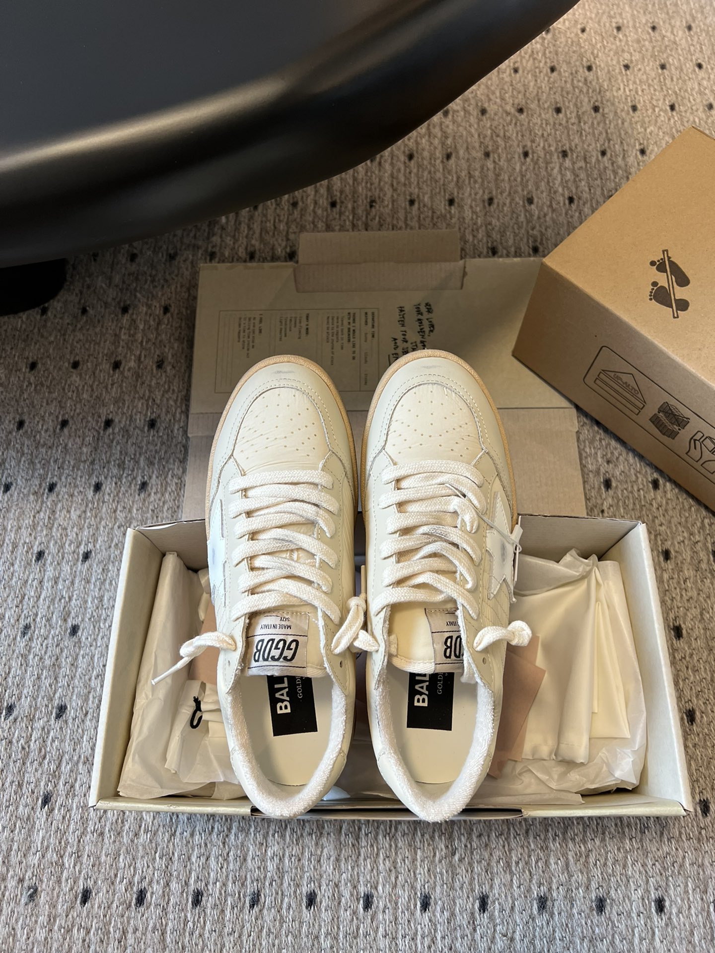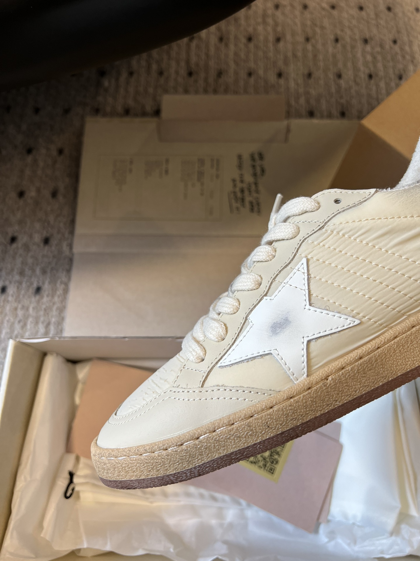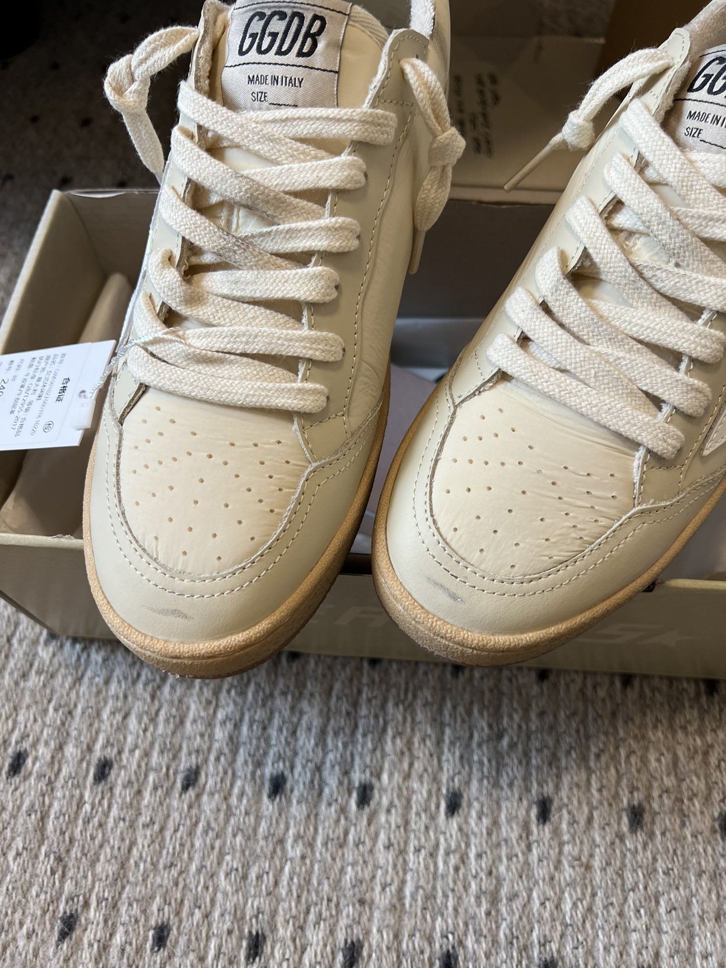 這款鞋子是AAAAA 1:1 質量(非常棒). 使用了和原版一模一樣的材料. 商標部分也保持了和Golden Goose一樣. 圖片拍攝是實物鞋子拍攝, 您所收到的實物保證和我們圖片一模一樣.