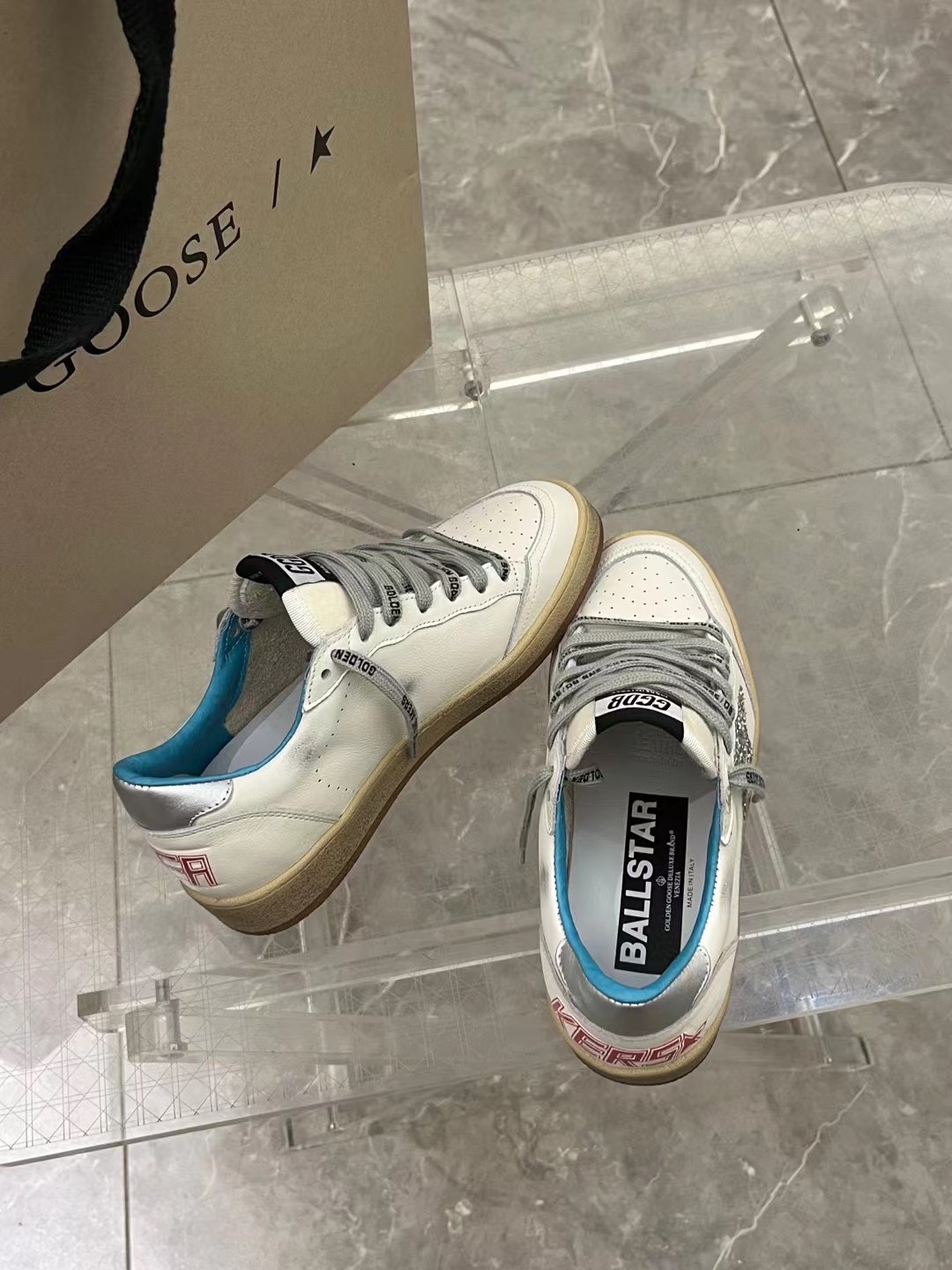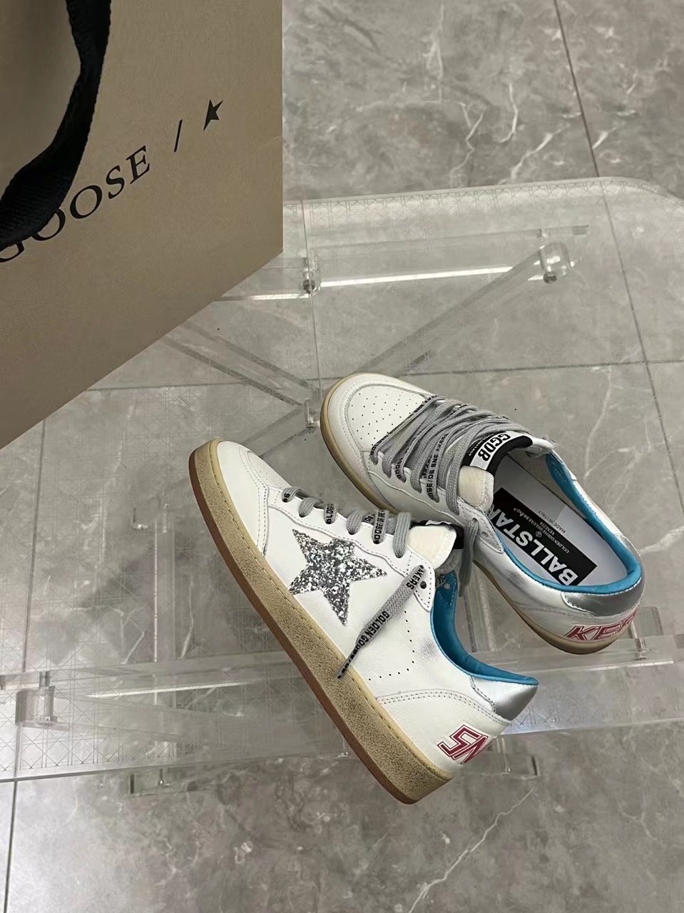 這款鞋子是AAAAA 1:1 質量(非常棒). 使用了和原版一模一樣的材料. 商標部分也保持了和Golden Goose一樣. 圖片拍攝是實物鞋子拍攝, 您所收到的實物保證和我們圖片一模一樣.
