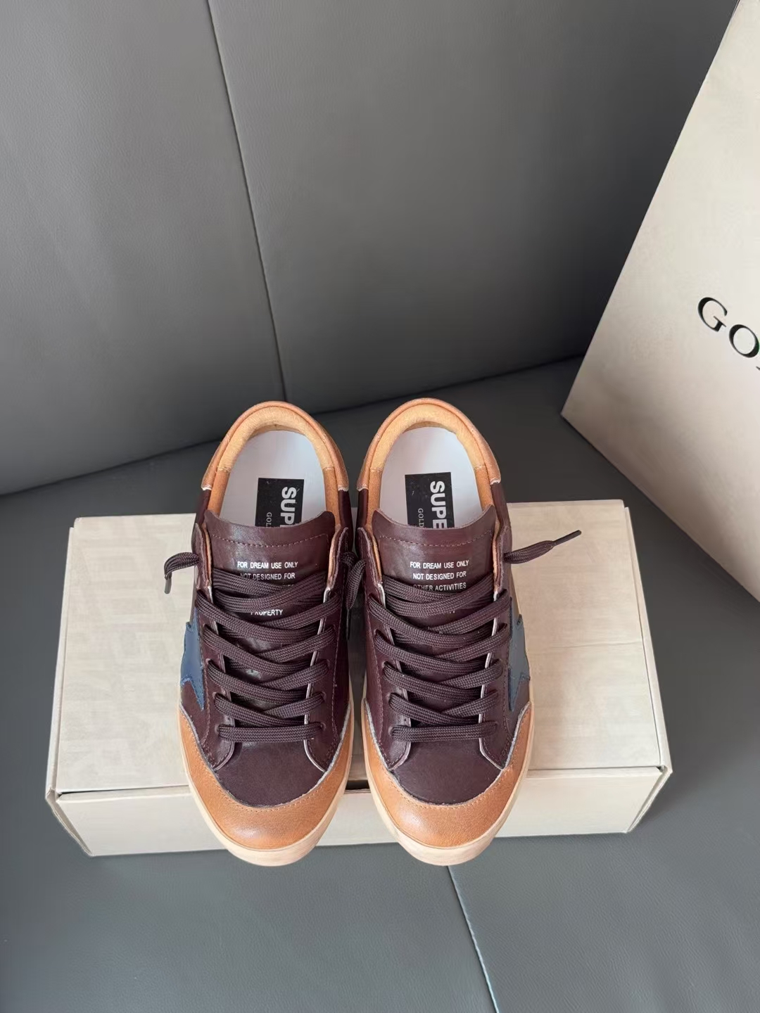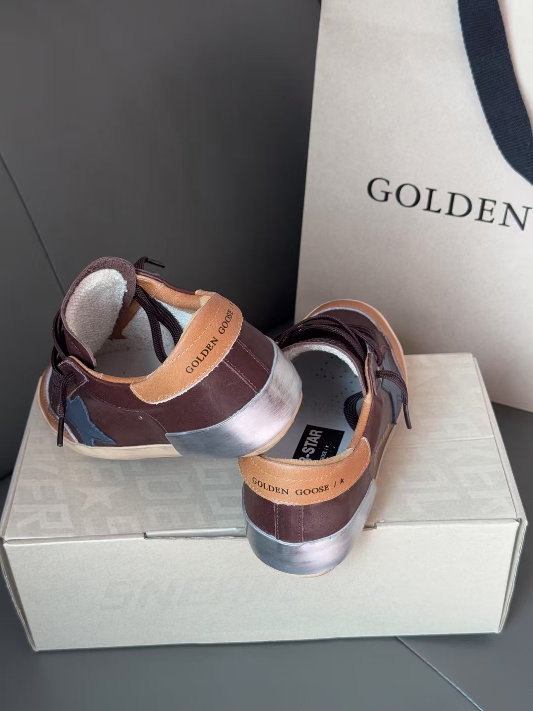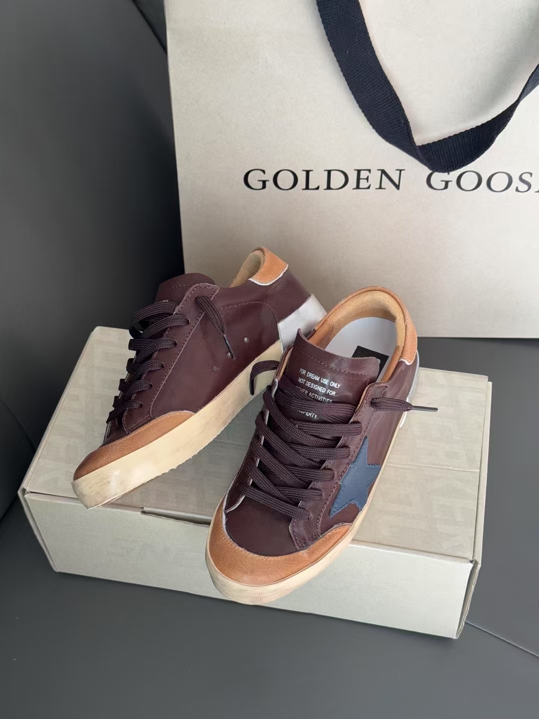 這款鞋子是AAAAA 1:1 質量(非常棒). 使用了和原版一模一樣的材料. 商標部分也保持了和Golden Goose一樣. 圖片拍攝是實物鞋子拍攝, 您所收到的實物保證和我們圖片一模一樣.