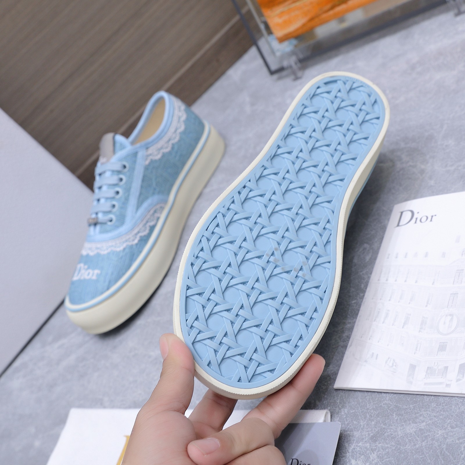 這款鞋子是AAAAA 1:1 質量(非常棒). 使用了和原版一模一樣的材料. 商標部分也保持了和迪奧/Dior一樣. 圖片拍攝是實物鞋子拍攝, 您所收到的實物保證和我們圖片一模一樣.