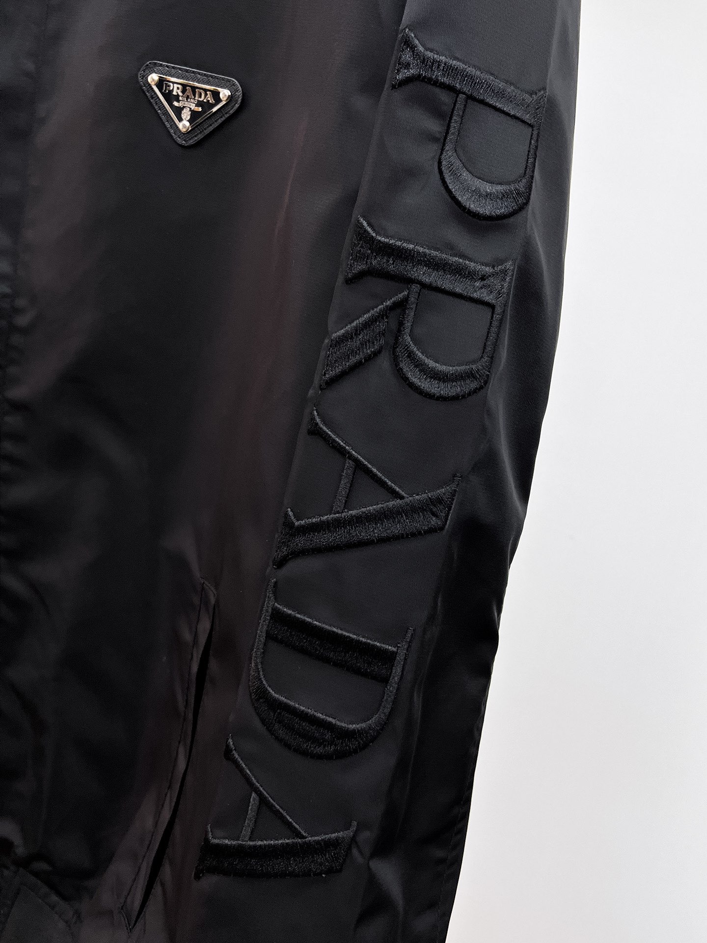 這款衣服是AAAAA 1:1 質量(非常棒). 使用了和原版一模一樣的材料. 商標部分也保持了和普拉達/Prada一樣. 圖片拍攝是實物衣服拍攝, 您所收到的實物保證和我們圖片一模一樣.
