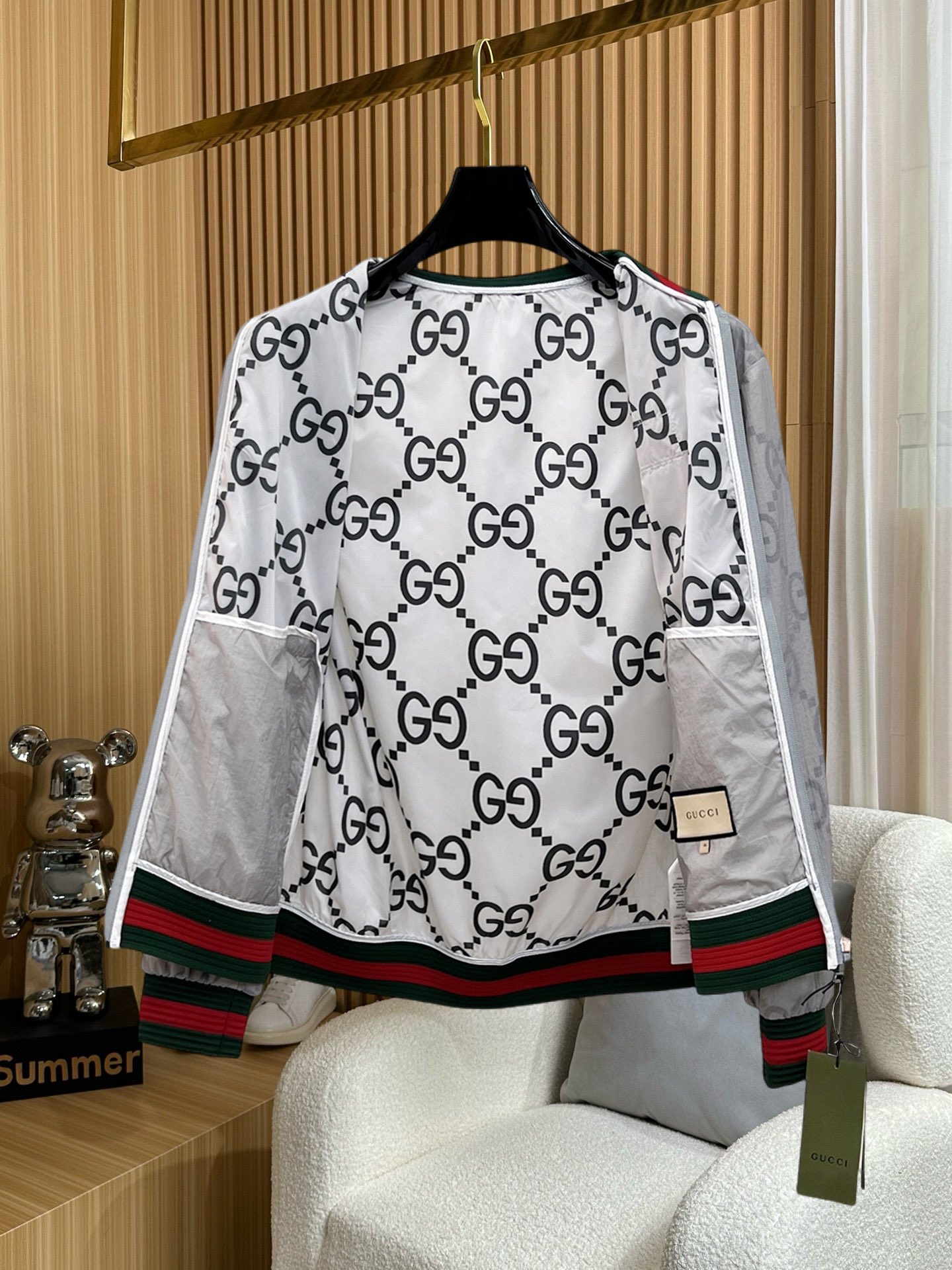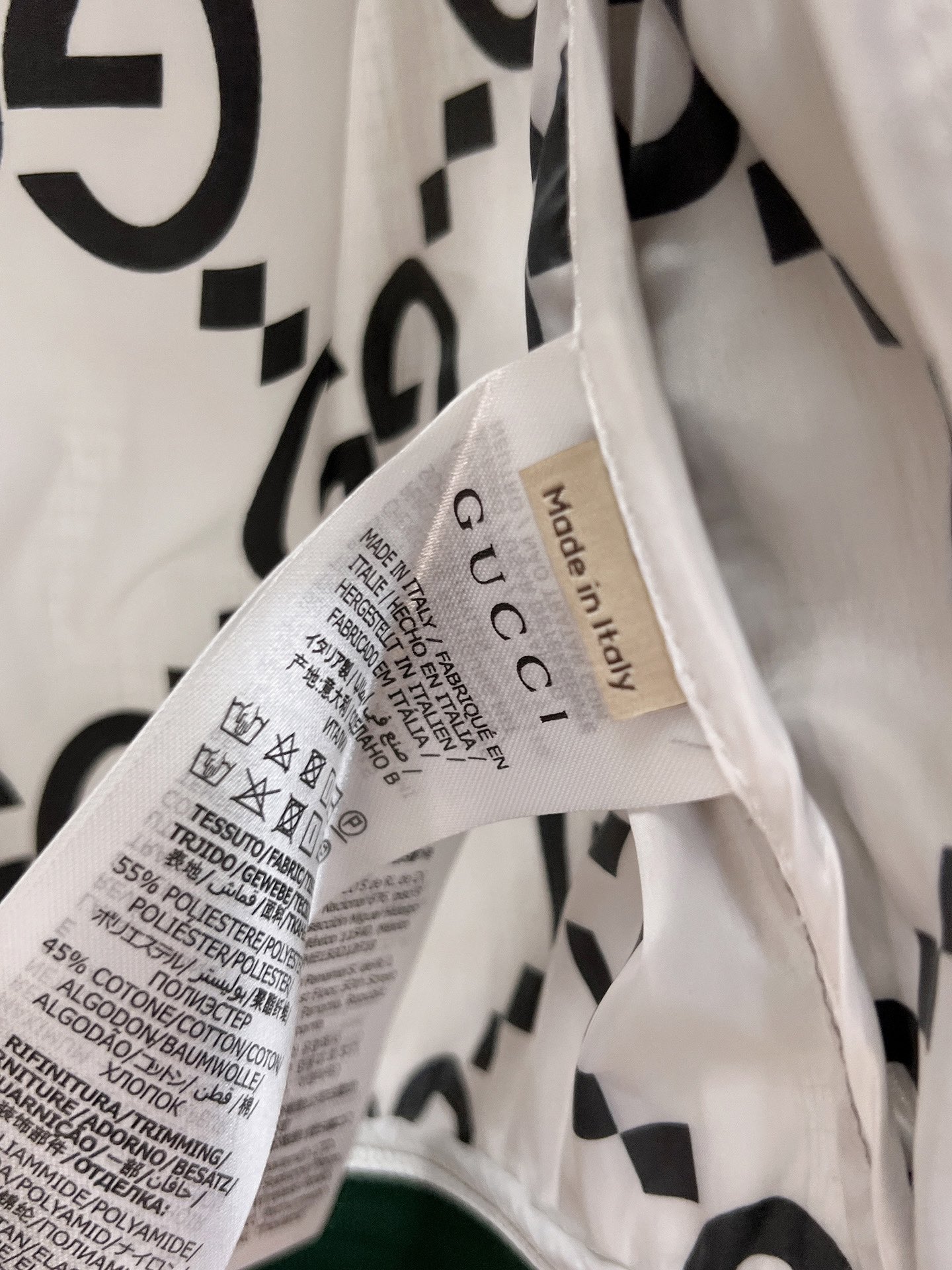這款衣服是AAAAA 1:1 質量(非常棒). 使用了和原版一模一樣的材料. 商標部分也保持了和古奇/Gucci一樣. 圖片拍攝是實物衣服拍攝, 您所收到的實物保證和我們圖片一模一樣.