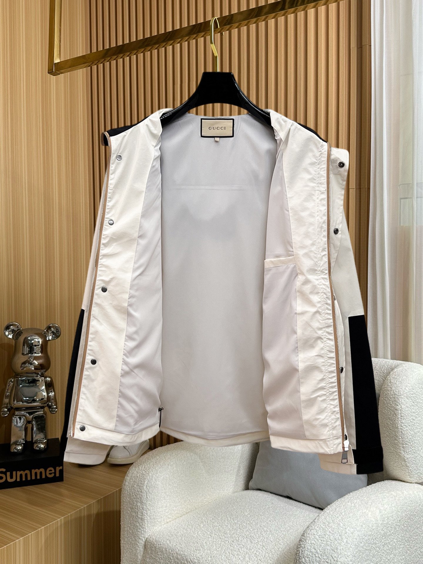 這款衣服是AAAAA 1:1 質量(非常棒). 使用了和原版一模一樣的材料. 商標部分也保持了和古奇/Gucci一樣. 圖片拍攝是實物衣服拍攝, 您所收到的實物保證和我們圖片一模一樣.