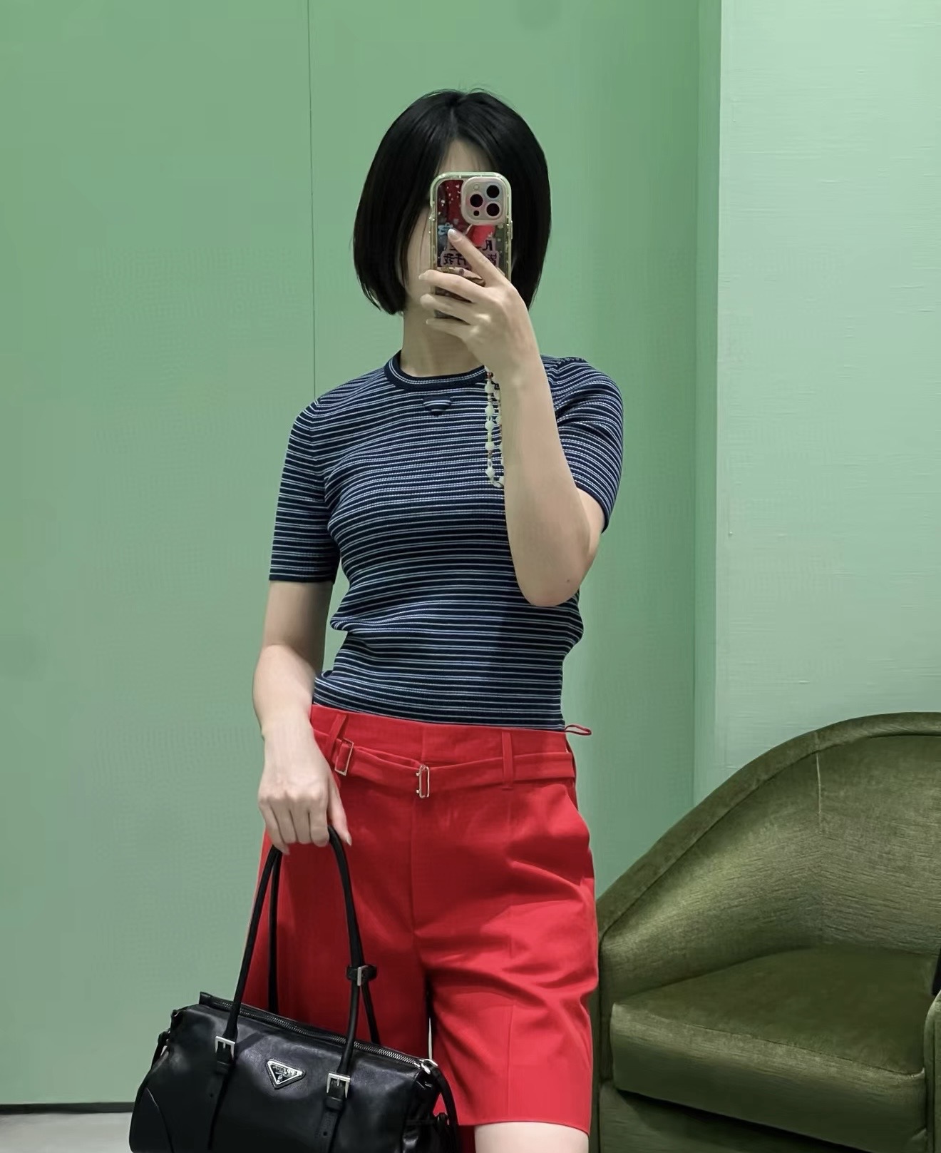 這款衣服是AAAAA 1:1 質量(非常棒). 使用了和原版一模一樣的材料. 商標部分也保持了和普拉達/Prada一樣. 圖片拍攝是實物衣服拍攝, 您所收到的實物保證和我們圖片一模一樣.