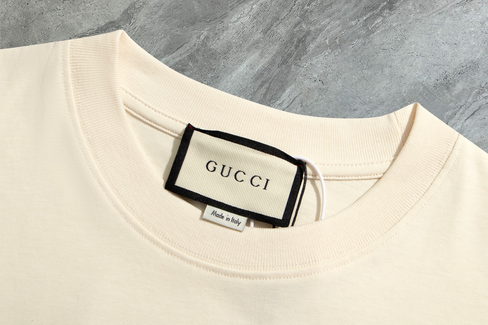 這款衣服是AAAAA 1:1 質量(非常棒). 使用了和原版一模一樣的材料. 商標部分也保持了和古奇/Gucci一樣. 圖片拍攝是實物衣服拍攝, 您所收到的實物保證和我們圖片一模一樣.