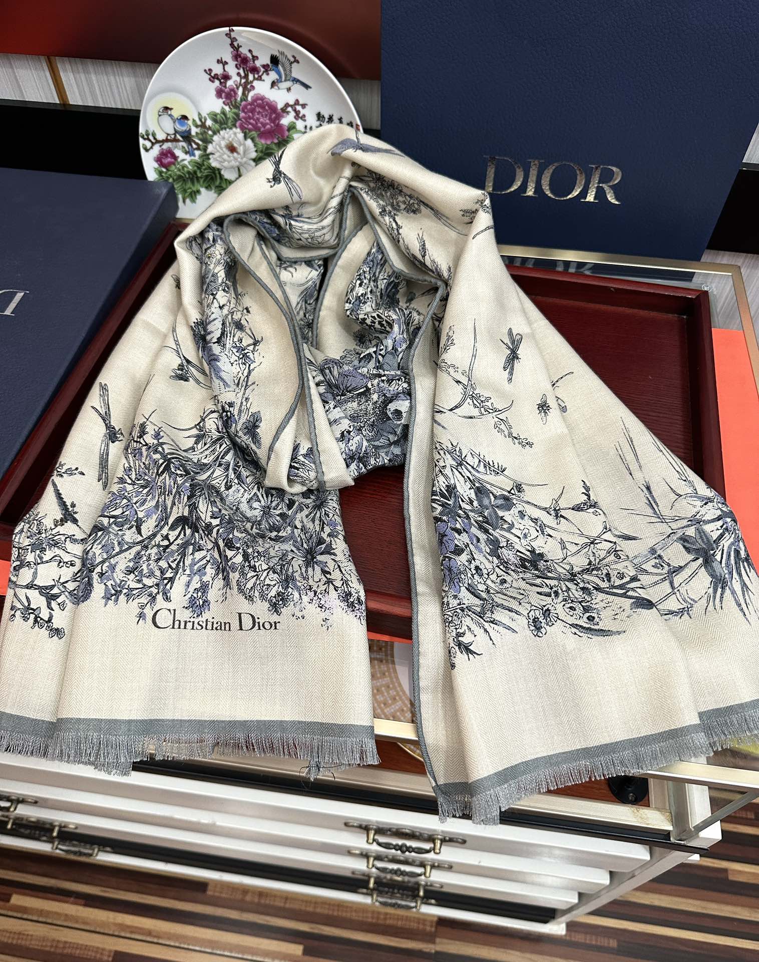 這款圍巾是AAAAA 1:1 質量(非常棒). 使用了和原版一模一樣的材料. 商標部分也保持了和迪奧/Dior一樣. 圖片拍攝是實物圍巾拍攝, 您所收到的實物保證和我們圖片一模一樣.