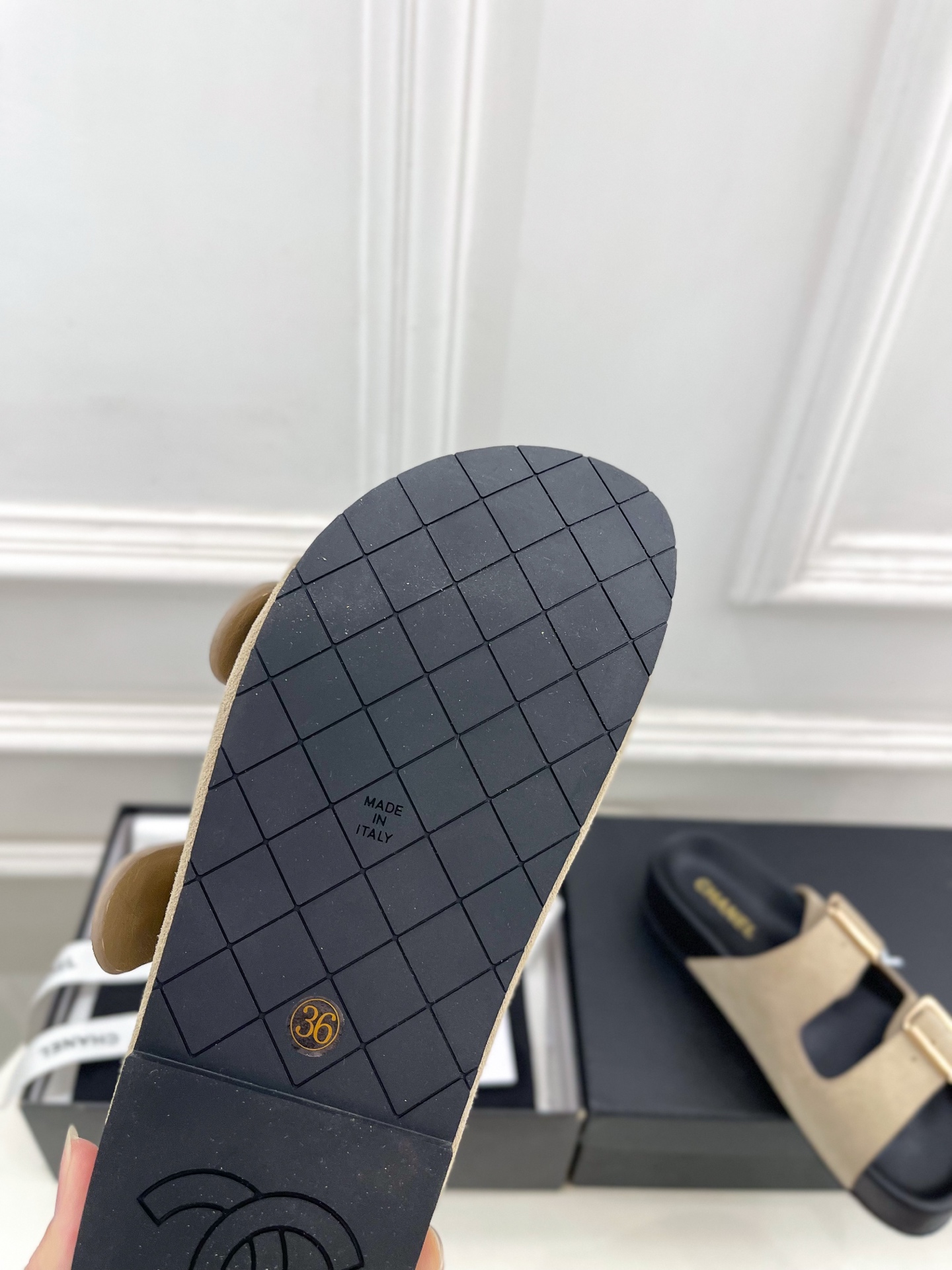 這款鞋子是AAAAA 1:1 質量(非常棒). 使用了和原版一模一樣的材料. 商標部分也保持了和香奈兒/Chanel一樣. 圖片拍攝是實物鞋子拍攝, 您所收到的實物保證和我們圖片一模一樣.