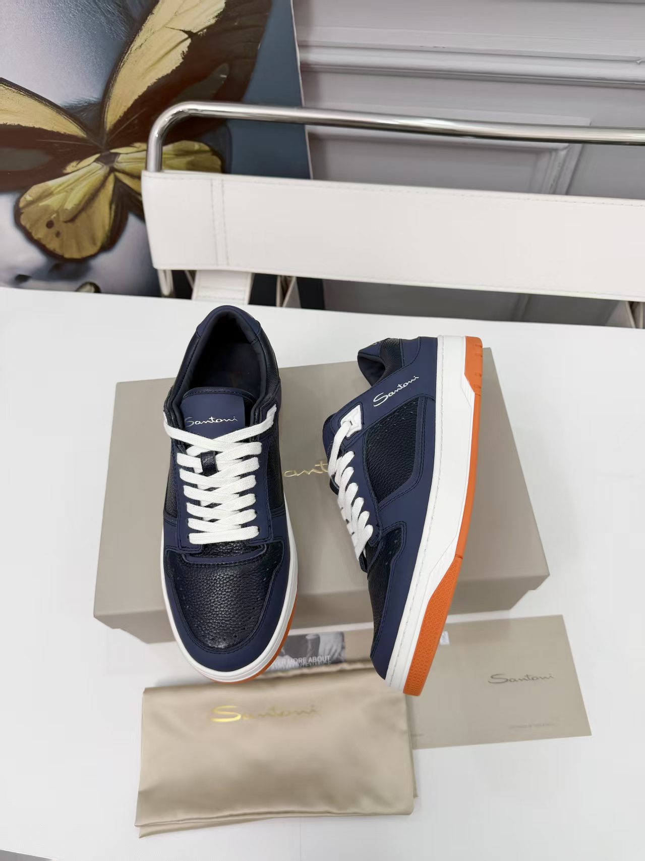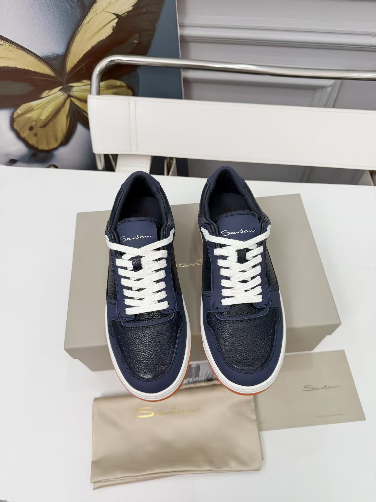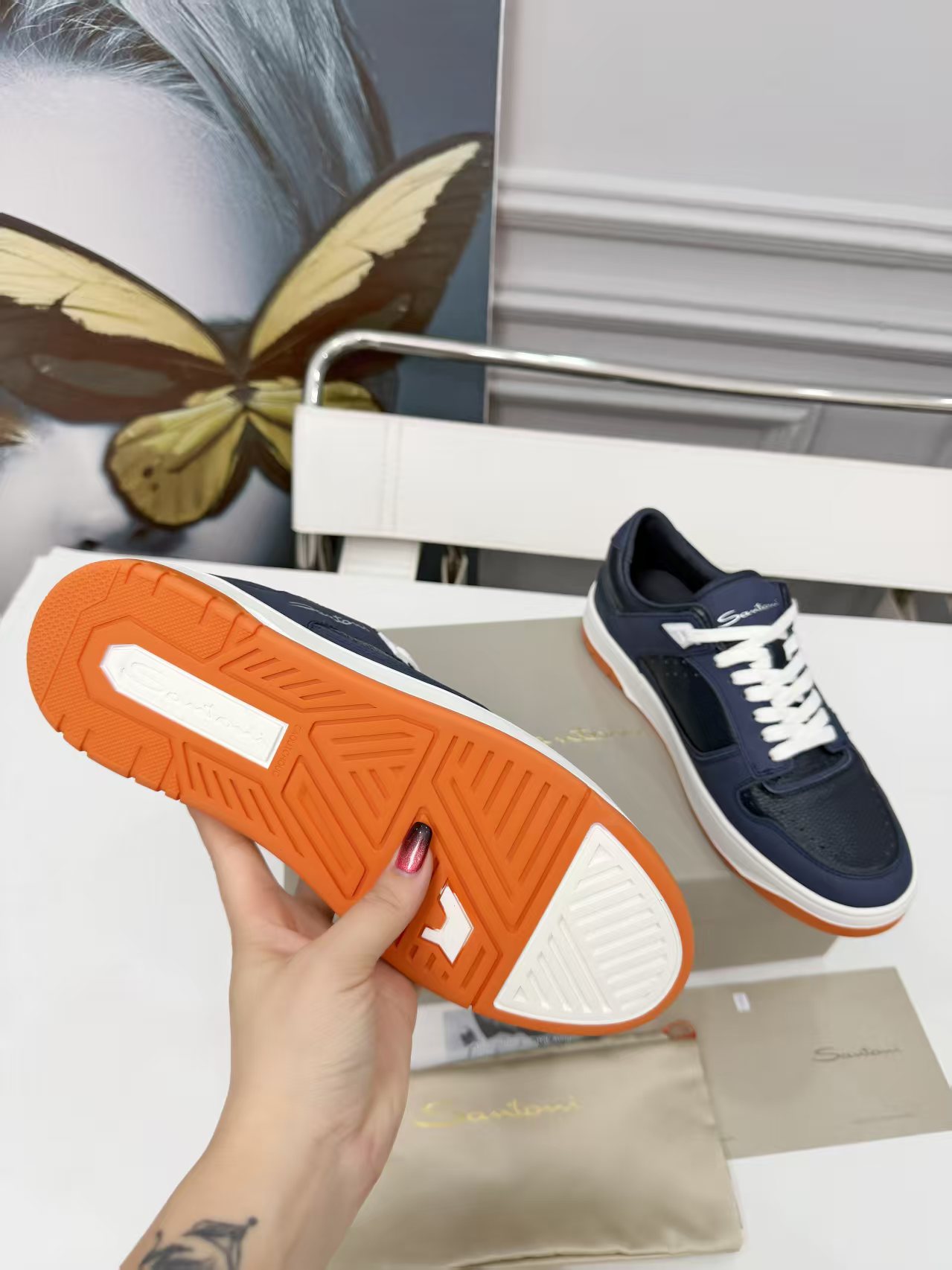 這款鞋子是AAAAA 1:1 質量(非常棒). 使用了和原版一模一樣的材料. 商標部分也保持了和Santoni一樣. 圖片拍攝是實物鞋子拍攝, 您所收到的實物保證和我們圖片一模一樣.