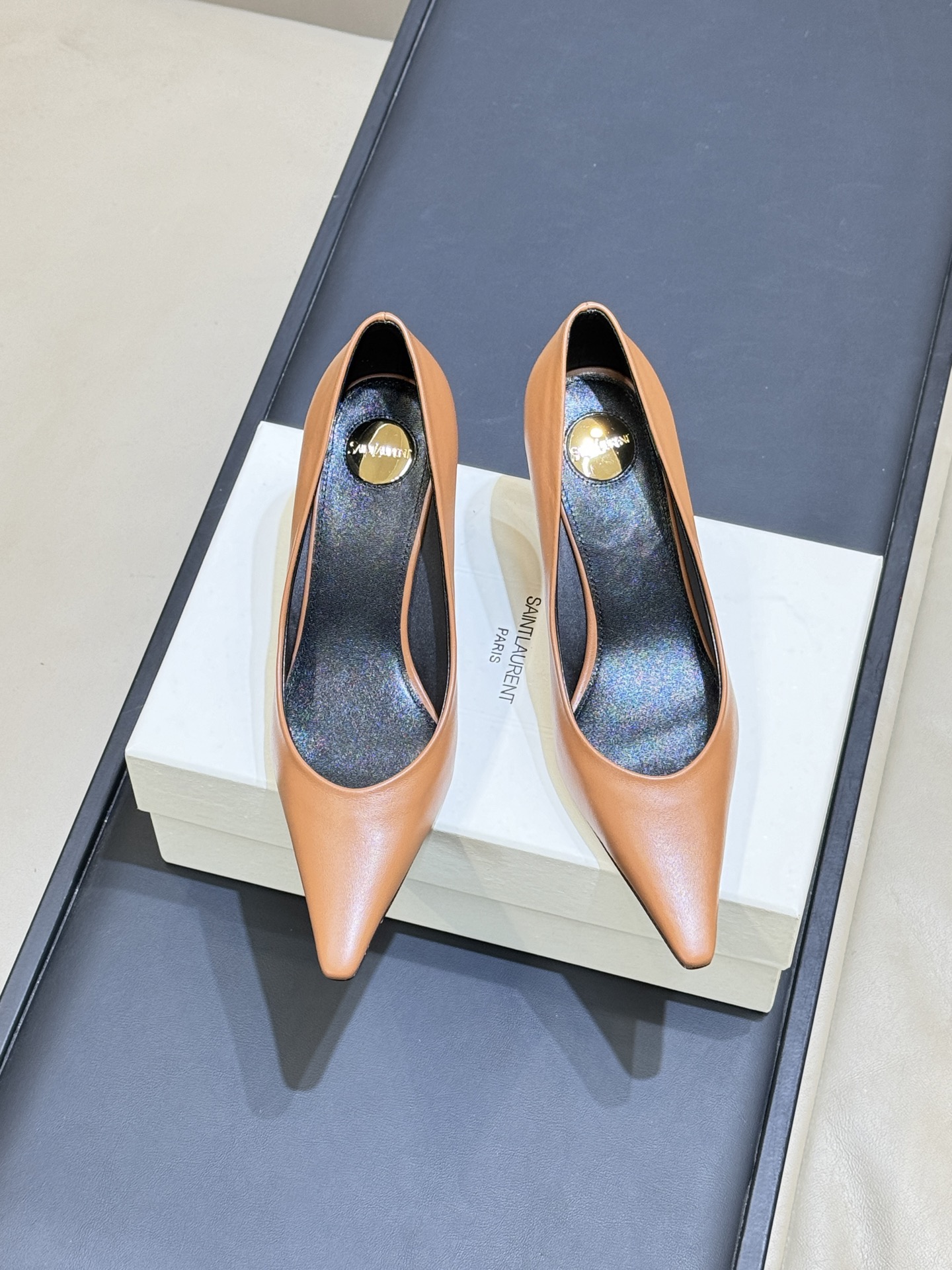 這款鞋子是AAAAA 1:1 質量(非常棒). 使用了和原版一模一樣的材料. 商標部分也保持了和聖羅蘭/Saint Laurent一樣. 圖片拍攝是實物鞋子拍攝, 您所收到的實物保證和我們圖片一模一樣.