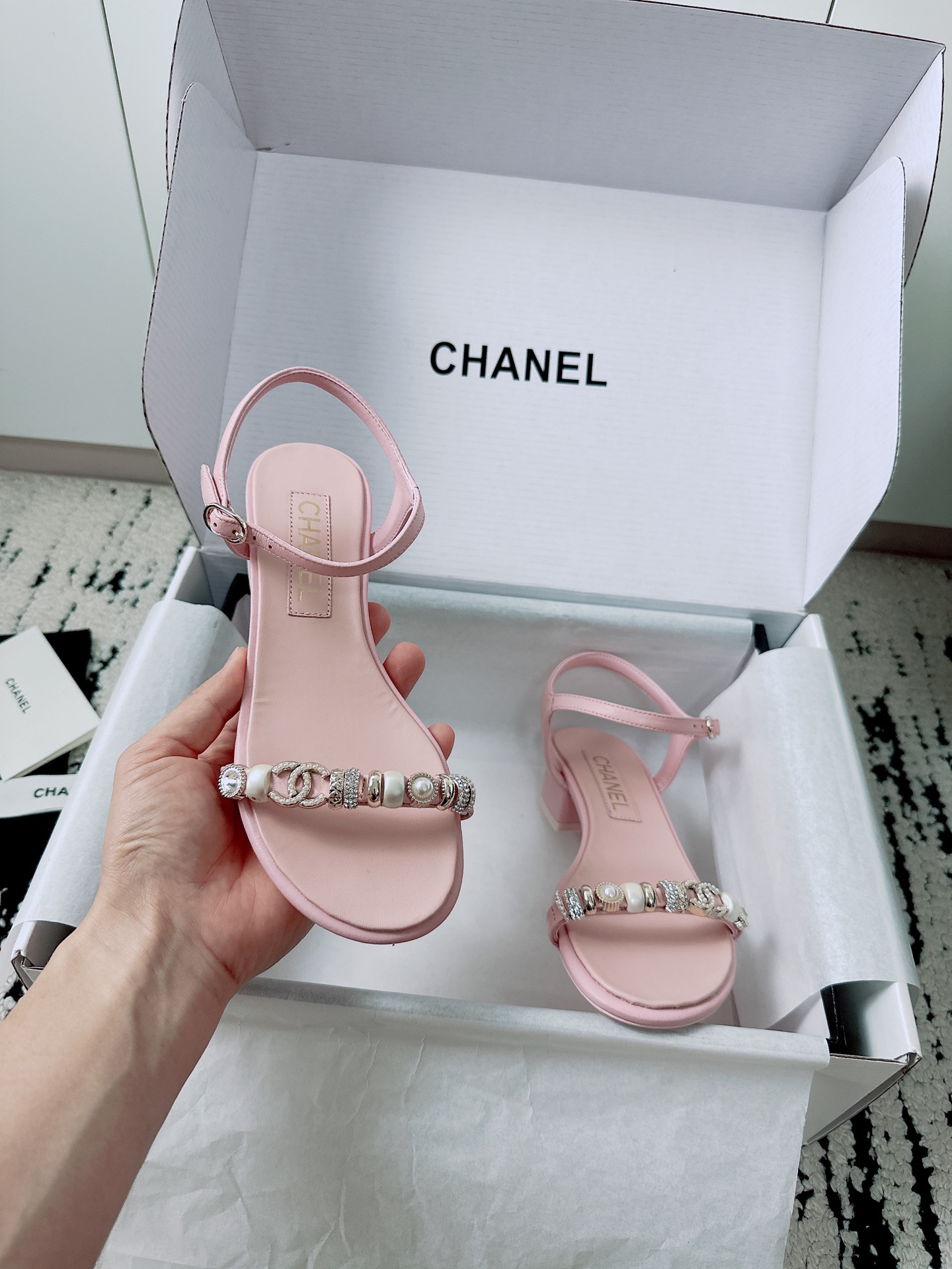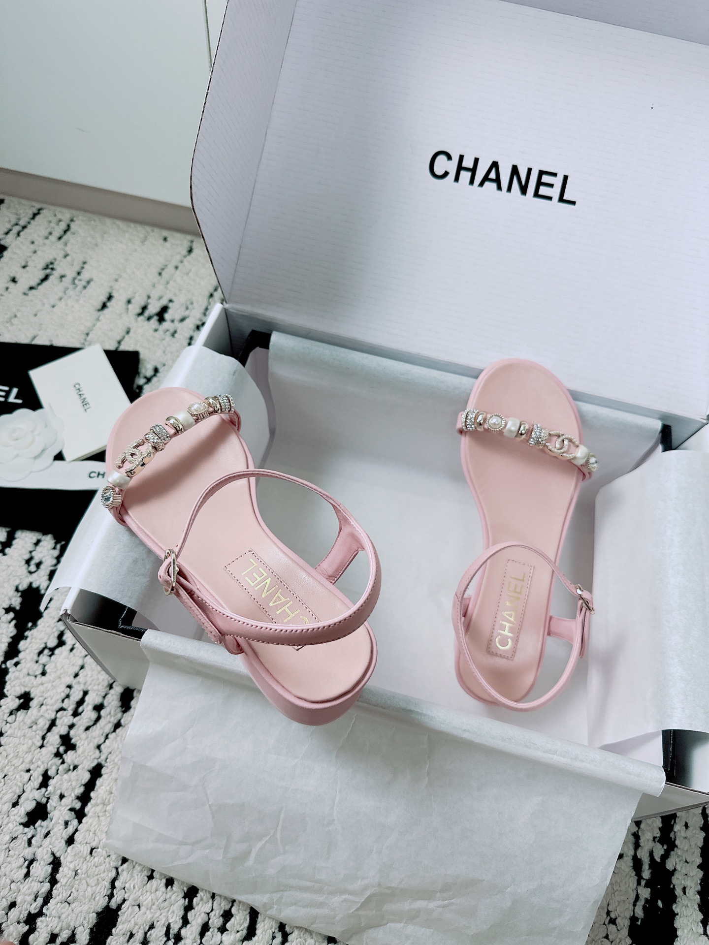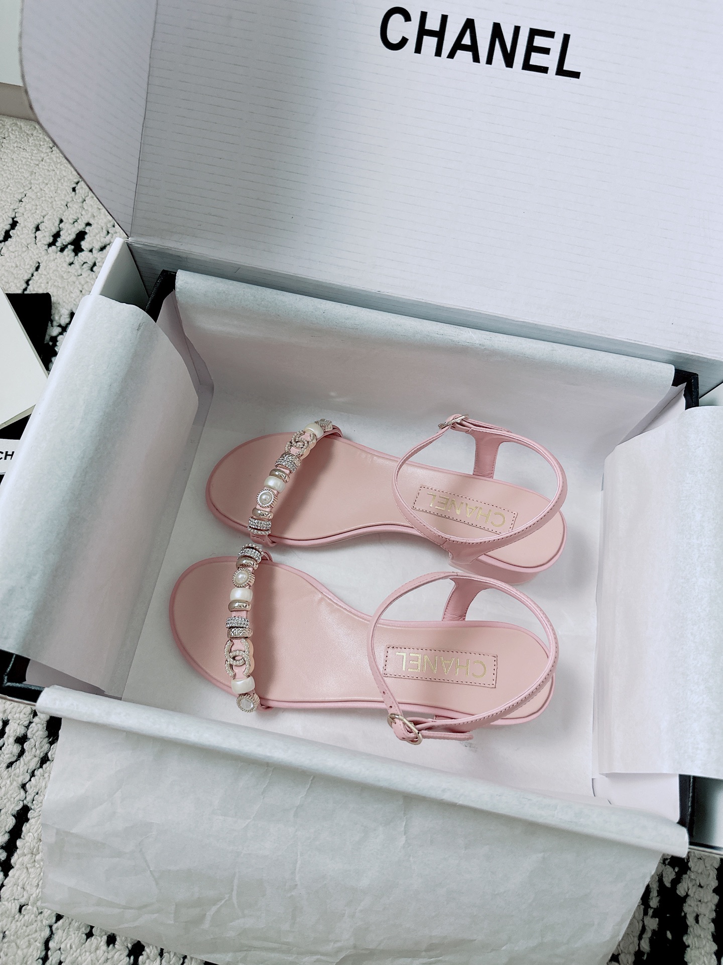 這款鞋子是AAAAA 1:1 質量(非常棒). 使用了和原版一模一樣的材料. 商標部分也保持了和香奈兒/Chanel一樣. 圖片拍攝是實物鞋子拍攝, 您所收到的實物保證和我們圖片一模一樣.