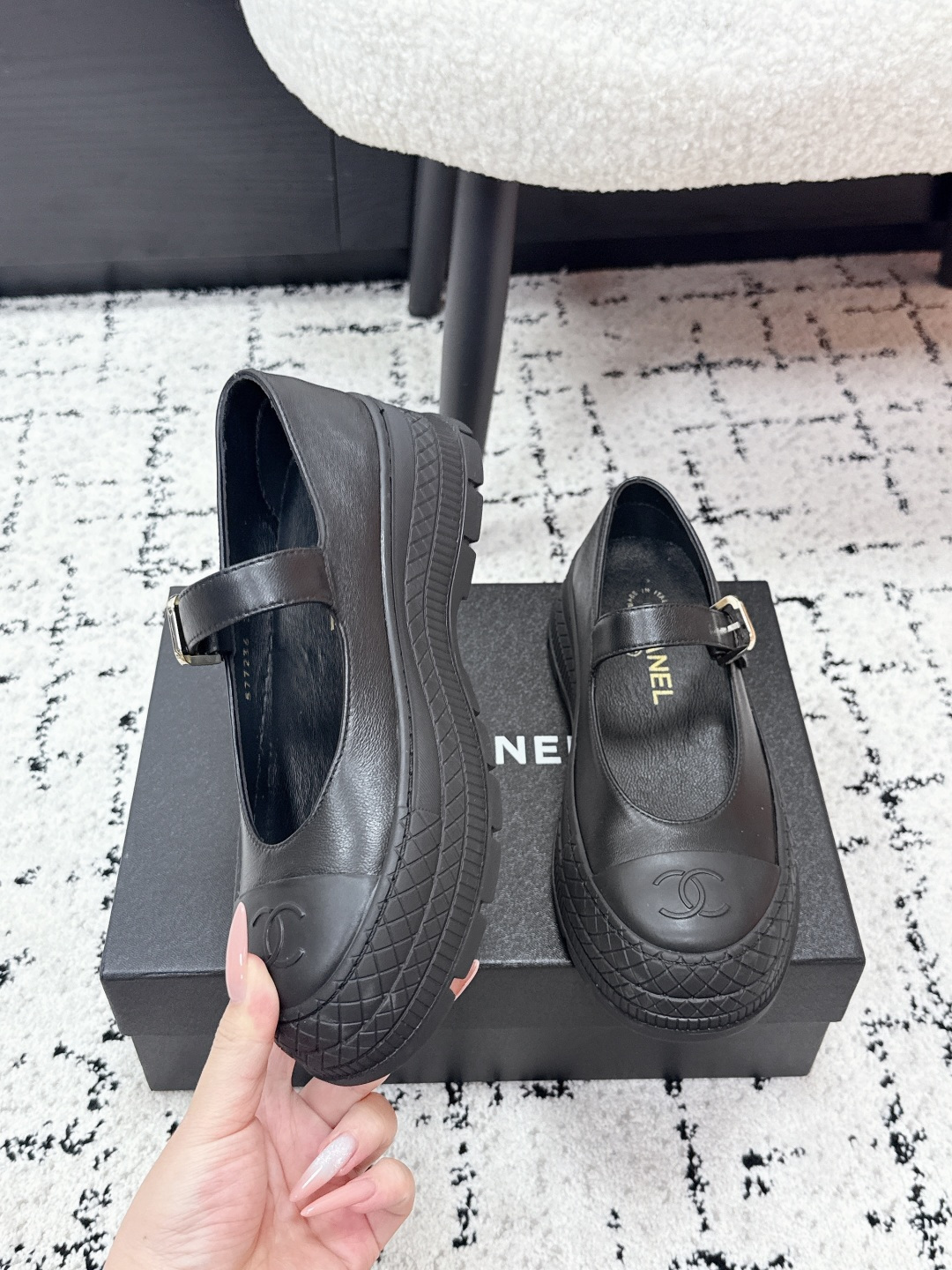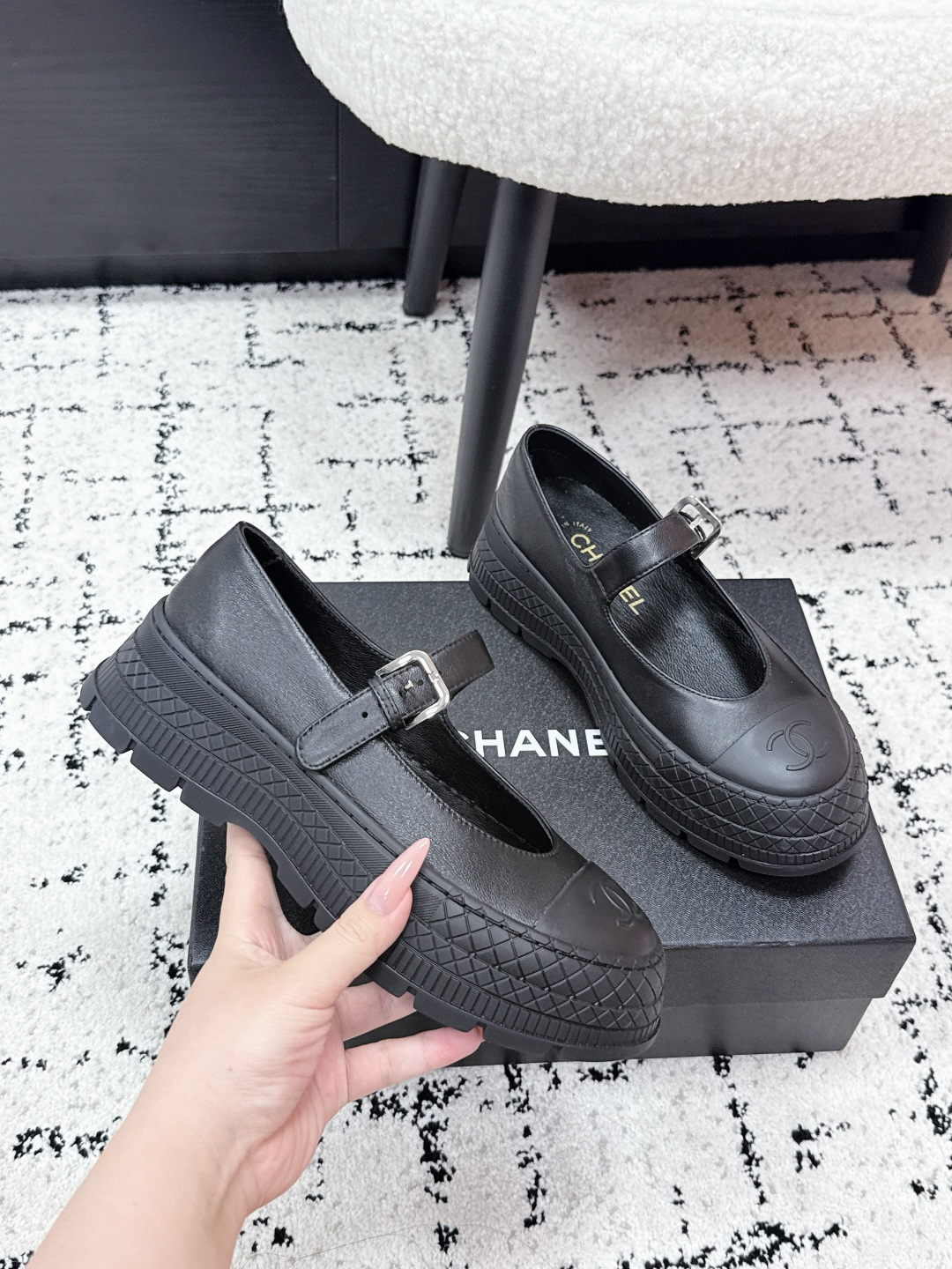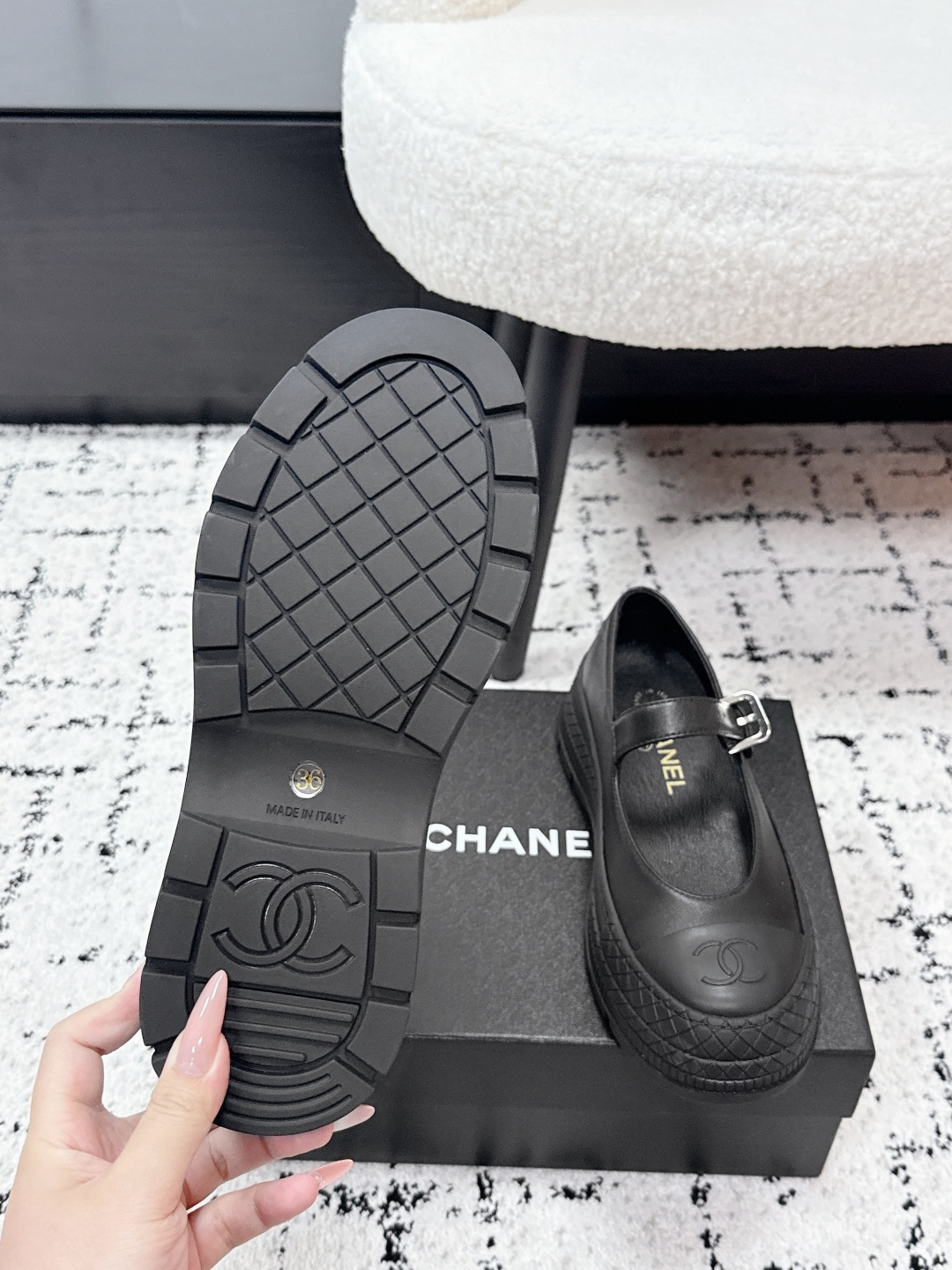 這款鞋子是AAAAA 1:1 質量(非常棒). 使用了和原版一模一樣的材料. 商標部分也保持了和香奈兒/Chanel一樣. 圖片拍攝是實物鞋子拍攝, 您所收到的實物保證和我們圖片一模一樣.