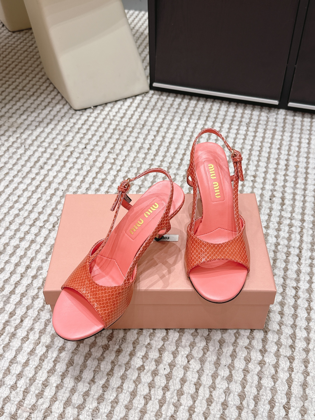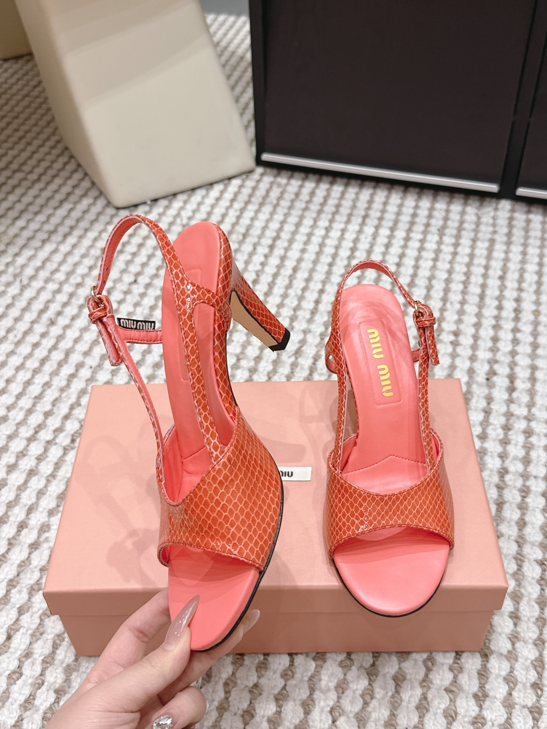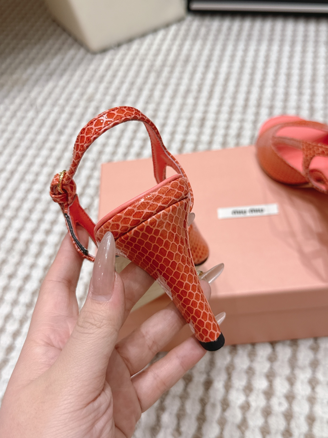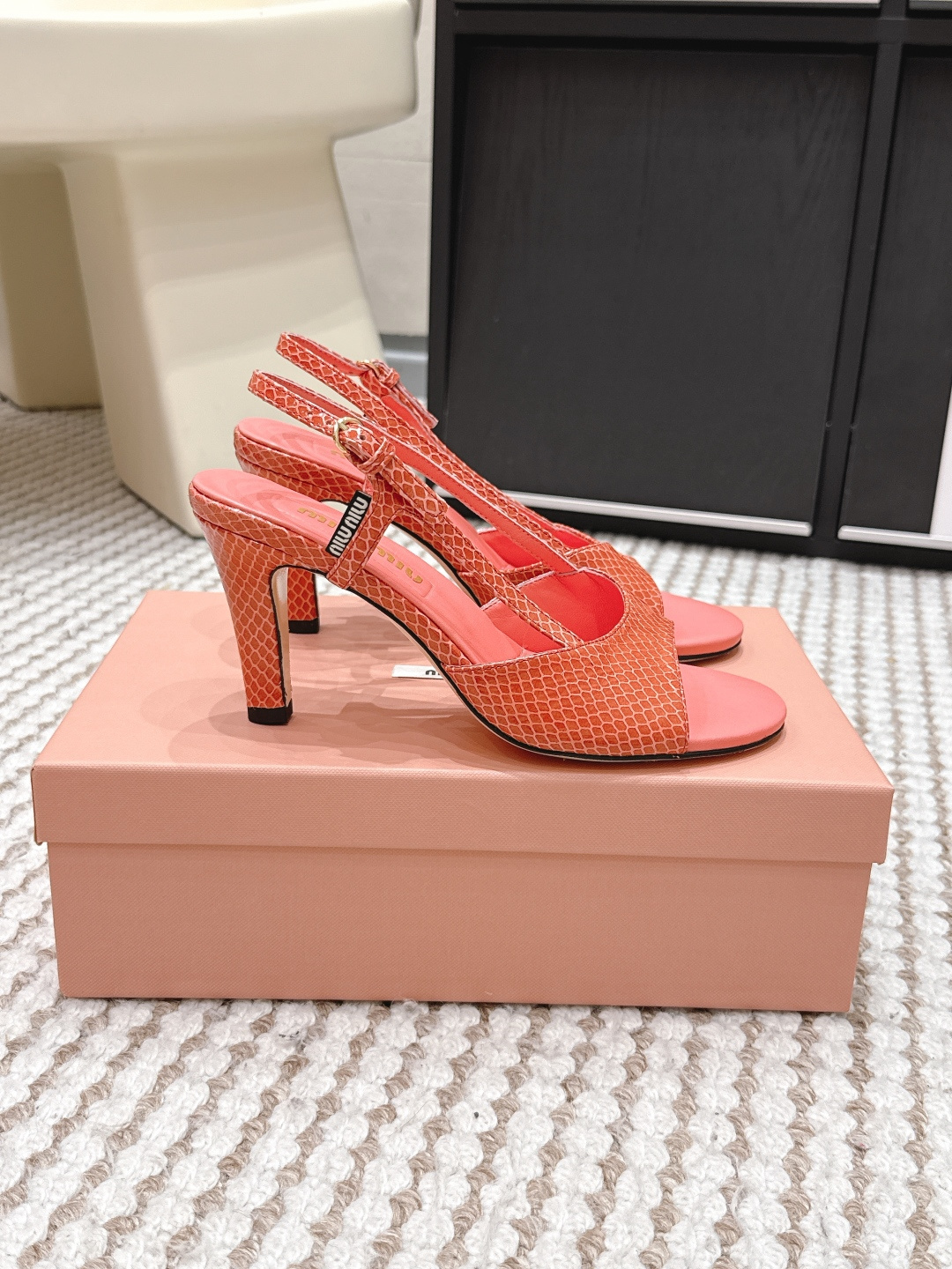 這款鞋子是AAAAA 1:1 質量(非常棒). 使用了和原版一模一樣的材料. 商標部分也保持了和繆繆/Miu Miu一樣. 圖片拍攝是實物鞋子拍攝, 您所收到的實物保證和我們圖片一模一樣.