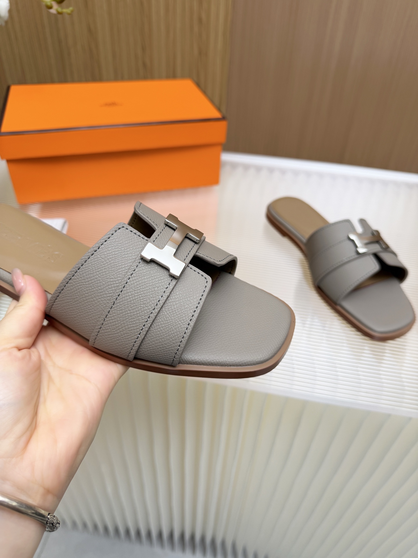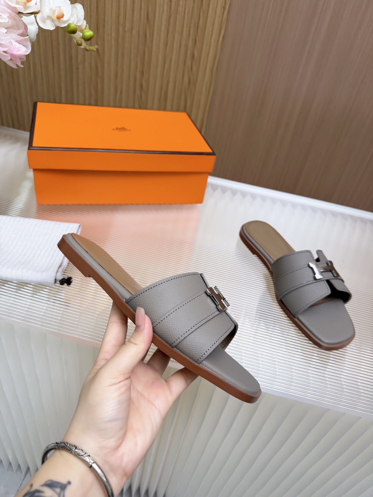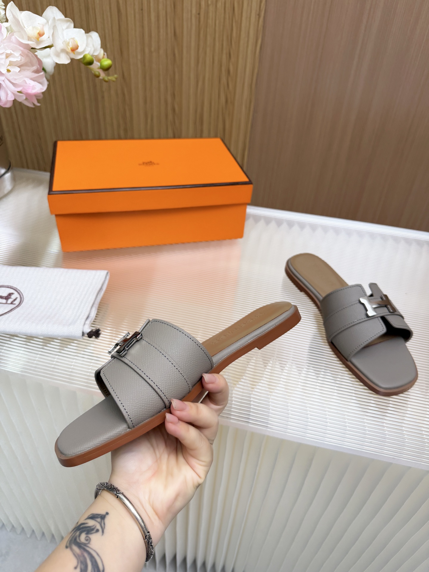 這款鞋子是AAAAA 1:1 質量(非常棒). 使用了和原版一模一樣的材料. 商標部分也保持了和愛馬仕/Hermes一樣. 圖片拍攝是實物鞋子拍攝, 您所收到的實物保證和我們圖片一模一樣.