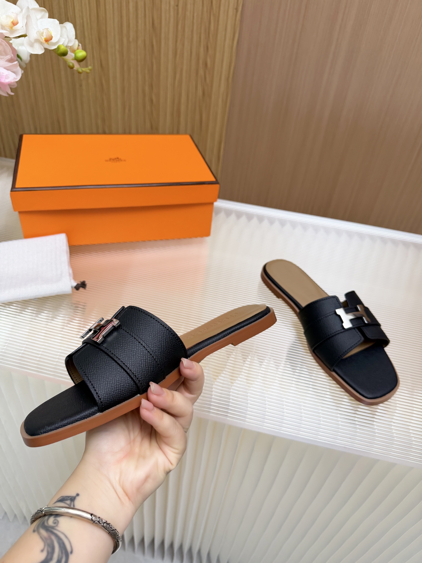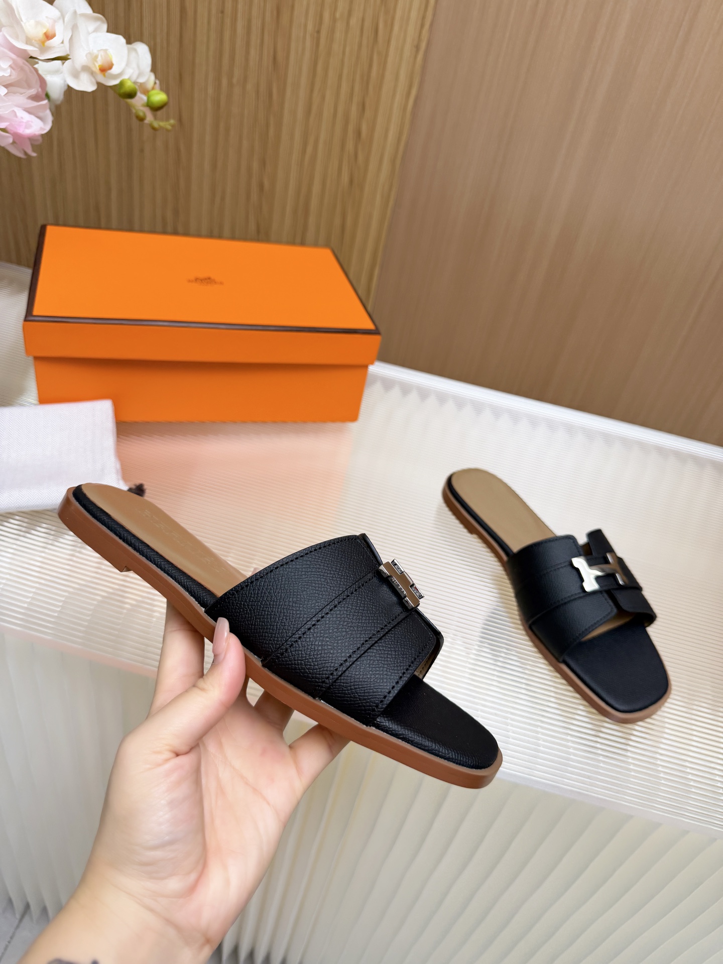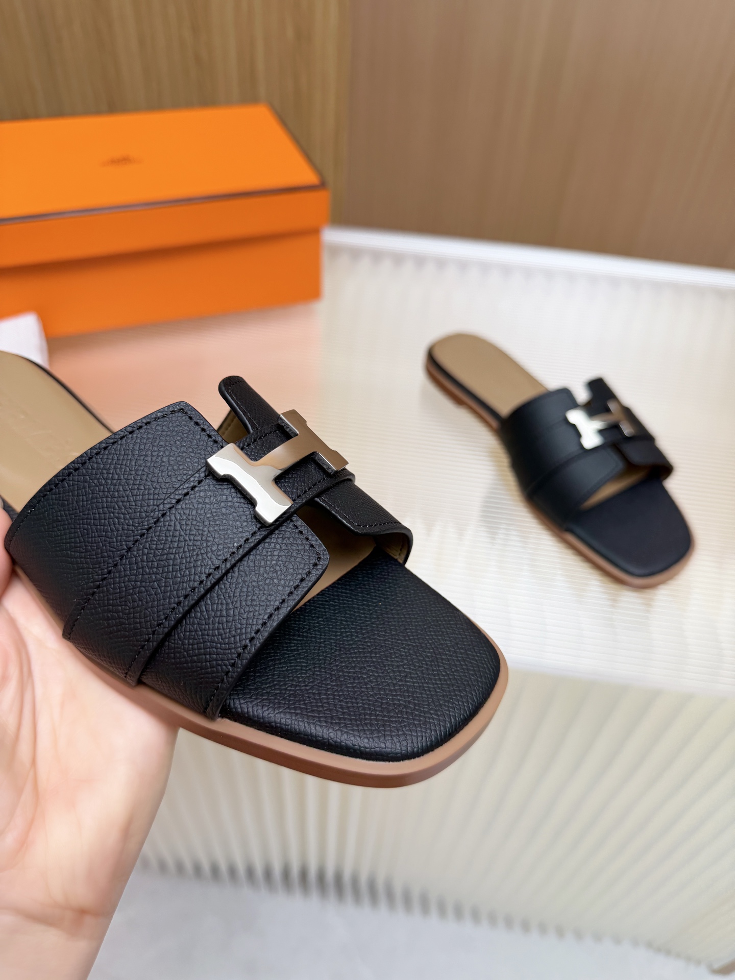 這款鞋子是AAAAA 1:1 質量(非常棒). 使用了和原版一模一樣的材料. 商標部分也保持了和愛馬仕/Hermes一樣. 圖片拍攝是實物鞋子拍攝, 您所收到的實物保證和我們圖片一模一樣.