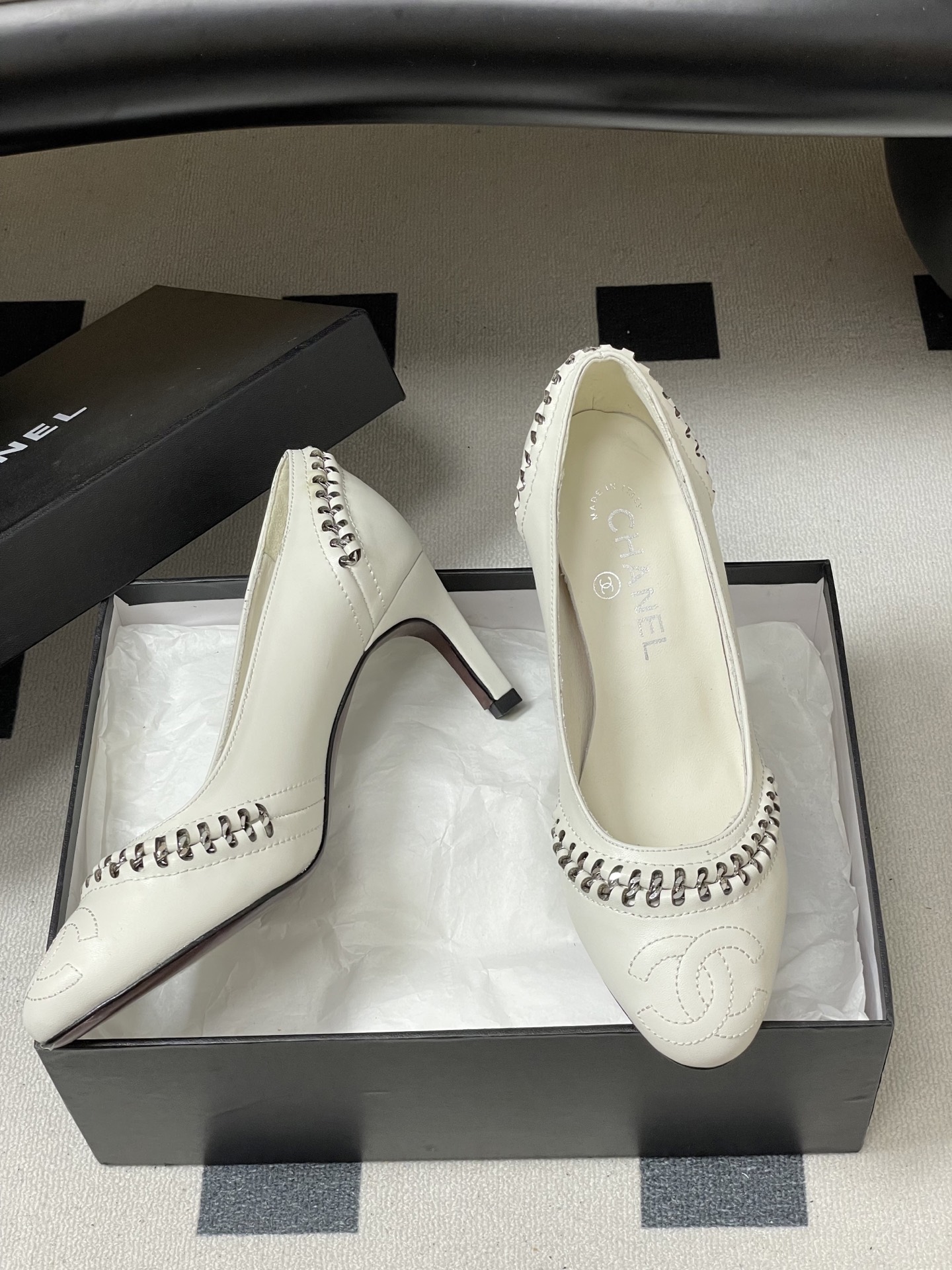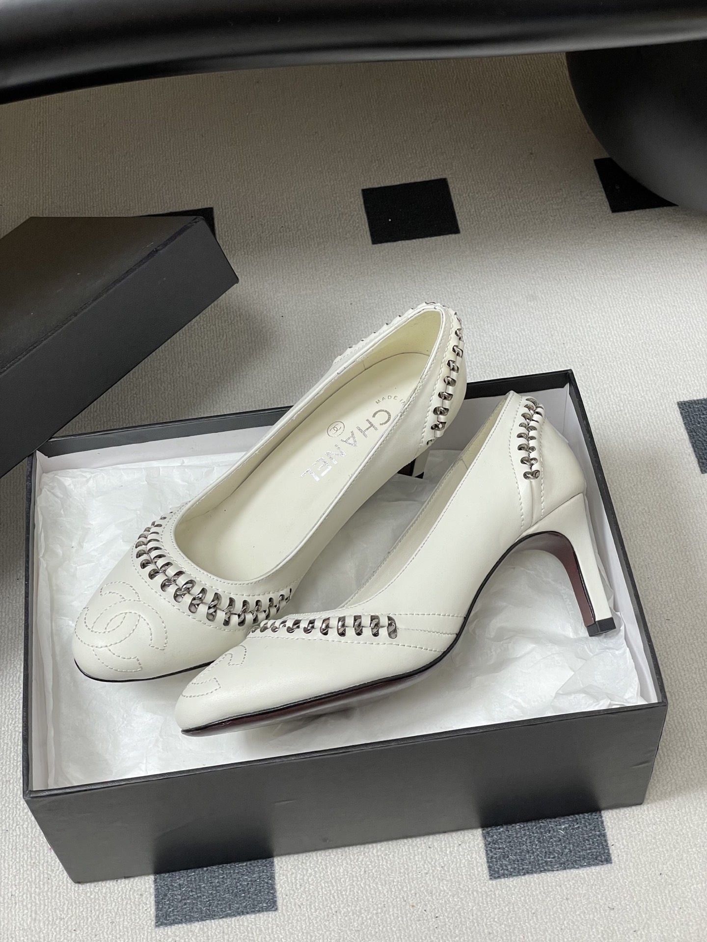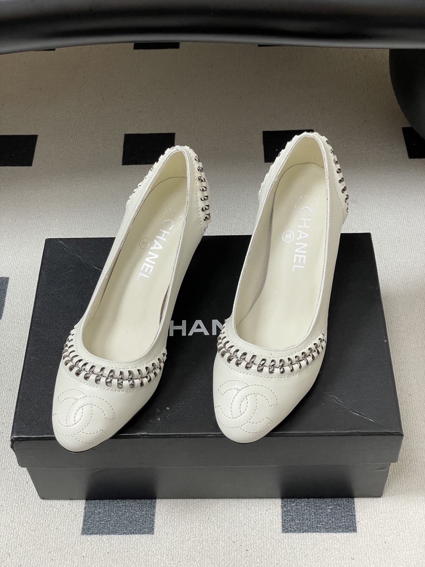 這款鞋子是AAAAA 1:1 質量(非常棒). 使用了和原版一模一樣的材料. 商標部分也保持了和香奈兒/Chanel一樣. 圖片拍攝是實物鞋子拍攝, 您所收到的實物保證和我們圖片一模一樣.
