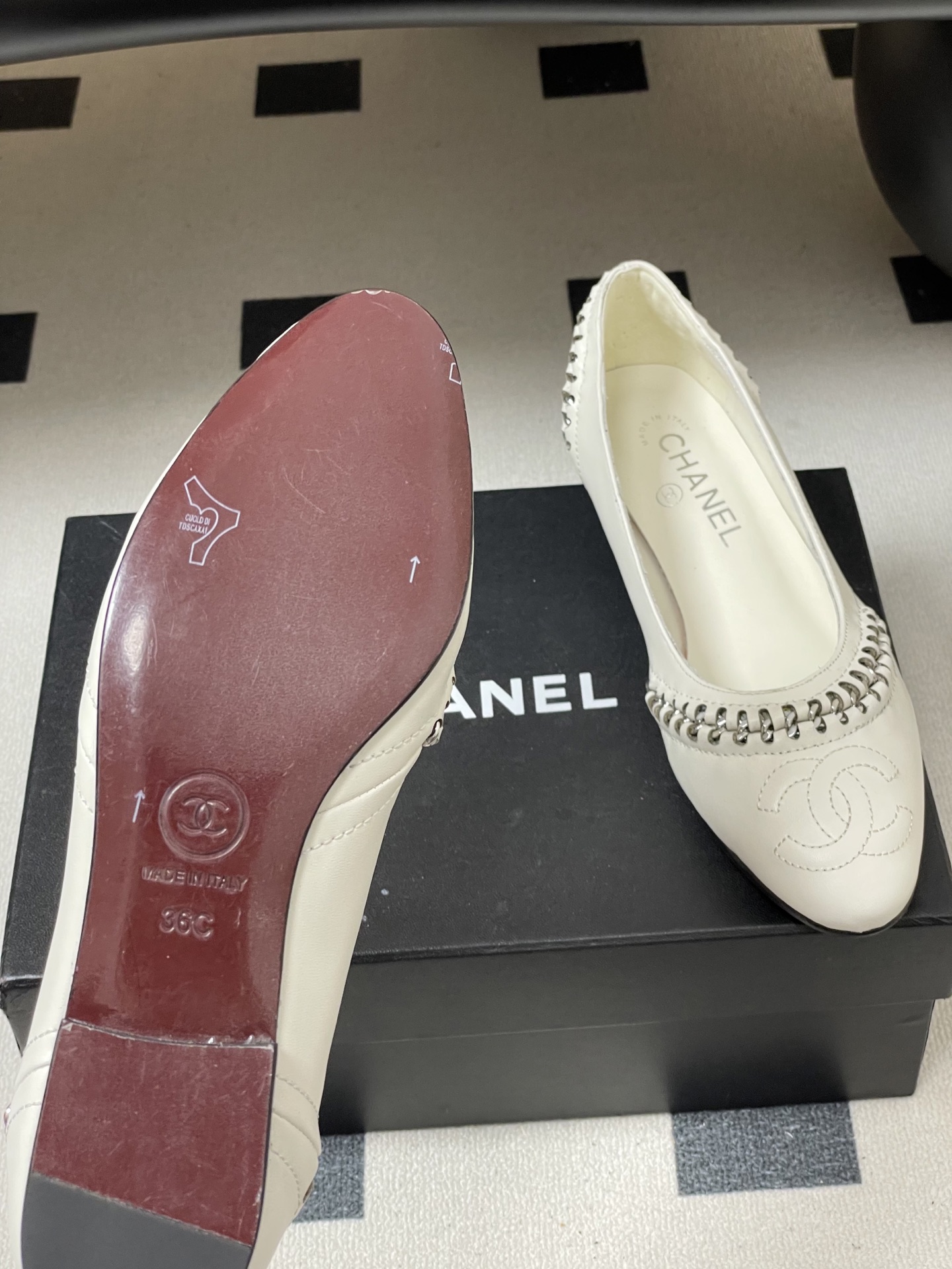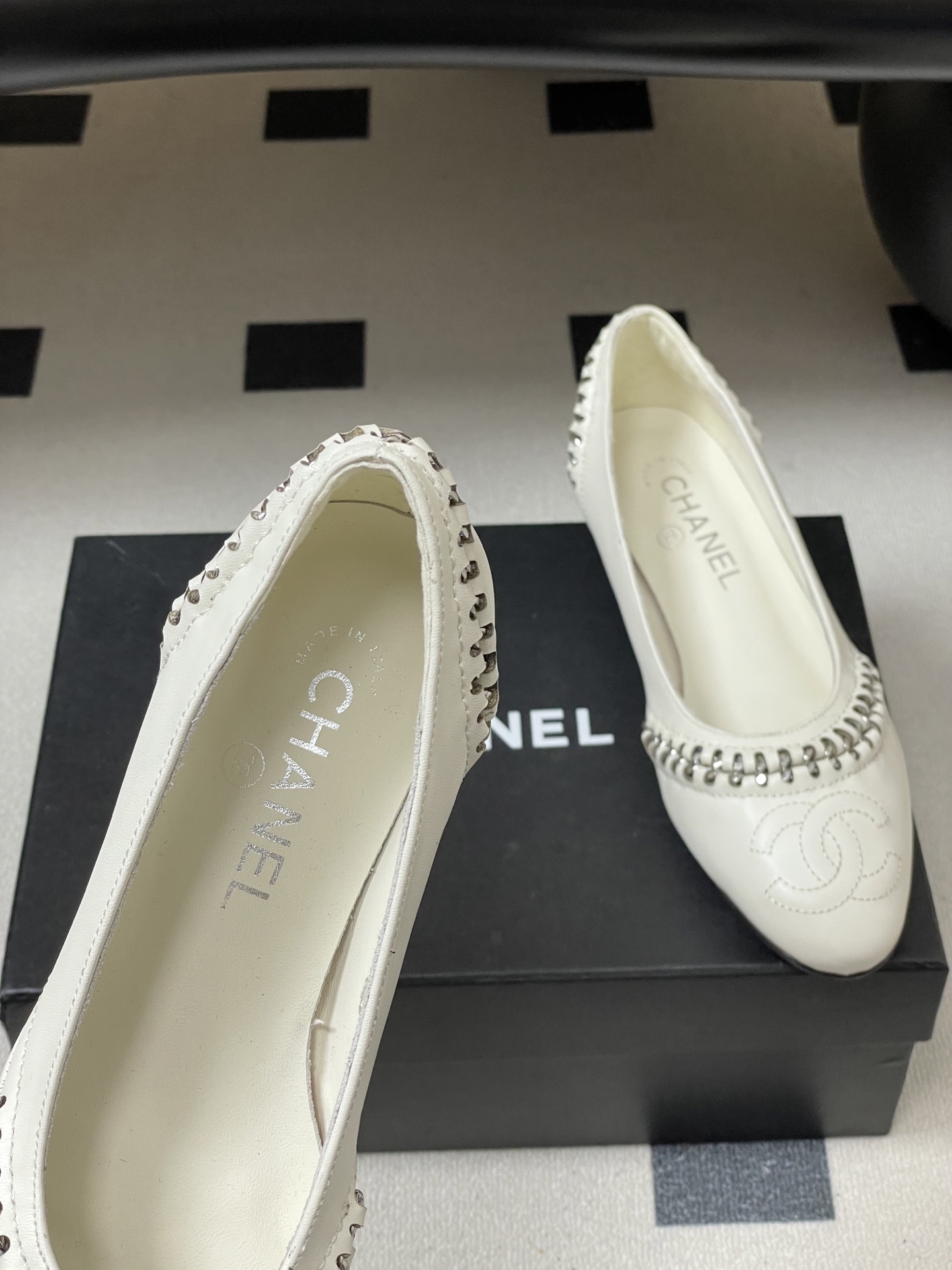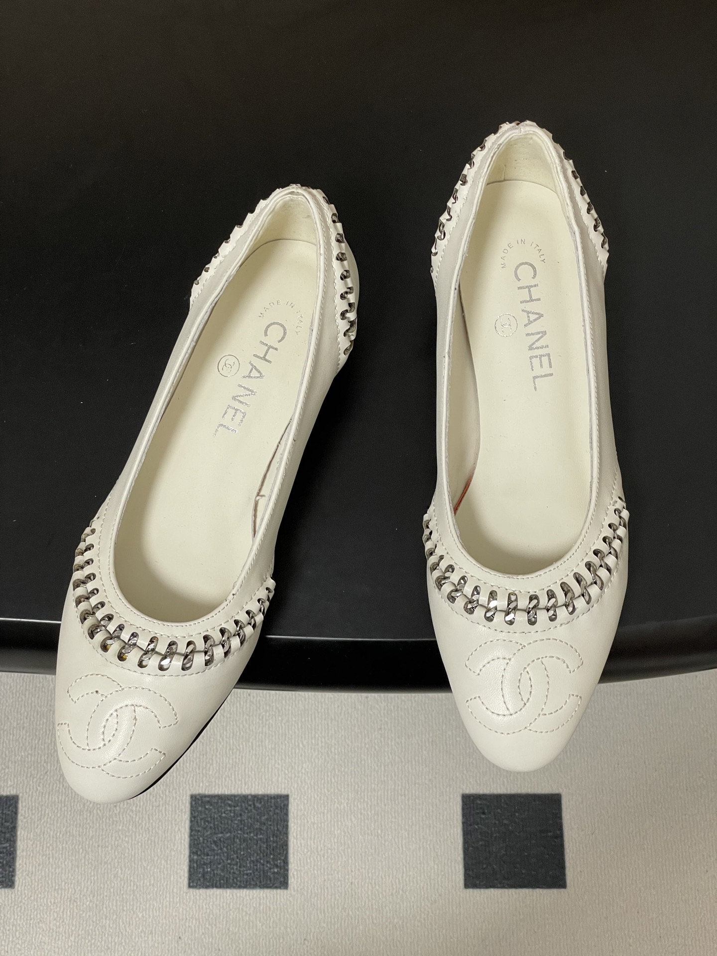 這款鞋子是AAAAA 1:1 質量(非常棒). 使用了和原版一模一樣的材料. 商標部分也保持了和香奈兒/Chanel一樣. 圖片拍攝是實物鞋子拍攝, 您所收到的實物保證和我們圖片一模一樣.