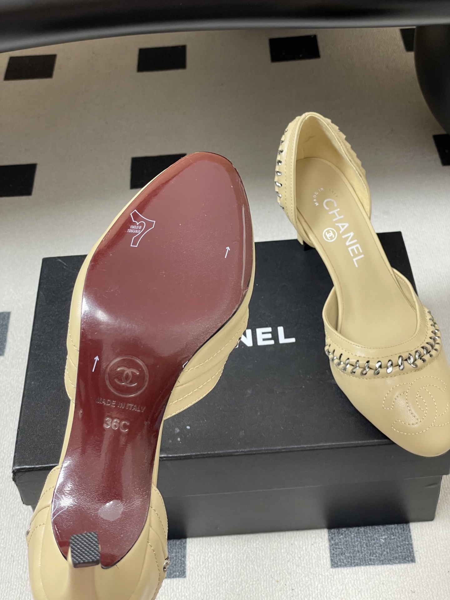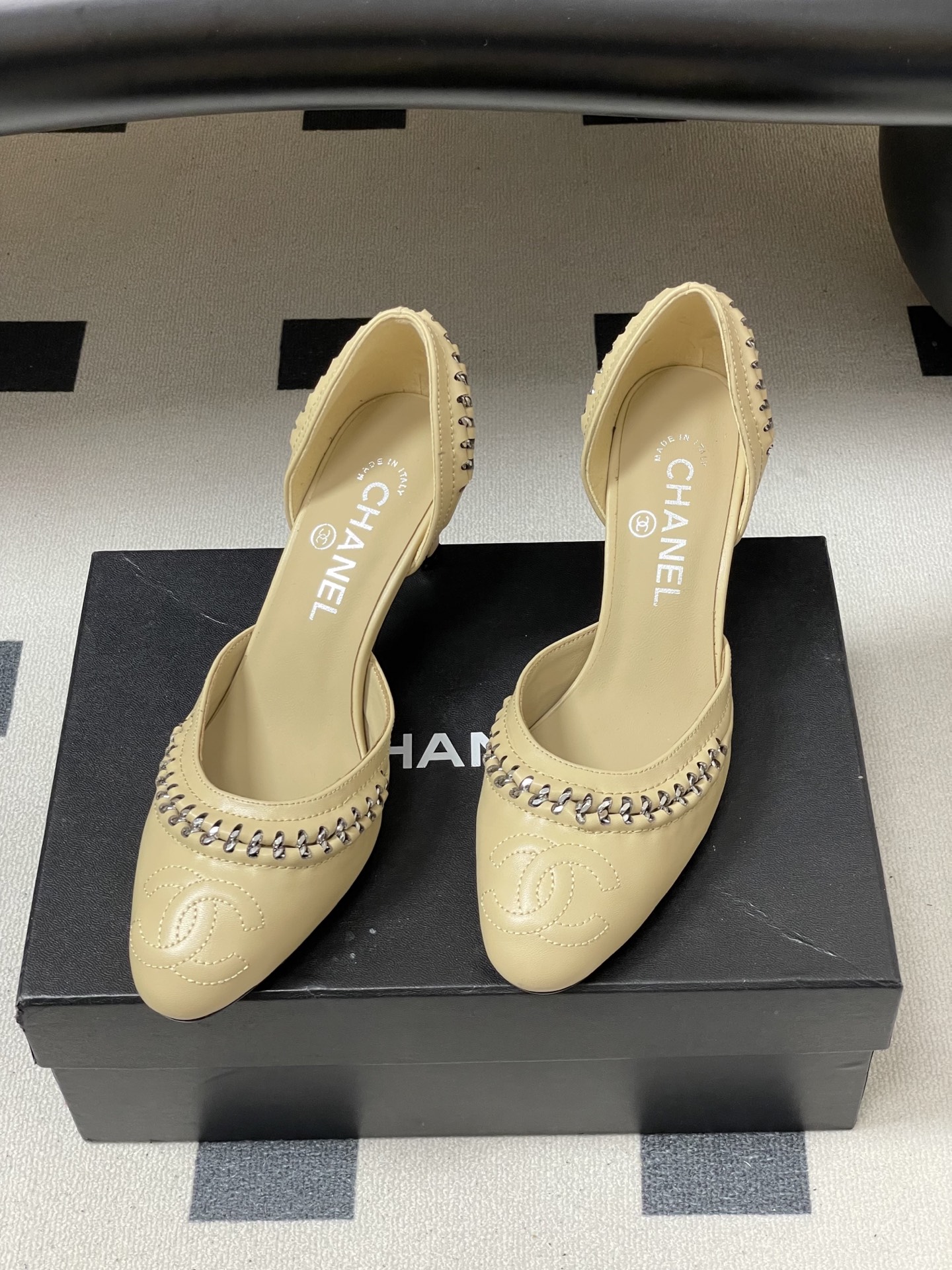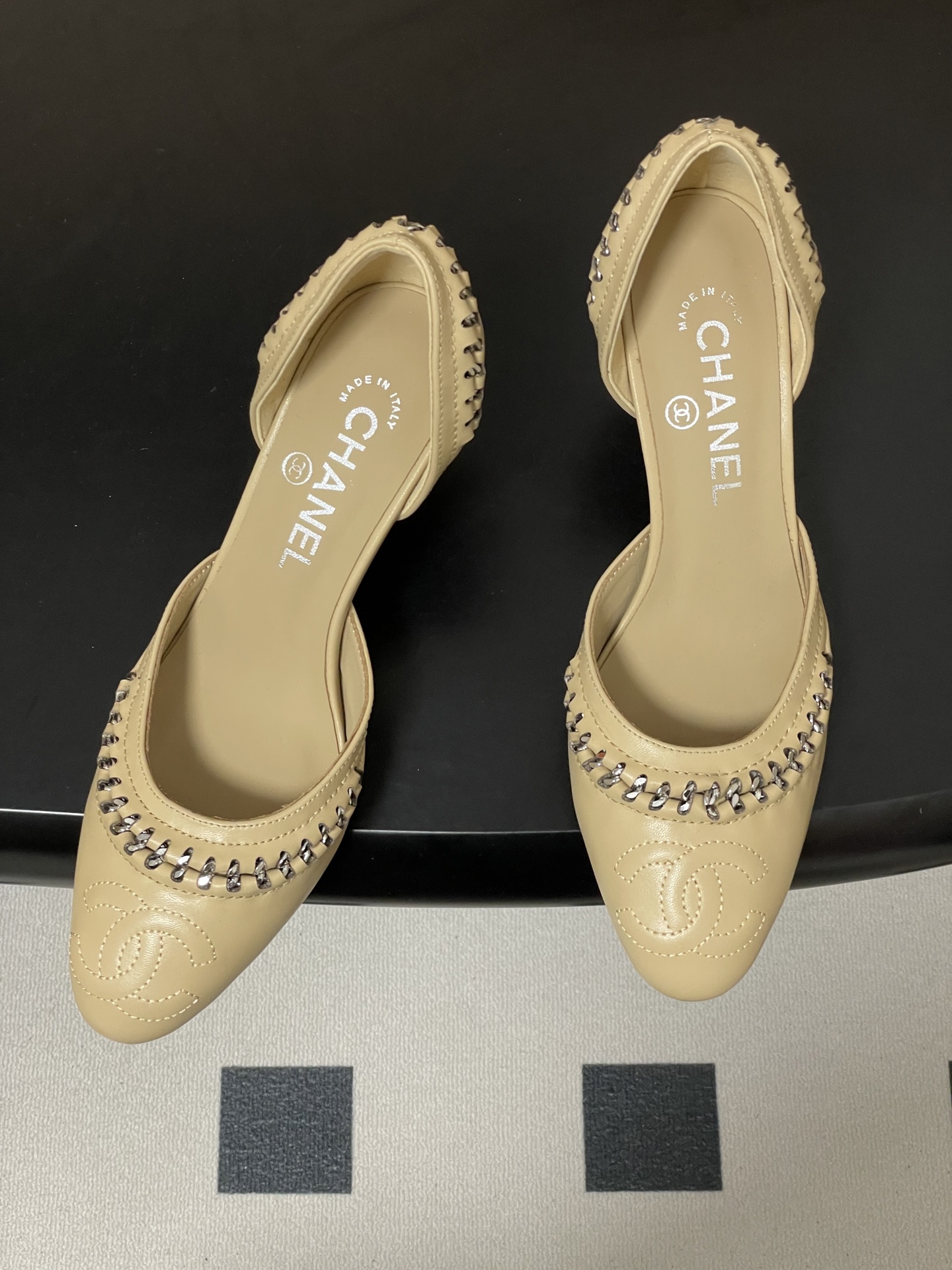 這款鞋子是AAAAA 1:1 質量(非常棒). 使用了和原版一模一樣的材料. 商標部分也保持了和香奈兒/Chanel一樣. 圖片拍攝是實物鞋子拍攝, 您所收到的實物保證和我們圖片一模一樣.