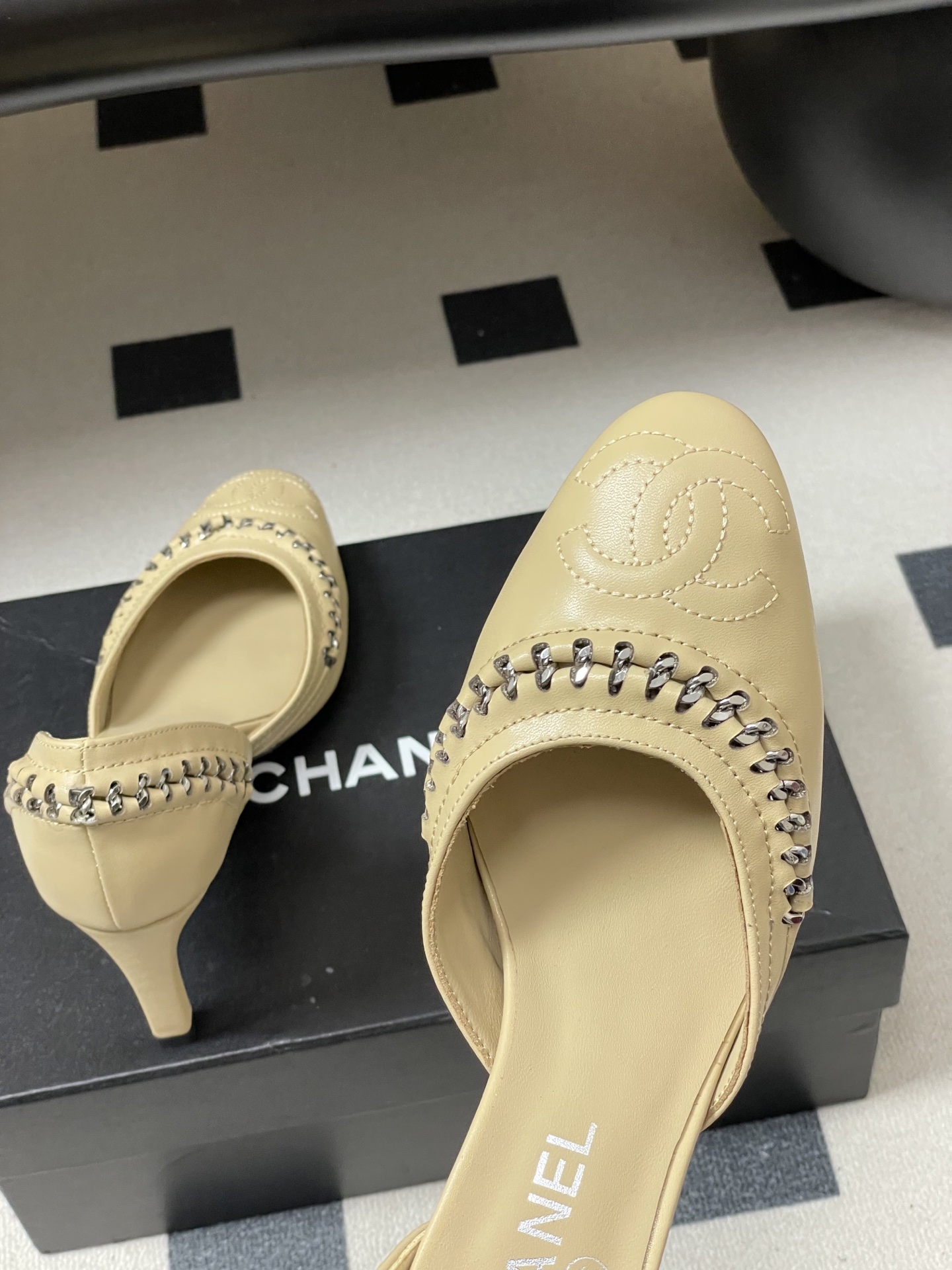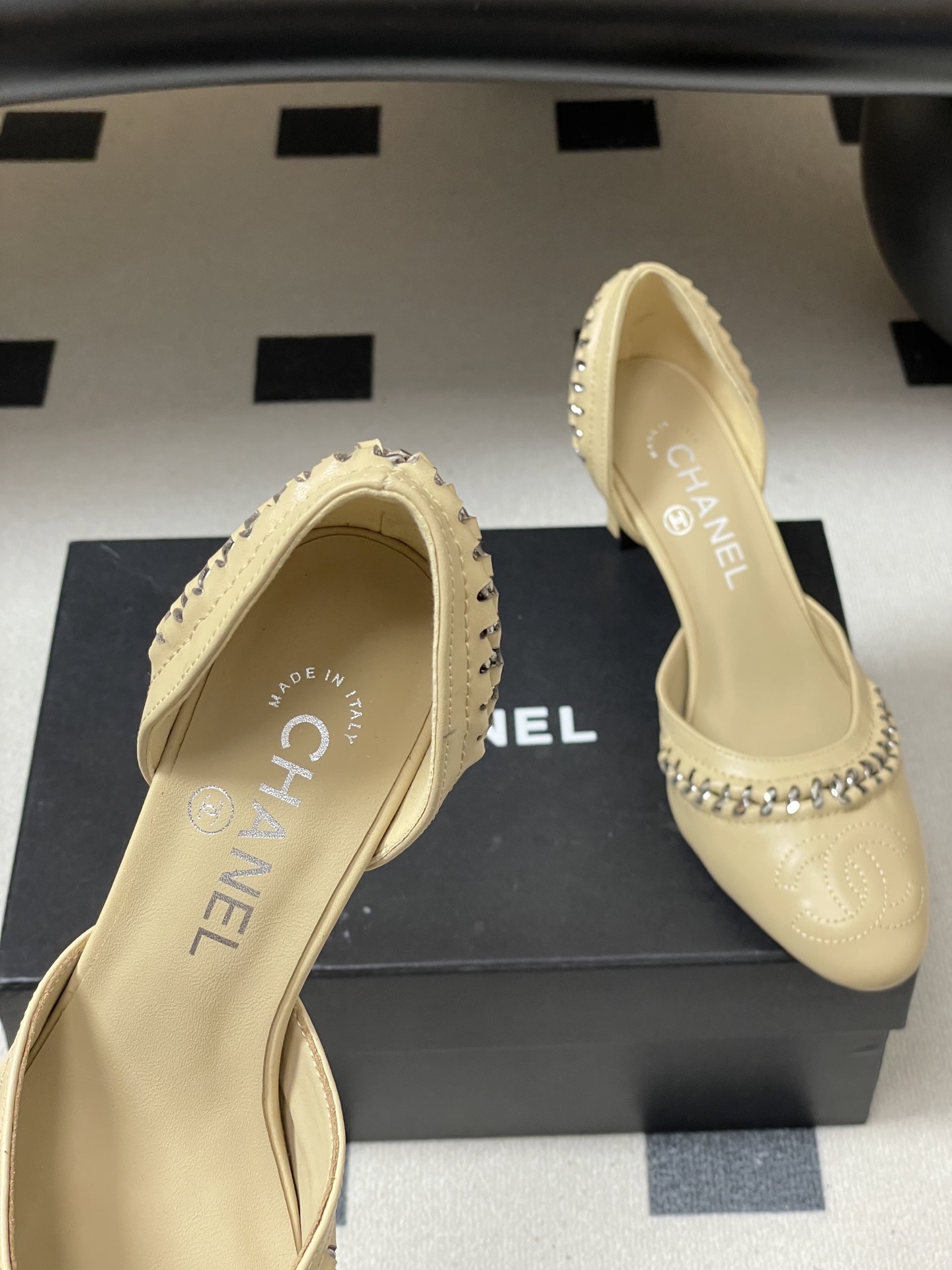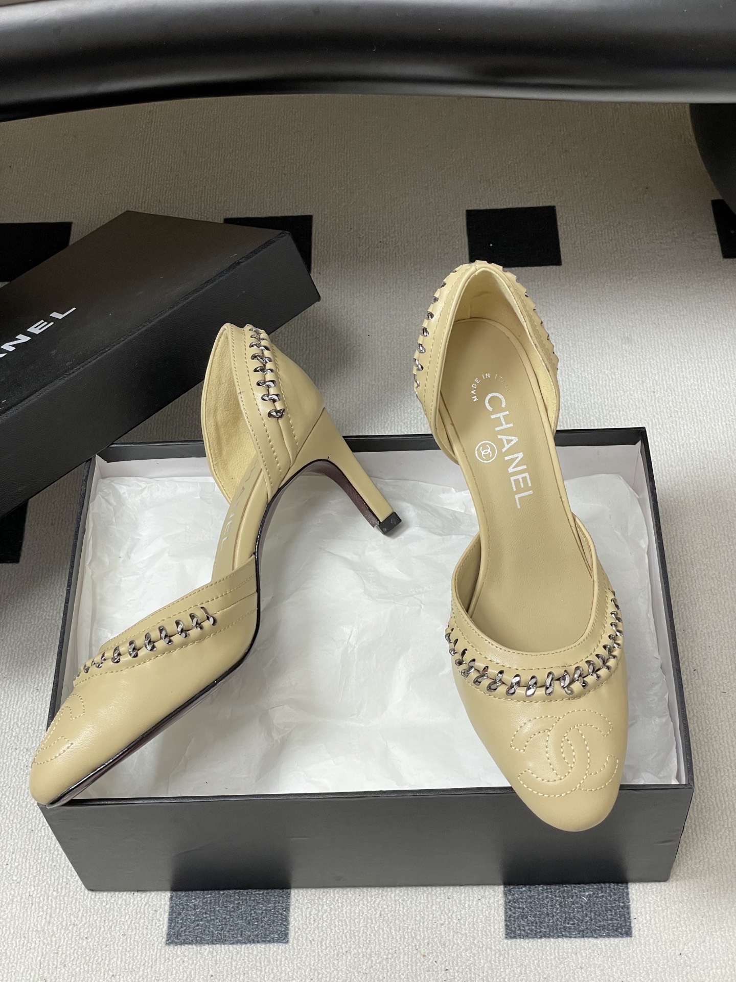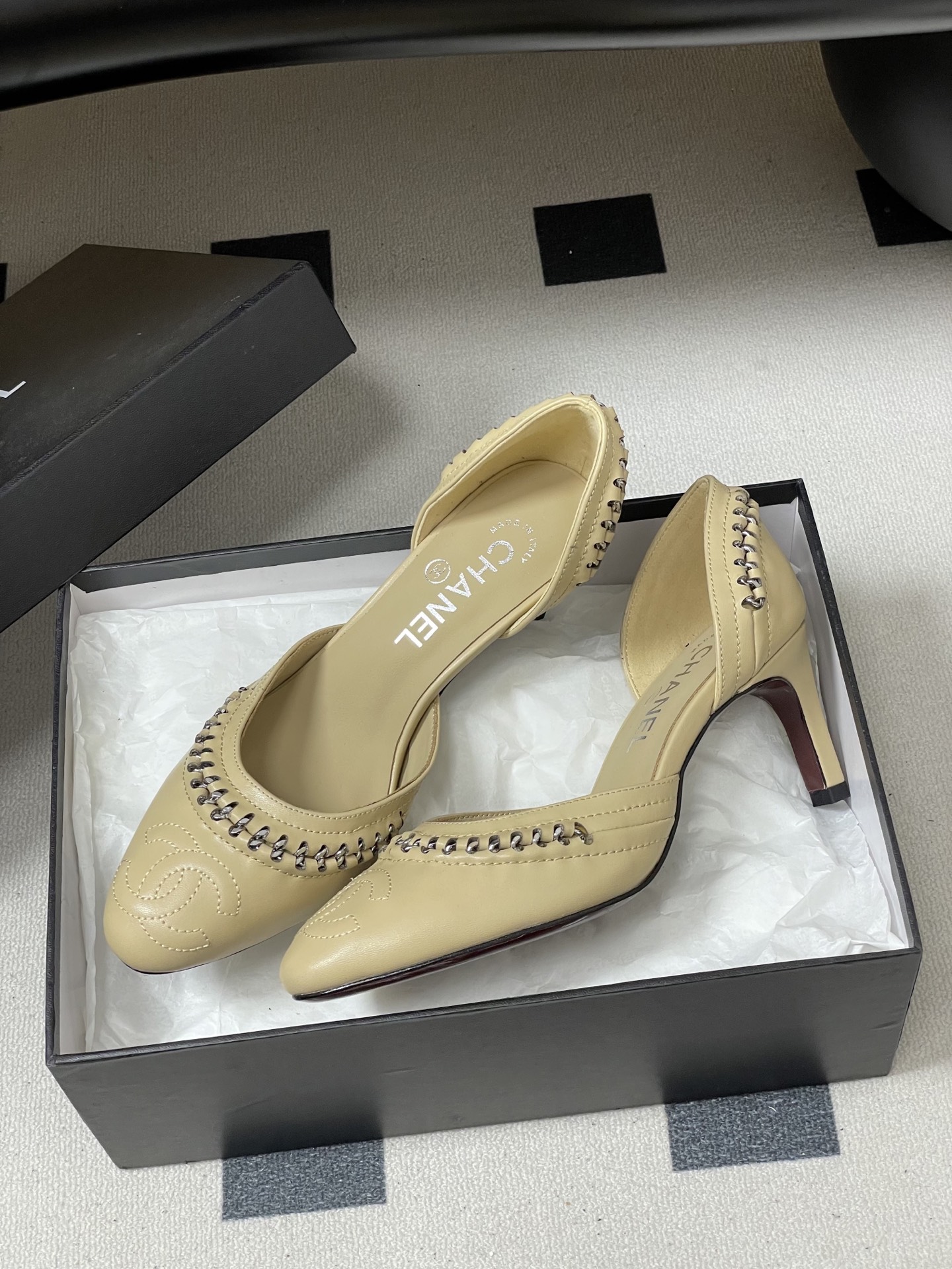 這款鞋子是AAAAA 1:1 質量(非常棒). 使用了和原版一模一樣的材料. 商標部分也保持了和香奈兒/Chanel一樣. 圖片拍攝是實物鞋子拍攝, 您所收到的實物保證和我們圖片一模一樣.